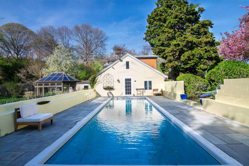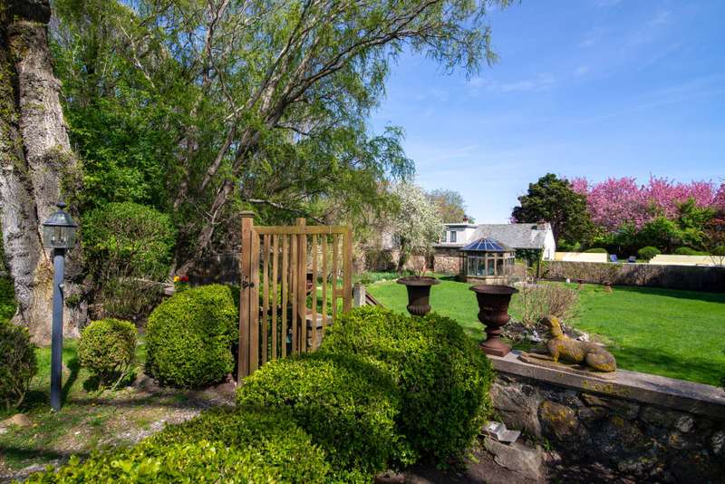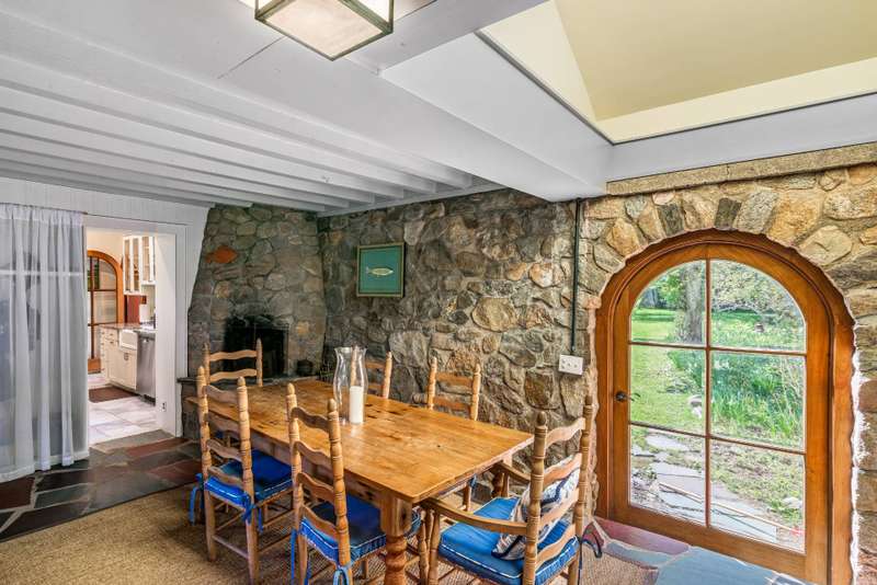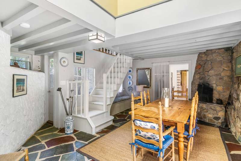 Magical Oasis: Incredible opportunity to own this one-of-a-kind magical oasis built by Carl Fisher in 1925. This truly unique property has so many special qualities - from the main house (with the first pool ever built in Montauk!), to the incredible lush grounds with their amazing variety of old growth specimen trees, perennials and lawns, to the charming stone wall around the property that ensures lots of privacy and character - this is a must-see estate. The main house features a large solarium entry that leads into the updated kitchen, dining area with a cozy fireplace and sweet entrance, and living room which leads to the very private pool area and back yard with outdoor shower. The fairy tale-like upper floor is a delight featuring two bedrooms, including one with its own entrance, and the original details that are the hallmark of Carl Fisher Montauk homes. A separate modern cottage sits on the front of the property and is perfect for guests or a house manager. It feature