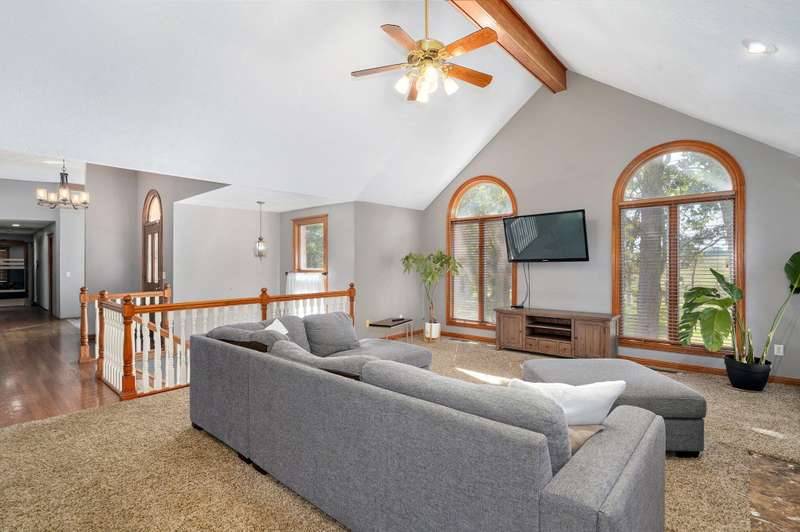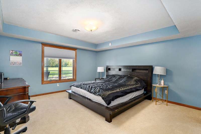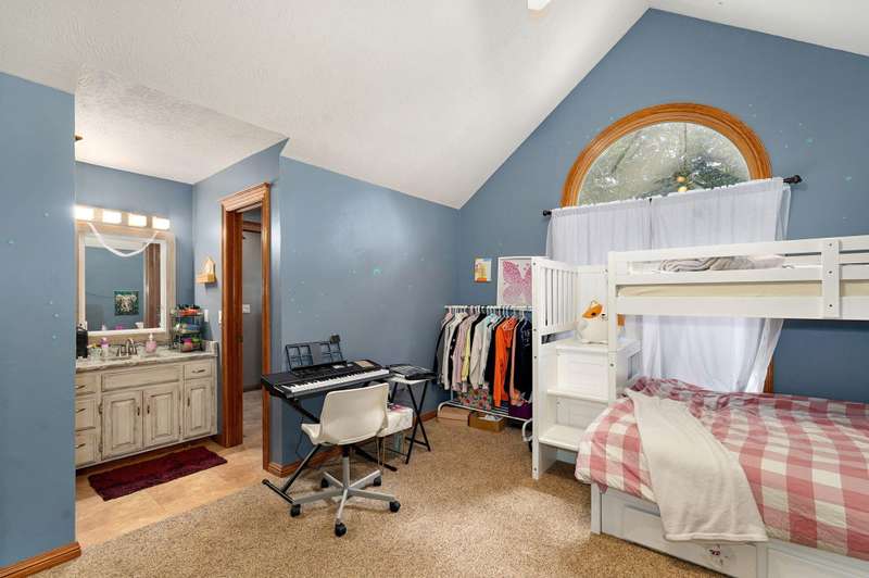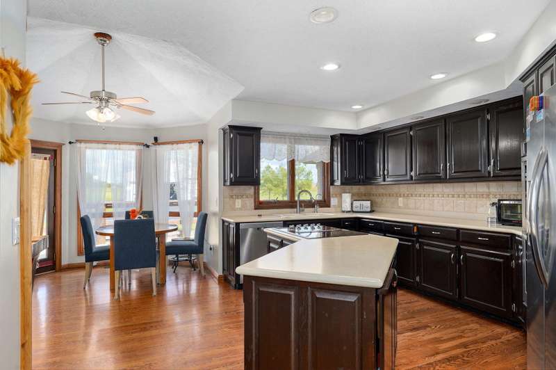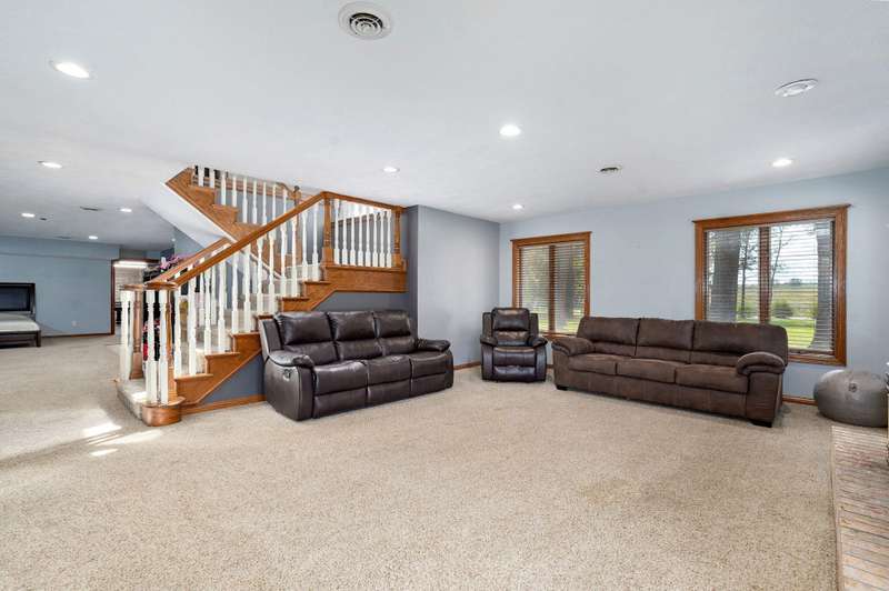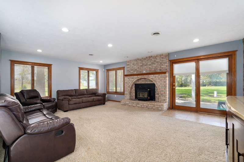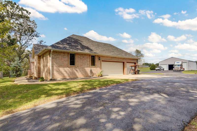 Beautiful all brick, 4 bed, 3.5 bath, walkout basement home with 2 oversized shops on 5 private acres! With over 4,750 finished square feet, this home is very spacious and features 3 living areas, oversized bedrooms with walk-in closets, spacious kitchen, formal dining room and lots of storage space. Enjoy the beautiful sunsets in the sunroom next to the master suite or coffee on the large deck off the back of the kitchen. Some additional features include a geothermal all electric heat and air, woodburning fireplace in living room, pellet stove in basement central vacuum system, water softener, wired for alarm system and fire alarm system, hot tub and much more. The shops are spacious enough for all your big toys! 60x50 and 40x40 with concrete floors, power, 15' ceilings, 12' RV door. No restrictions and no HOA. Schedule your private showing today!