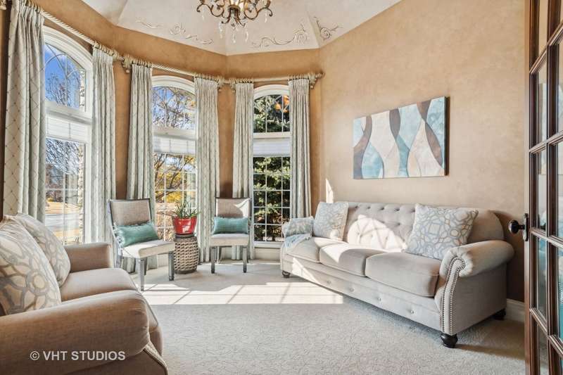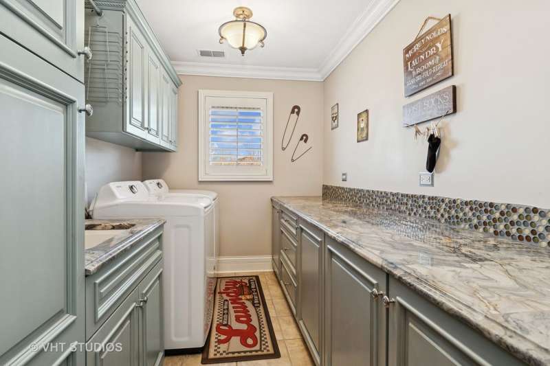 Absolutely beautiful and filled with details you need to see to appreciate. The custom craftmanship is unparalleled. Located at the end of a cul-de-sac the tranquil setting and amazing entrance set the stage for what's inside. LOVELY front doors welcome you into the spacious entry with travertine flooring and 10' ceilings. Each and every room has exceptional detailing from the ceiling treatments down to the flooring. The exceptionally appointed Gourmet kitchen is as lovely as it is functional. Thermador appliances help make meal prep and entertaining effortless. Gorgeous custom cabinetry is enhanced by the massive center island, with prep sink, ample 3 thick granite counters, abundant cabinets, coffee bar, pot filler, and butler area. Adjoining breakfast room as well as a hearth room make this kitchen the absolute heart of the home. Custom wooden ceiling treatments in the hearth room is enhanced by the matching flooring. Step down into the main level family room for even more living and entertaining space. Every room without exception has multiple details to behold. 2 sunrooms located on either side of the hearth room with access to the private yard. The executive office on the main level provides privacy and a comfortable working environment. The immense primary bedroom has an elegance all it's own. Custom ceiling treatments, cove lighting, elegant fireplace, sitting room, outside deck, and coffee bar, enhance this space. Pamper yourself in the 'spa' like bath with whirlpool-complete with tv mirror-double sink vanity and an enormous walk in shower complete with multiple shower heads. Organizing your closet has never been easier with the spacious custom closet system. There are 2 additional bedrooms with a jack and jill bath and a princess suite upstairs as well. Full laundry upstairs has multiple storage cabinets. There is an additional laundry area-with a doggie wash-on the main level. So much additional exceptional living space in the lower level with 9'5 ceilings...exercise room, 5th bedroom, full bath, wet bar, gaming area, tv area, and full theater room complete the interior of this gorgeous home. The theater room includes an HVAC split to keep this room temperature controlled at all times. The 3 car heated garage has 14' ceilings, ceiling fans, custom tile flooring, expansive workbench, and plenty of organized storage. Dog run right outside the garage door. The outdoor entertainment paradise is simply that. Custom kitchen area, paver patio, fire pit, fenced in yard, and lush landscaping create your very own outdoor wonderland. This is your own personal paradise, but close to great restaurants, entertainment, and expressways.