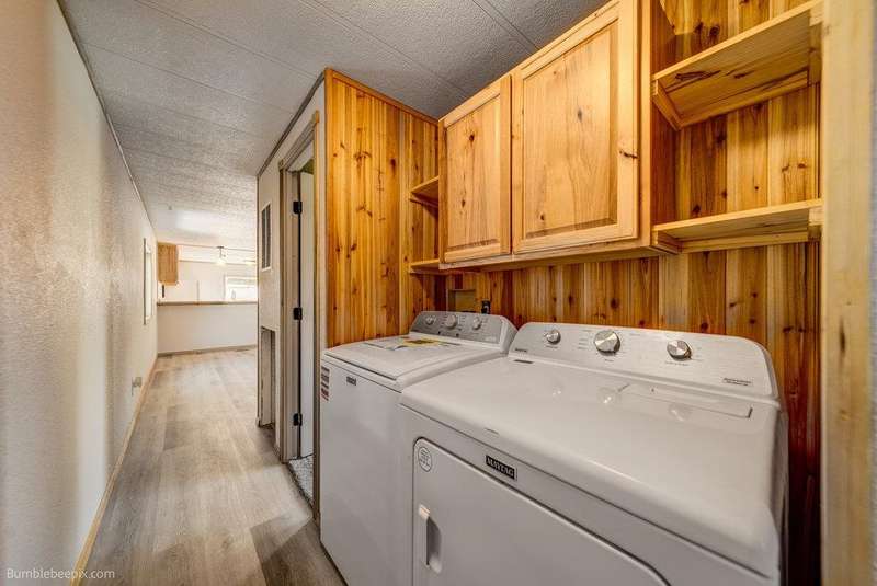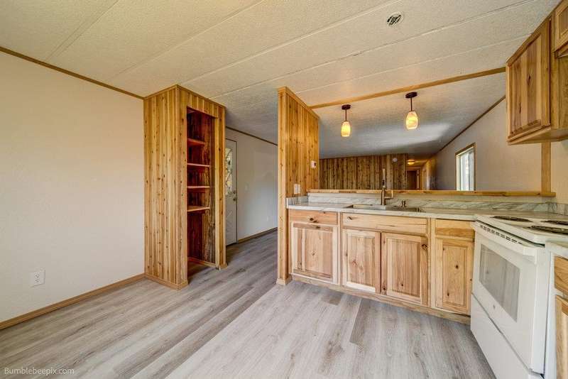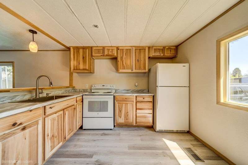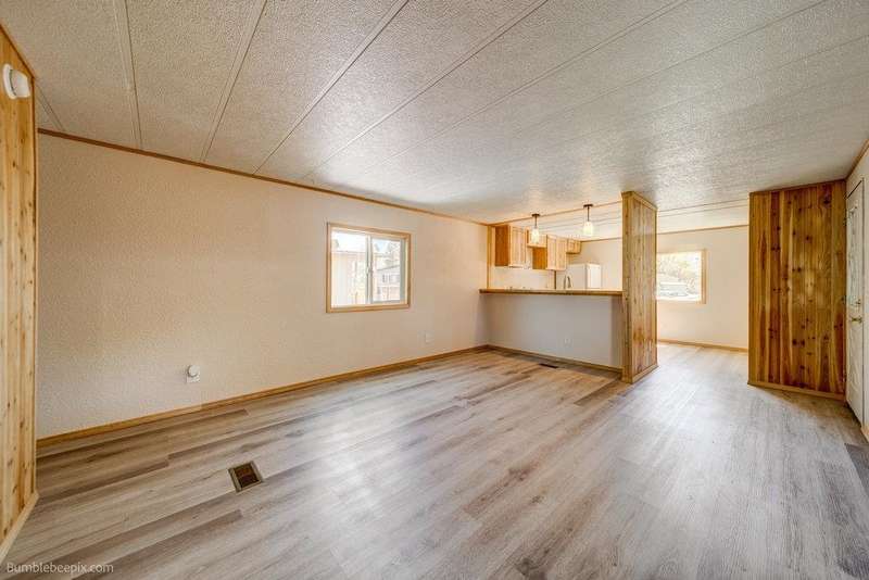 Welcome to your beautifully updated home inside Timberline Mobile Home Park! This move-in ready 2-bedroom, 1-bathroom home features modern updates throughout, including new flooring, a refreshed kitchen with stylish finishes, and fresh interior and exterior paint that gives the home a bright, clean feel. Step outside to a great fenced-in yard — ideal for pets, gardening, or soaking up the sunshine. Located near amenities for comfort and convenience at an affordable price. Schedule your showing today!