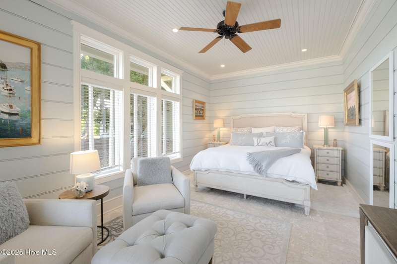 FULL Equity BHI and Shoals memberships available for additional purchase; there is also a potential for buyer to purchase the lot next door to retain additional privacy if desired. Built to be Chris Lokey's of Lokey Construction personal home with lots of upgrades. Located on the green of number 7 with views down the golf course toward the Old Baldy Lighthouse. Tucked beneath a canopy of Live Oaks on a quiet, cul de sac this 5BR/5BA executive sanctuary offers exceptional craftsmanship, luxurious comfort, all just minutes from the island's beaches, clubs, & shops. Built by Lokey Builders, this one-of-a-kind home showcases remarkable custom features. An expansive open-concept main floor boasts soaring beamed ceilings & abundant natural light, highlighting the gourmet kitchen-ideal for entertaining, 5 beautifully appointed BRs include several w/ private ensuites, generous closets, & access to the tranquil porches. A detached crofter above the garage offers additional privacy, featuring a sitting area & its own ensuite w/ golf views. Ample spaces, 3 golf carts included, & premium finishes throughout, this thoughtfully curated retreat is both a luxury getaway & a warm, welcoming Island abode ready to make new memories with you & your loved ones. Furnished w/ some exclusions. Don't miss this Island treasure-schedule your private tour today