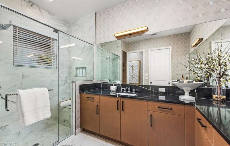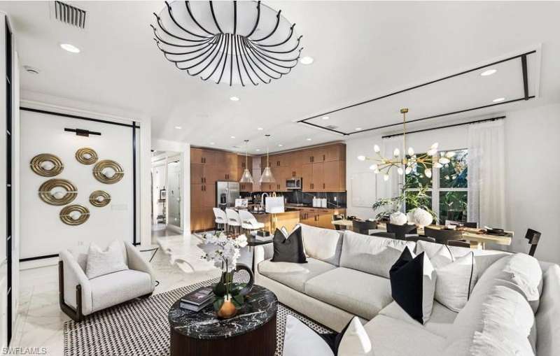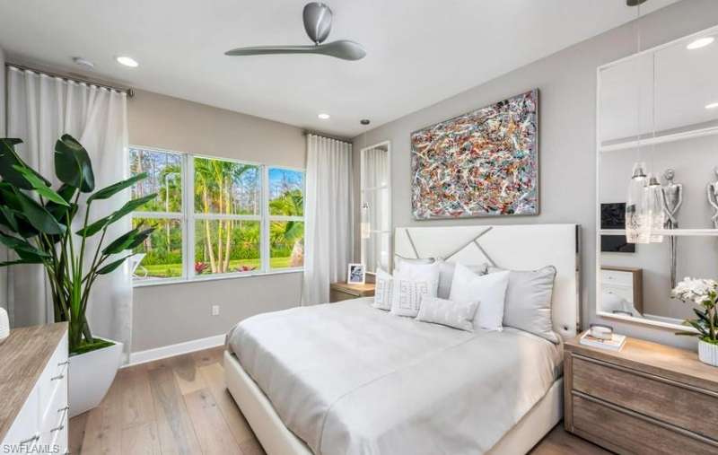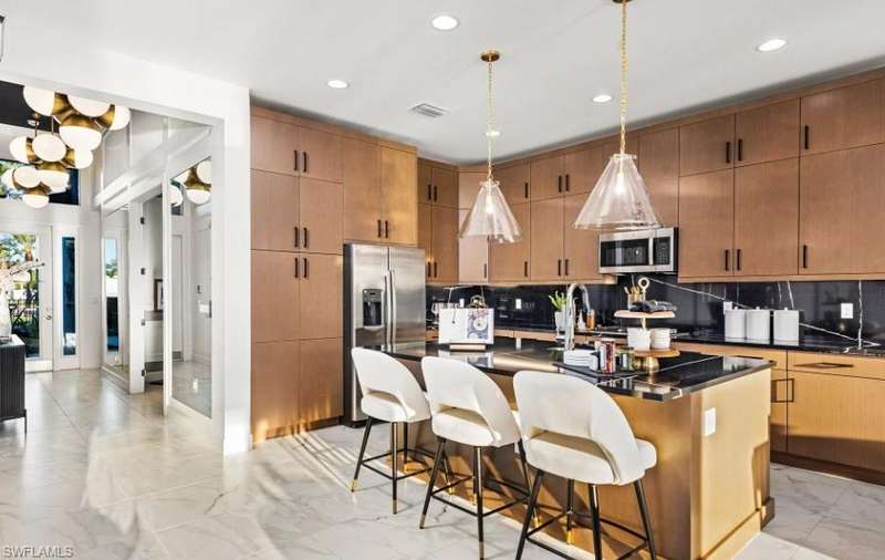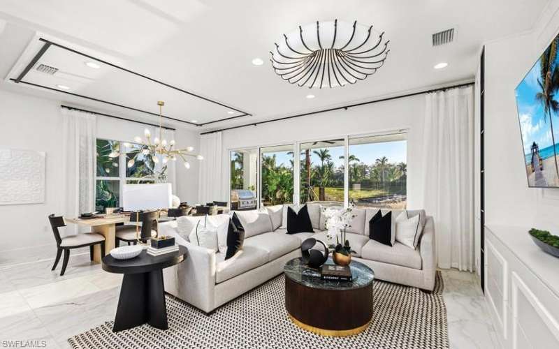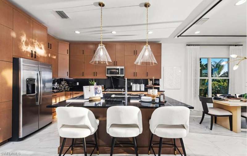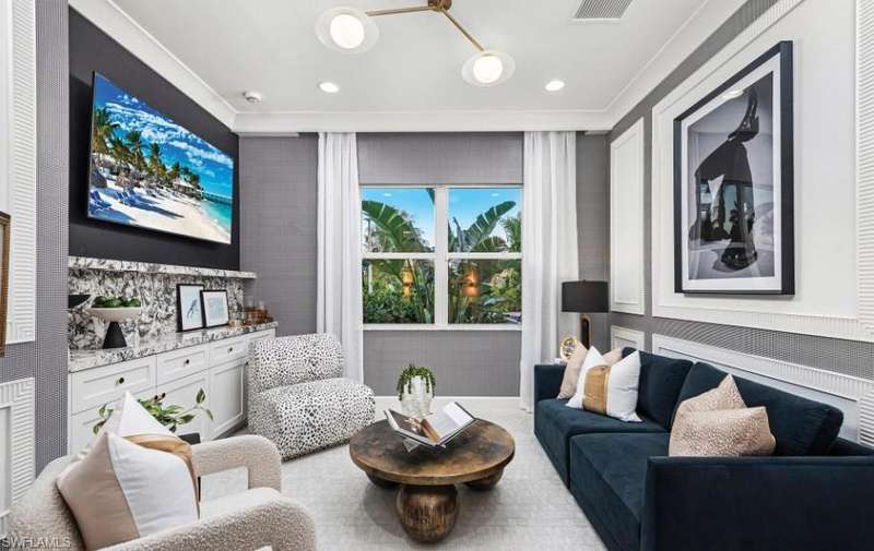 NEW construction in the heart of Naples, just 5 miles from downtown 5th Ave. Welcome to the exquisite "Skyline" floor plan, featuring a modern glass front entry door, impact-resistant windows throughout, and elegant natural stacked stone accents on the front exterior. This thoughtfully designed home offers 3 spacious bedrooms, a great room, a versatile den, 3 full baths, and a 2-car garage. The open-concept kitchen is a chef s dream with the gourmet package with crown molding and light valance and cabinet lighting below, stainless steel GE appliances, quartz countertops, built-in pantry and a layout perfect for entertaining. Additional upgrades include a gas tankless water heater, gas dryer, and gas range, upgraded paint color, along with 24x24 tile flooring in all main living areas and bathrooms for a seamless, upscale look. The lanai features a 5 foot patio extension and a summer kitchen stub out for your future outdoor kitchen. Lot provides room for a pool. Located within Valenci