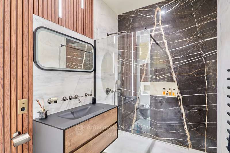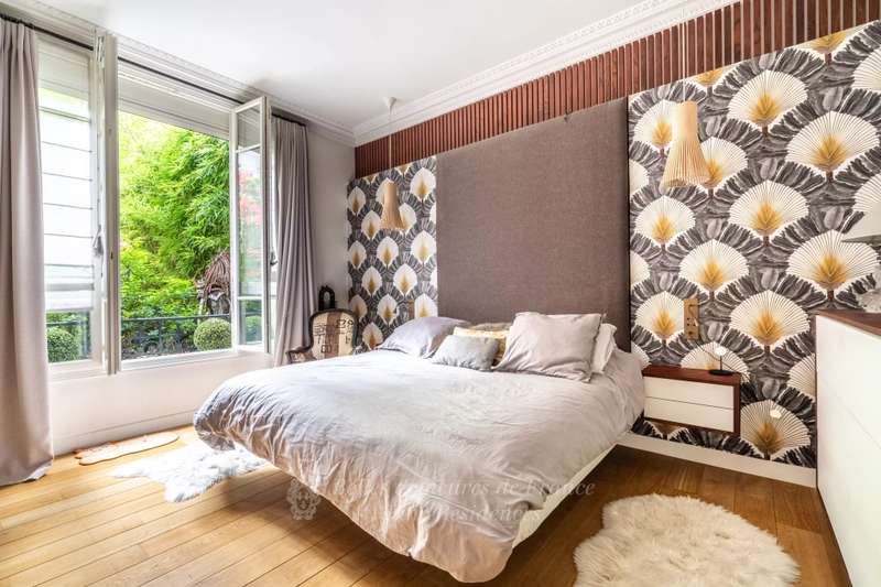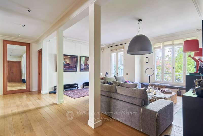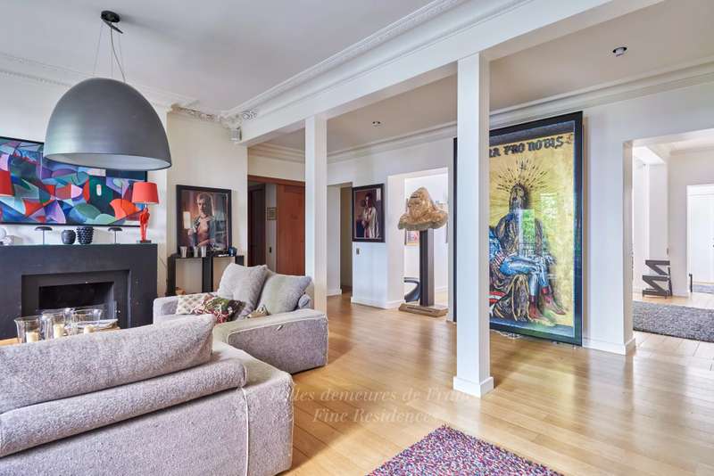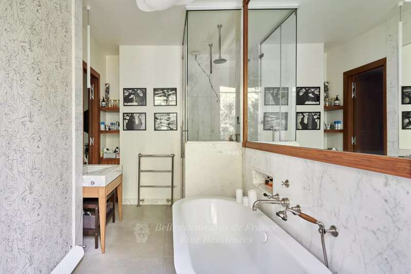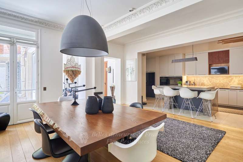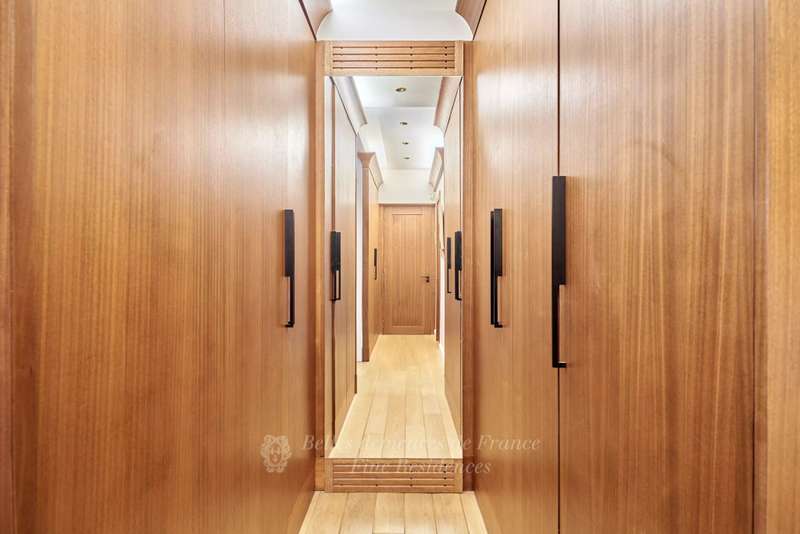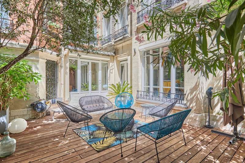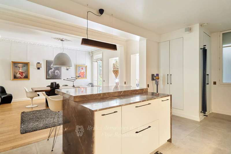 Avenue Wagram. This sumptuous garden-level apartment with the feel of a private house benefits from two leafy 88 and 57 sqm terraces. Entirely renovated and beautifully appointed, it offers 212 sqm of living space as defined by the Carrez Law including a spacious living/reception room bathed in sunshine, a marble-tiled kitchen with a central island, a dining room, a master suite with a bathroom, a shower room, a steam shower, a dressing room and a separate wc, three further bedrooms (two accessing a terrace), two shower rooms one with a wc, and a separate wc. Dual-aspect and featuring 3.30 metre high ceilings. With a cellar and a ventilated wine cellar.