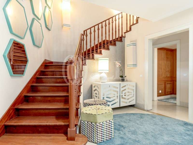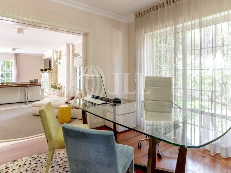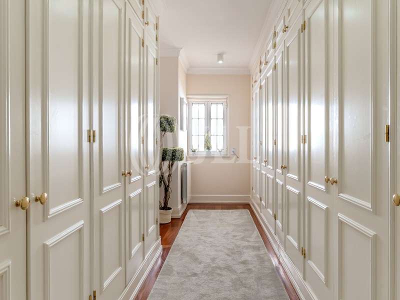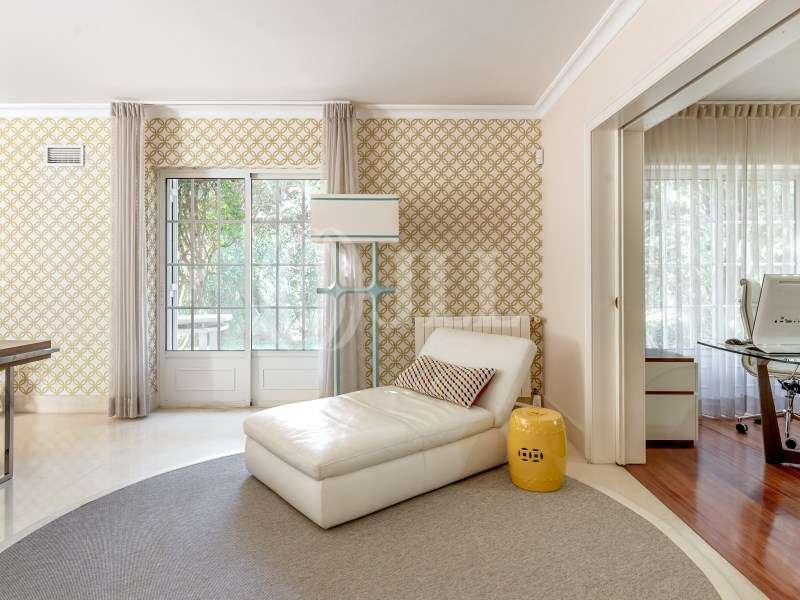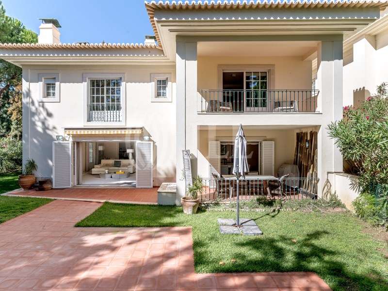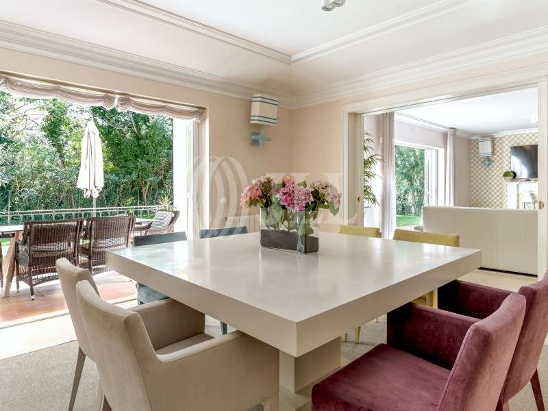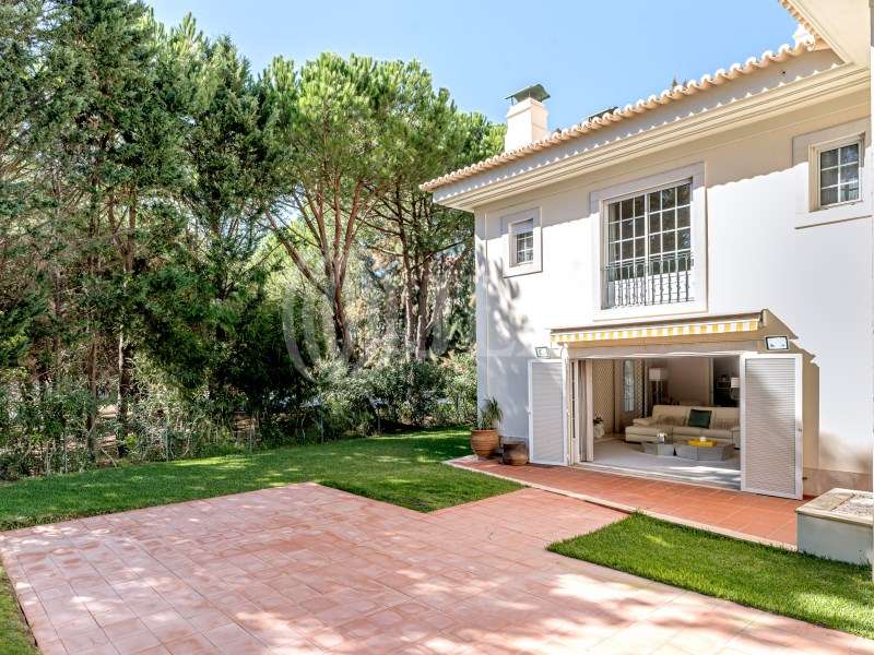 Moradia T4+1, geminada, com 550 m2 de área bruta de construção, com jardim, garagem, inserida no condomínio privado na Quinta Patino, no Estoril, Cascais. A moradia é composta por piso térreo com sala de estar e sala de jantar, escritório, todos com acesso ao terraço e ao jardim privado rodeado de uma agradável área verde. Cozinha totalmente equipada com zona de lavandaria, casa de banho social e uma pequena suite de serviço com casa de banho. No piso superior acedemos a quatro quartos, sendo um deles master suite com walk-in closet, varanda, casa de banho com jacuzzi e poliban, ainda neste piso tem outra suite e dois quartos, um dos quais com escritório, que partilham uma casa de banho completa. Cave com zona de arrumos e garagem para três carros com portão automático. Inserida na Quinta Patino, um dos condomínios mais emblemáticos e distintos de Cascais, reconhecido pela sua exclusividade, privacidade e luxo. O condomínio dispõe de segurança 24 horas, campos de ténis, ginásio e parque infantil. O acesso à piscina do condomínio está a apenas alguns metros, sendo de uso exclusivo dos apartamentos e das moradias. A 5 minutos driving distance das autoestradas A5 e A16, do centro do Estoril e do Clube de Golf do Estoril. Perto de comércio, zonas verdes, a 10 minutos driving distance das escolas IPS Bicesse, Colégio Salesianos do Estoril, SAIS (Santo António International School), CAISL (Carlucci American International School of Lisbon) e da TASIS (The American School in Portugal). A 25 minutos driving distance do centro de Lisboa e do Aeroporto Humberto Delgado. Categoria Energética: D #ref:94616