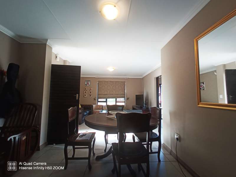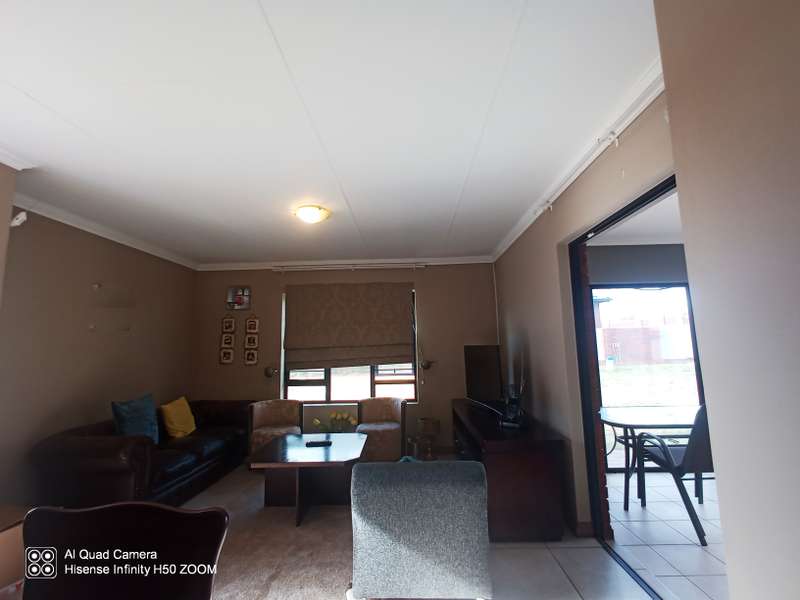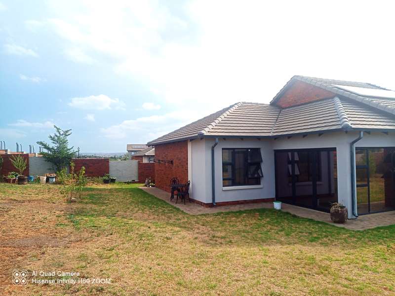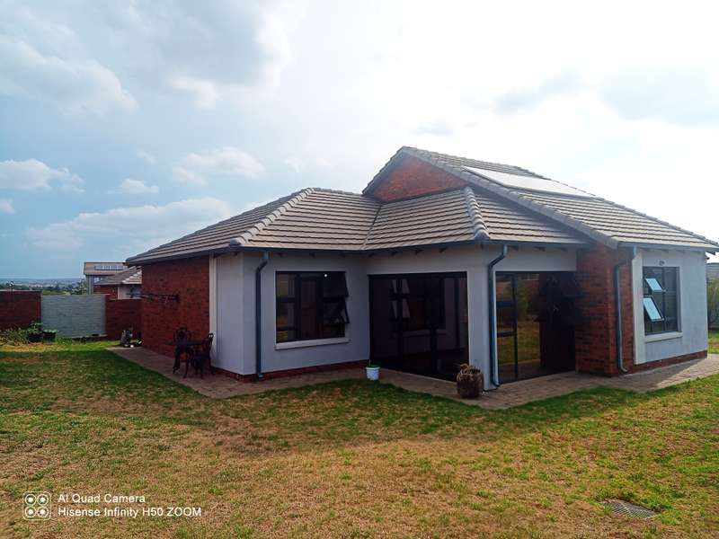 Elegant 3-Bedroom Home in a Prime 24/7 Security Estate Welcome to this beautiful property offering modern conveniences and comfort in a highly desirable security estate. This spacious 3-bedroom, 2-bathroom home features a stylish open-plan lounge and dining area, perfect for family gatherings and entertaining. The well-equipped kitchen is designed for both functionality and style, making meal preparation a breeze. Property Highlights: • Bedrooms: 3 spacious and well-lit bedrooms • Bathrooms: 2 modern bathrooms • Garages: Double garage with automated doors for ease and security • Utilities: 2 prepaid water meters and prepaid electricity for efficient cost management • Eco-Friendly: Equipped with a solar geyser for energy-efficient hot water • Outdoor Space: Expansive, lush garden perfect for relaxation and outdoor activities • Security: Fitted with security cameras and situated in a 24/7 secured estate with guarded access Prime Location Perks: This property is ideally located near major roads, the N14 Highway, several shopping malls, and within walking distance to a reputable private school. The home combines convenience, comfort, and top-tier security, making it a perfect fit for discerning buyers. This property is perfect for families or anyone looking for a comfortable, safe, and convenient lifestyle. Don’t miss out on this fantastic opportunity to own a home in a prime location!