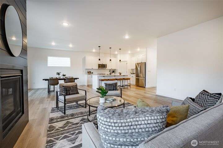 This 4-bedroom home offers a spacious, open-concept design with primary on the main, high ceilings & a cozy fireplace, creating a welcoming atmosphere. Step outside to the covered back patio, perfect for year-round enjoyment. Interior finishes include LVP flooring & sleek quartz countertops. Make the home yours by selecting from a range of finishes and upgrades! Options for upgraded cabinetry, designer backsplash, premium countertops, & tile showers are also available as add-ons. Photos shown are of the same floor plan built in another community, w/examples of available upgrades (additional costs apply). SAVINGS with our Preferred Lender: .75% Lender Credit & $5,000 Seller Credit. The site has been built up out of the floodplain.