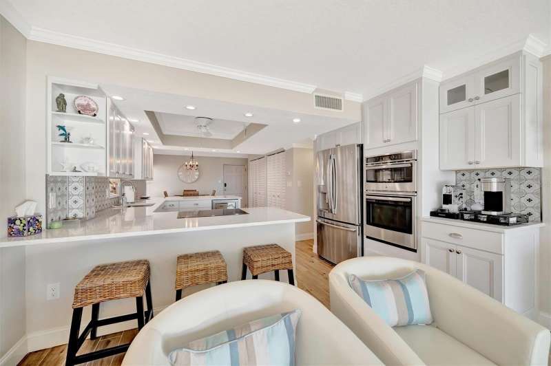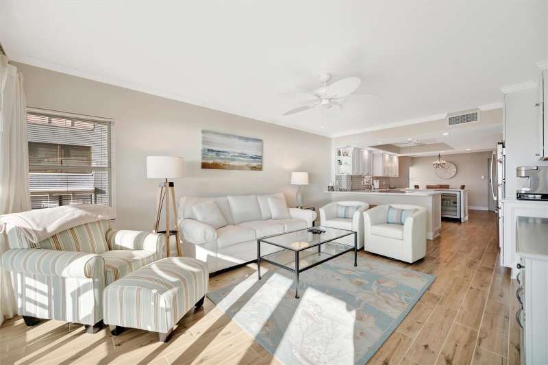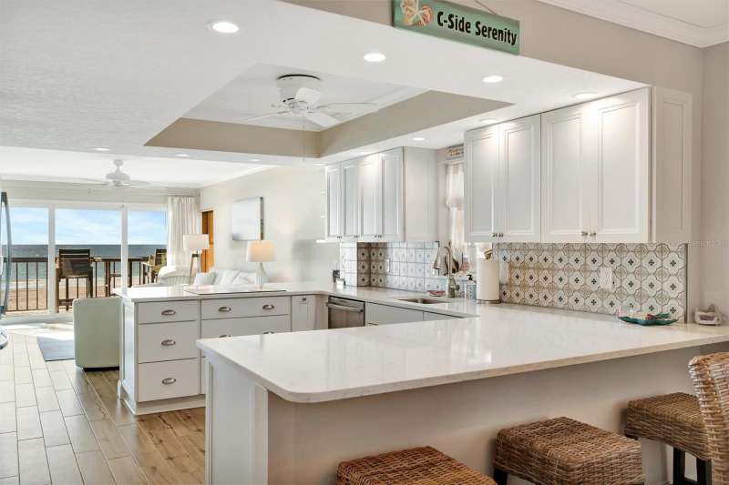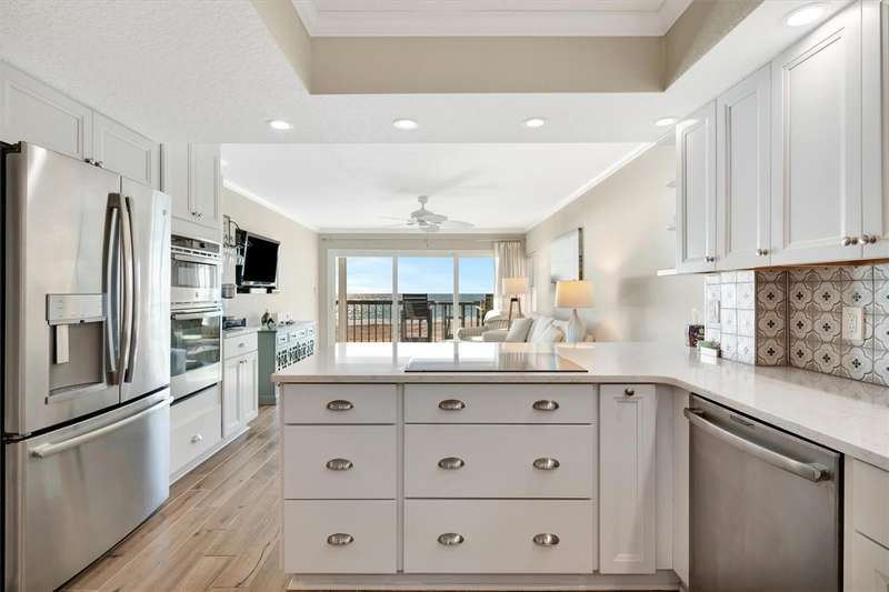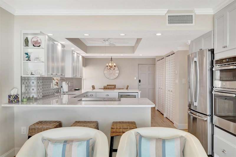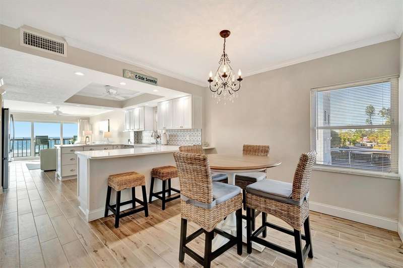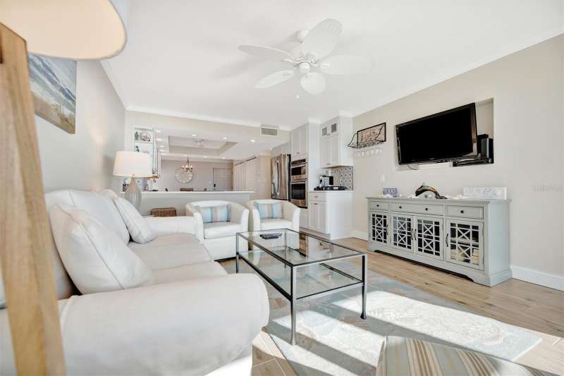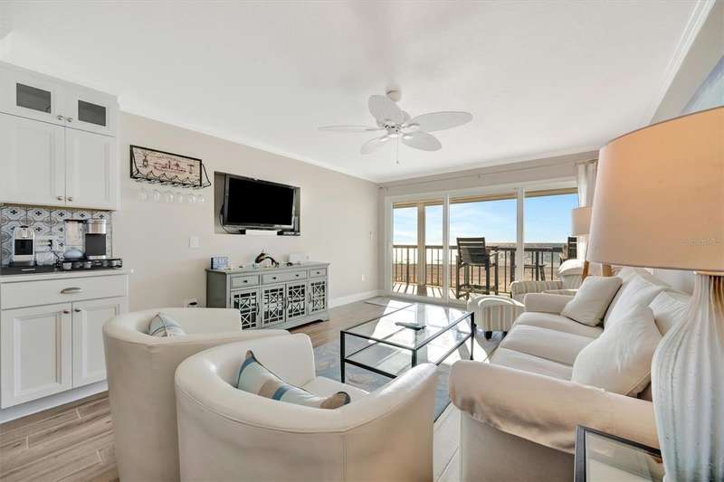 Experience coastal living at its finest in this beautifully remodeled 2-bedroom, 2-bath beachfront condo perfectly positioned on the second floor with stunning Gulf views and unforgettable sunsets. From the moment you enter, you’ll notice the attention to detail — tile flooring designed to look like natural wood, crown molding, and an open, airy layout that blends comfort and sophistication. The chef’s kitchen is a true centerpiece, featuring quartz countertops, a custom tile backsplash, stainless steel appliances, abundant storage, and thoughtful touches such as a beverage center and a dedicated coffee bar. The coastal-inspired décor carries throughout, creating a relaxing atmosphere ideal for a vacation retreat, primary residence, or income-producing rental. The spacious primary suite offers a serene escape with an updated ensuite bath, while the guest bedroom provides flexibility for family or visitors. Offered fully furnished and turn-key, this condo is move-in ready — simply bring your suitcase and start enjoying the beach lifestyle. Enjoy the convenience of a one-month minimum rental policy, giving owners the flexibility to use or rent as desired. Pet lovers will appreciate that one dog up to 35 lbs is welcome, making it easy to bring your four-legged companion along for the coastal lifestyle. Tahitian Towers is a highly regarded beachfront community known for its excellent management and friendly atmosphere. Residents enjoy a heated swimming pool, sunbathing deck, clubhouse, bike racks, and beautifully maintained common areas. The location is unbeatable — close to local boutiques, surf shops, cafés, restaurants, pubs, trolley stops, and even miniature golf. You’re just 15 minutes from either Clearwater Beach or St. Pete Beach, and only 35 minutes to Tampa International Airport. Discover why so many fall in love with this quiet stretch of Indian Shores — where every day feels like a vacation. Schedule your private showing today and start living the coastal dream.