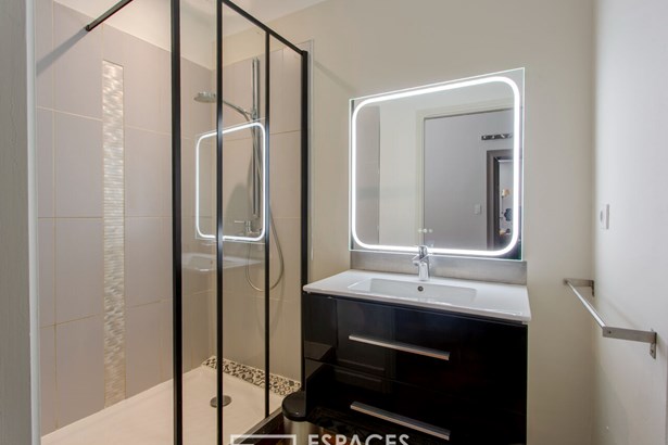 On the sleeping side, both bedrooms overlook the interior courtyard and each have their own private shower room or bathroom. A third bedroom is possible in place of the living room.