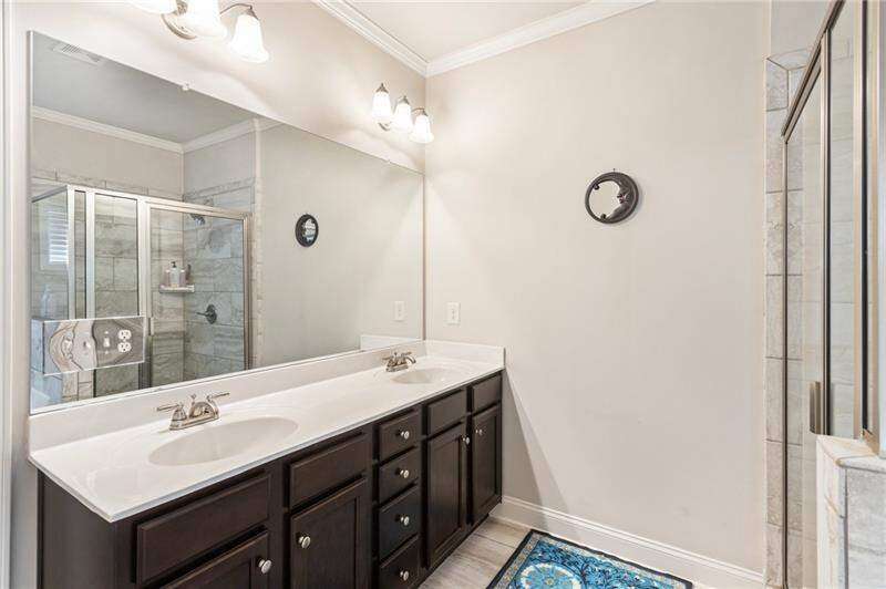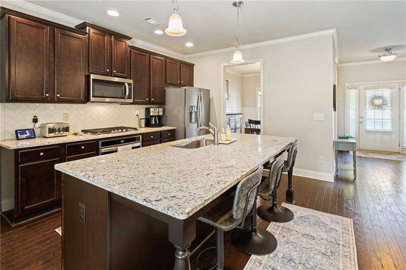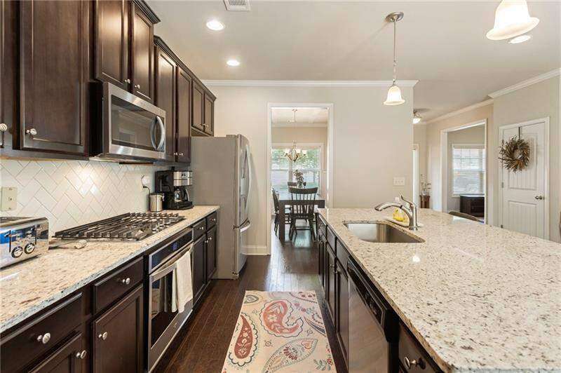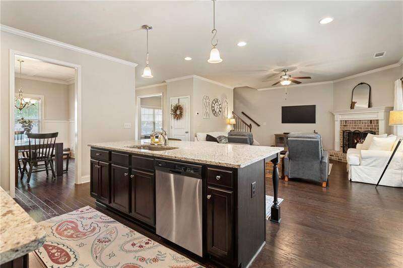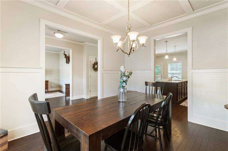 Welcome to 4018 Oxford Lane, a charming residence featuring 5 bedrooms and 3.5 baths nestled in the heart of Gainesville. This beautifully maintained home boasts a perfect blend of comfort, style, and convenience. As you approach the property, you'll be greeted by a well-manicured lawn and attractive landscaping that enhances the home's curb appeal in a cul-de-sac. The exterior features a craftsman style with a blend of brick/hardie plank siding and front covered porch. Upon entering, you are welcomed into a spacious foyer that flows seamlessly into the open-concept living and dining areas with hardwoods throughout. Abundant natural light filters through large windows, creating a warm and inviting atmosphere. The beautiful kitchen featuring stained cabinets, stainless steel appliances, and a large island for entertaining or a breakfast bar overlooking the living room. The adjoining dining area with exceptional crown moulding and coffered ceilings ensures effortless entertaining and family gatherings. The living room serves as a cozy retreat with its charming brick fireplace. This home features a primary on the main with an amazing en-suite, double vanity, ceramic tile shower, bathtub, and large walk-in closet. The 4 generously-sized bedrooms upstairs and two full bathrooms show thoughtfully designed with ample closet space and easy access. The newly finished terrace level offers amazing entertaining space such as high ceiling, hardwoods, half bathroom, two energy efficient mini-split units, with a walkout porch for additional space perfect for gathering and parties. Step outside to a landscaped backyard oasis, perfect for outdoor entertaining or quiet relaxation. The space includes a rear covered porch, ideal for BBQs and family gatherings, along with plenty of room for entertaining or relaxing. Situated in a friendly neighborhood, this property is conveniently located near local schools, shopping, dining, and recreational parks. Gainesville offers easy access to Lake Lanier and various hiking trails, making it an ideal location. Don't miss out on the chance to make this stunning residence your own!