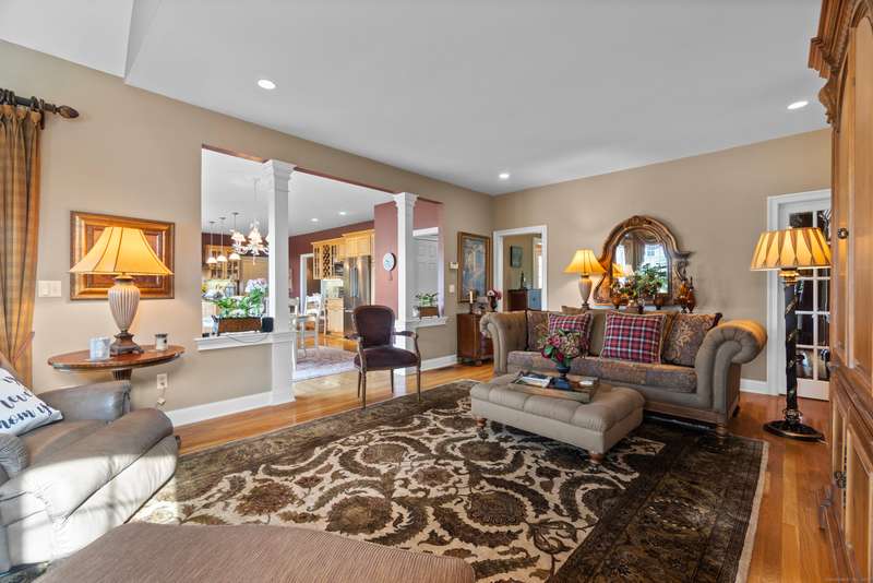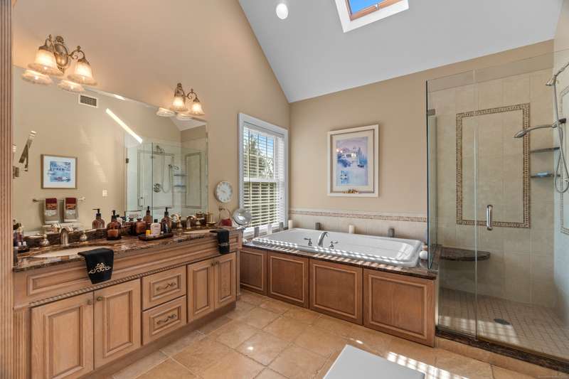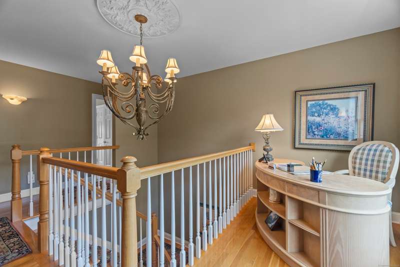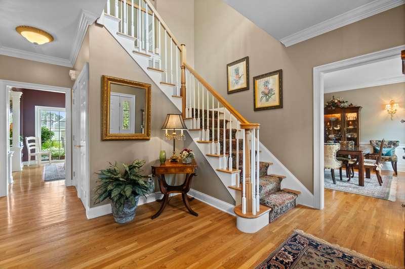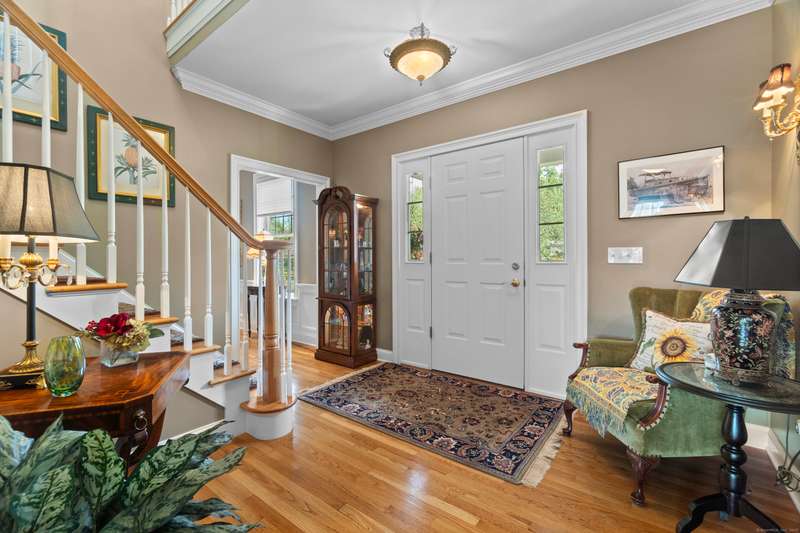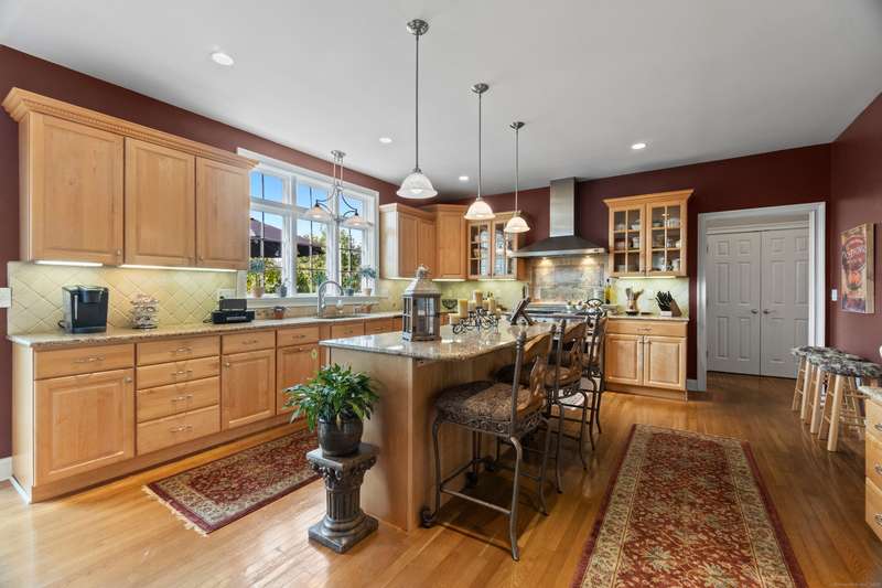 Nestled in one of Branford's most sought-after neighborhoods, this meticulously maintained colonial offers the perfect blend of space, style and comfort. With 4 spacious bedrooms, 3 bathrooms and plenty of living space, this home is move-in ready and thoughtfully designed for today's lifestyle. The main floor features an elegant entryway with hardwood floors throughout, a gourmet eat-in kitchen with granite countertops, a center island, top of the line appliances and a custom backsplash of the beautiful scenes of Tuscany created by a local artist. There are multiple living spaces on the first floor, including a family room, living room and formal dining room. Additional first floor features include a private laundry room and access to the deck. Upstairs you'll enjoy a primary suite with vaulted ceilings, a large walk in closet, a luxurious bathroom including a double sink vanity, walk-in shower and soaking tub. Three additional bedrooms are upstairs, as well as a bonus room, ideal for