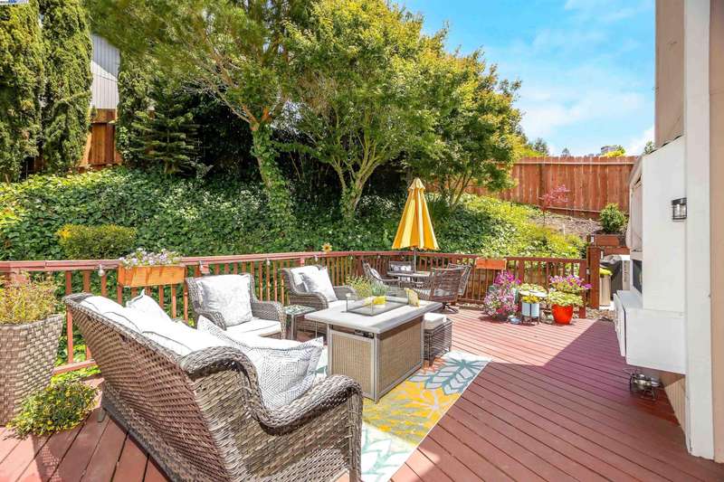 Welcome to Your Dream Home at 23380 Lakeridge Avenue.PRIME Corner Lot! for extra privacy. This beautifully updated 3-bedroom, 3-bathroom home (1,615 sq. ft.) offers charm, comfort, and a true sense of pride in ownership at every turn. Nestled in the desirable Hayward Hills within the Fairview neighborhood, this residence is move-in ready with thoughtful upgrades throughout. Step inside to a modern, light-filled interior featuring a refreshed layout, designer color palette, recessed lighting, plantation shutters, skylights, and laminate flooring throughout. The open-concept kitchen and family room—complete with an electric fireplace—creates a warm and inviting space, perfect for both relaxed evenings and entertaining guests. It’s truly the heart of the home. A flexible bonus room on the lower level includes a full bath and closet, offering potential as a 4th bedroom, home office, gym, or additional family room—you decide! Step outside to your private backyard oasis. Enjoy mature landscaping, deck lighting, and serene greenery that backs up to the property. Your perfect setting for the beautiful evening sunsets. NO OPEN HOUSE THIS WEEKEND.
