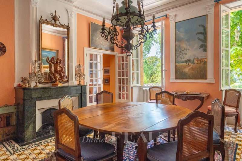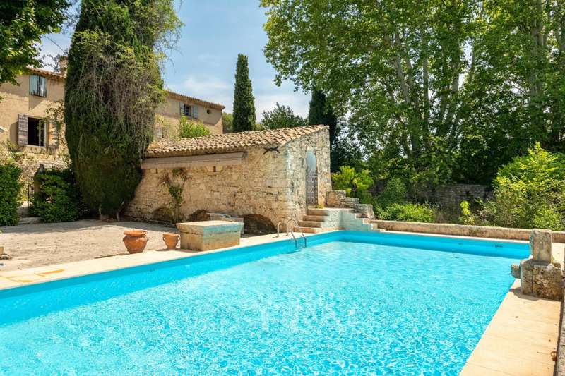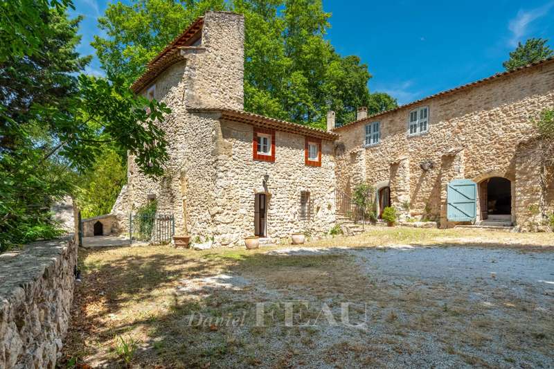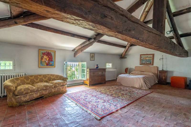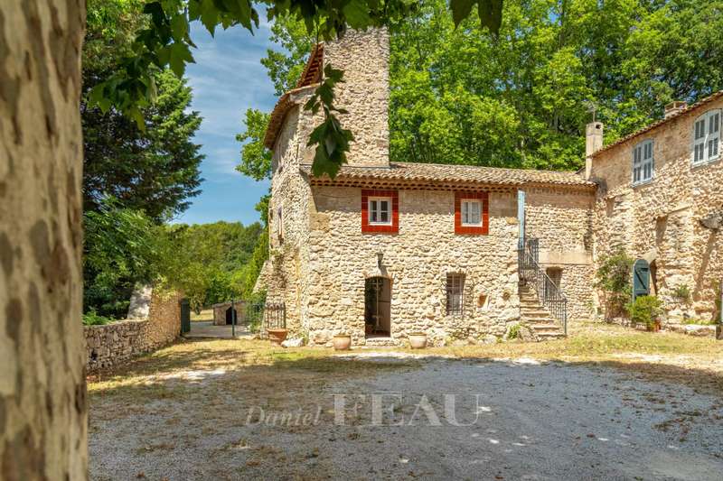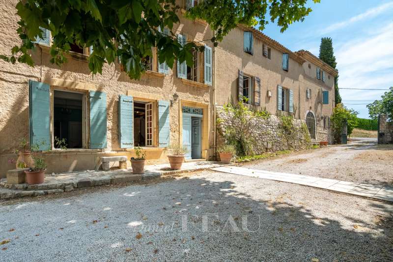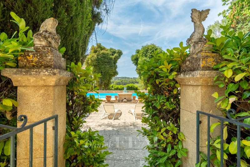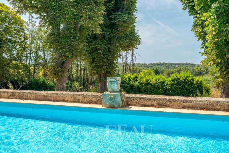 Sole Agent. This stone-built property dating back in part to the 12th century, in part to the 16th century and in part to the 17th century is located in peaceful countryside 10 minutes north of Aix en Provence. Set in 1.5 hectares, it offers 1100 sqm of potential living space of which a majority is in need of renovation. The main house includes two entries, a bedroom, a shower room and a utility room, with a living/reception room, a kitchen accessing an inner courtyard, a dining room, a study, a library area and a workshop, seven bedrooms, four bathrooms and three washrooms upstairs. A converted dovecote includes a living room/kitchen, four bedrooms, two bathrooms and a study. A caretaker’s house comprises a living room, a kitchen, three bedrooms and a bathroom. With a swimming pool in a former water feature, a summer kitchen, two garages, a cellar and a stone-built annex with a period fireplace.