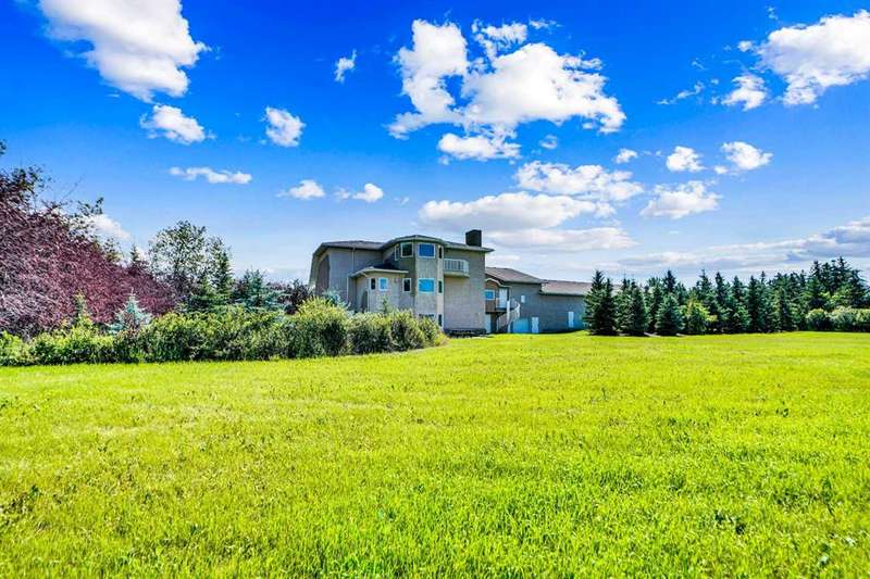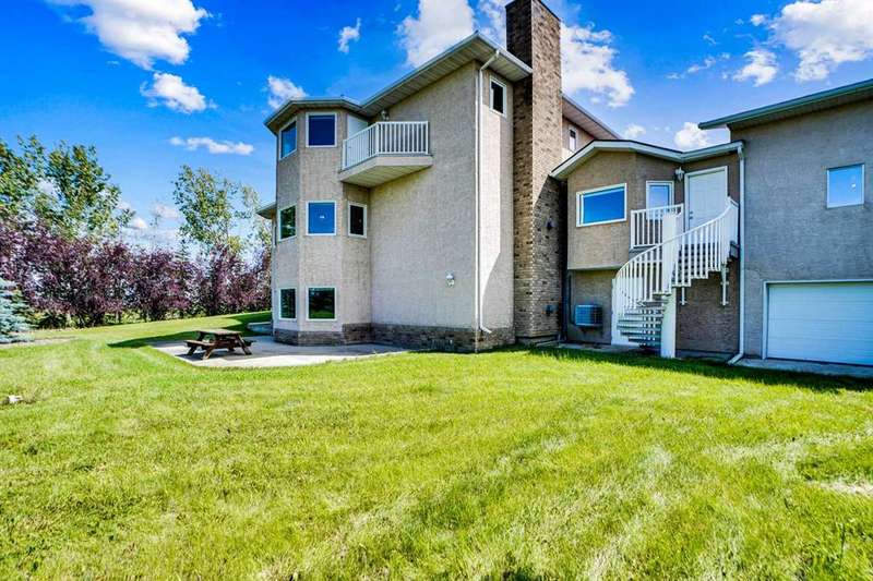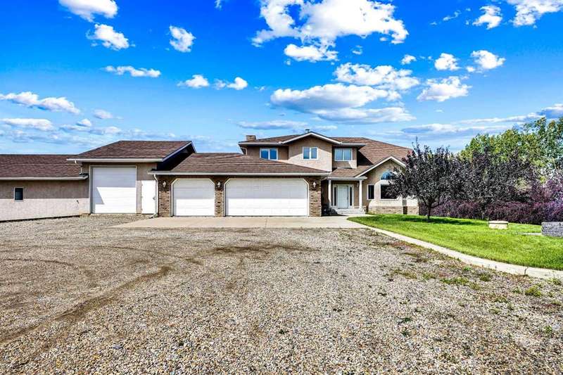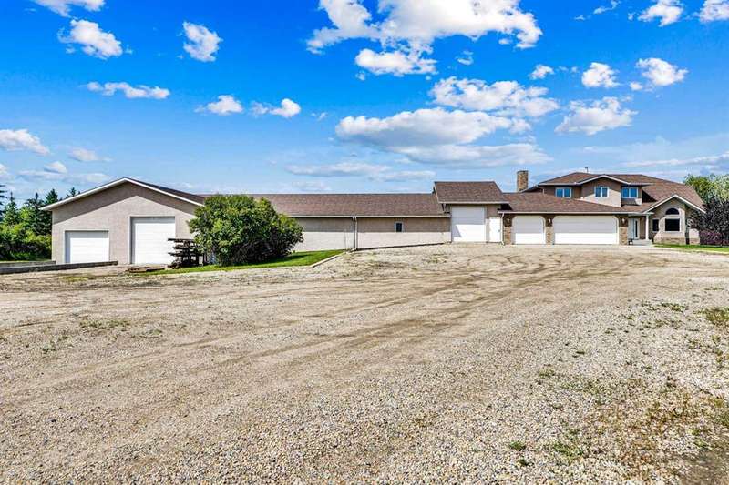 Welcome to 241203 Range Road 280, Located right on the east boarder of the City of Chestermere. This property has almost 65 Acres of Residential - Country Residential District zoned land. (minimum lot size 1.98 Acres). This property would be a great candidate to subdivide into 2 acre parcels. The house is 3430 SF above grade with an attached triple garage plus 2 car tandem. The attached shop is 6500 SF and includes a loading bay with industrial loading dock, 12' high overhead doors, 10' concrete walls that are 14' high, insulated with 1" rigid insulation on the inside plus a 2x8 isolated framed interior wall. Total R value of walls is R40 plus the R value of the concrete walls. Concrete floors have in floor heating through out the entire shop. The entire structure has metal roofing, there is a 12000 L Cistern for City water if you choose, there is also a well that pumps 17 g/m. Duel septic fields at the rear of the property have been well maintained. House has triple pane windows, Central AC and in floor heating. There is an illegal suite on the main floor between the house and the tandem garage. It has a separate entrance from the yard as well as a door from the inside of the garage. The City of Chestermere has recently annexed up to the west line, as well as on the north side of the Trans Canada Highway. It is reasonable to think they will likely look into annexation of this property as well. Copies of the Chestermere development plan are available as well as area structure plans for land just west of this property.