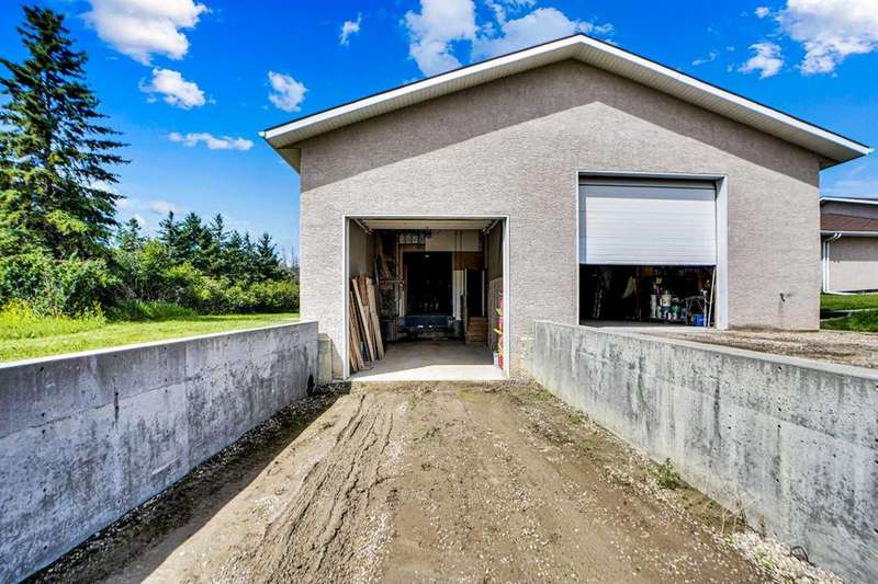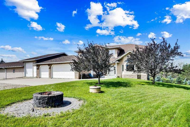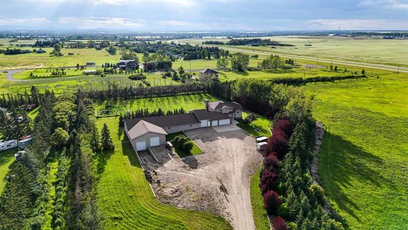 Welcome to 241203 Range Road 280, Located right on the east boarder of the City of Chestermere. This property has almost 65 Acres of Residential - Country Residential District zoned land. (minimum lot size 1.98 Acres). This property would be a great candidate to subdivide into 2 acre parcels. The house is 3430 SF above grade with an attached triple garage plus 2 car tandem. The attached shop is 6500 SF and includes a loading bay with industrial loading dock, 12' high overhead doors, 10' concrete walls that are 14' high, insulated with 1" rigid insulation on the inside plus a 2x8 isolated framed interior wall. Total R value of walls is R40 plus the R value of the concrete walls. Concrete floors have in floor heating through out the entire shop. The entire structure has metal roofing, there is a 12000 L Cistern for City water if you choose, there is also a well that pumps 17 g/m. Duel septic fields at the rear of the property have been well maintained. House has triple pane windows, Central AC and in floor heating. There is an illegal suite on the main floor between the house and the tandem garage. It has a separate entrance from the yard as well as a door from the inside of the garage. The City of Chestermere has recently annexed up to the west line, as well as on the north side of the Trans Canada Highway. It is reasonable to think they will likely look into annexation of this property as well. Copies of the Chestermere development plan are available as well as area structure plans for land just west of this property.