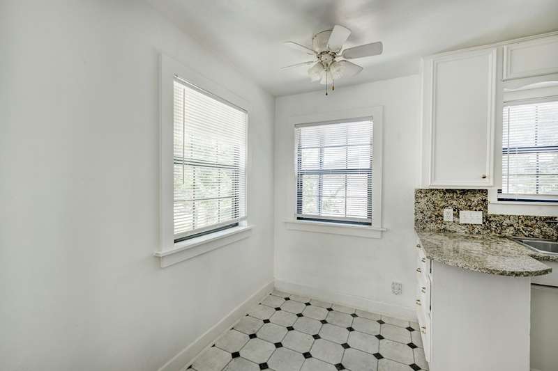 Most sought after Heights area, one you must see. Home offers: one huge bedroom, pane windows, wonderful yard & porch to relax & enjoy while having a cup of coffee or your favorite drink. Light & bright kitchen with breakfast area & lots of storage. Kitchen has outstanding granite counter tops, all appliances including dishwasher & more. Your own private utility room downstairs w/regular size W/D. Beautiful wood-like floors in living & bedroom. Walk in closet. Nice size living room with lots of windows & ceiling fan. Unit offers all window coverings. Covered parking & gated. This a must see on your short list! All per Landlord