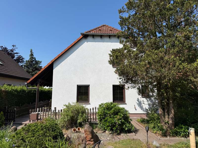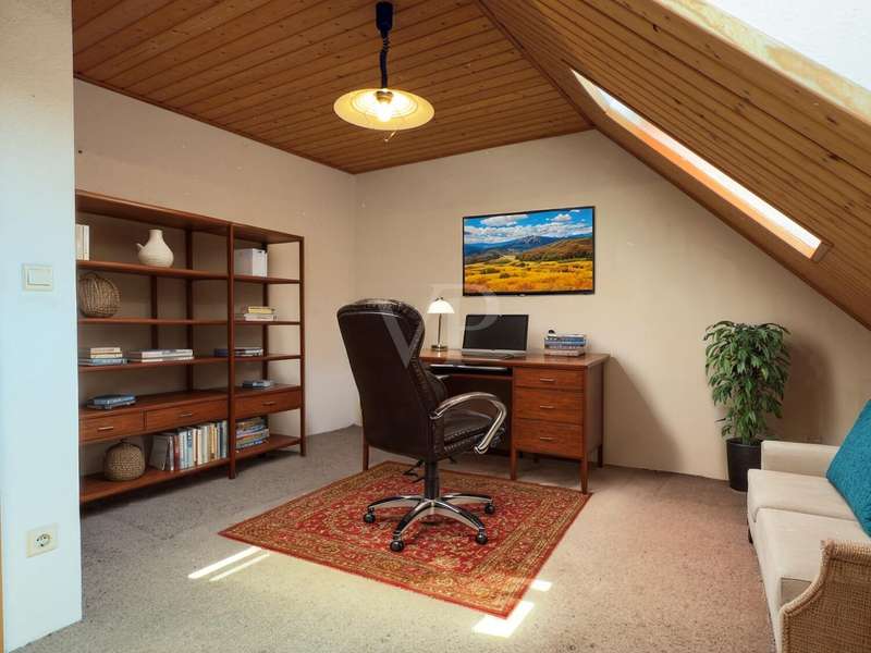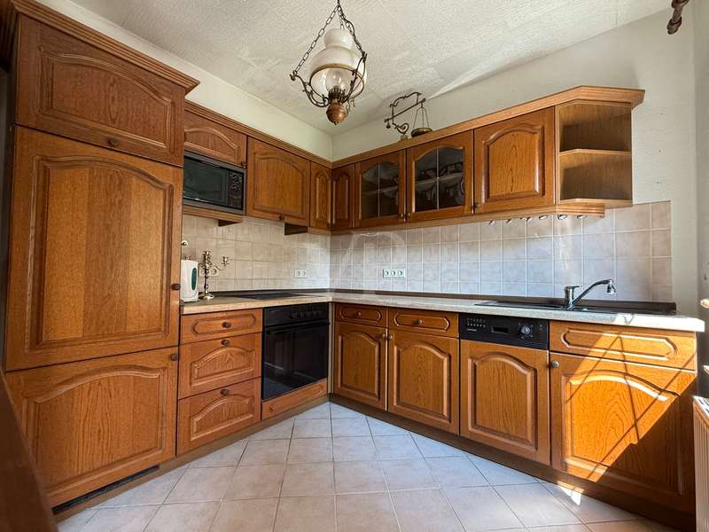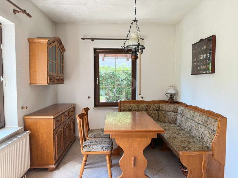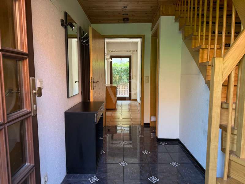 As soon as you enter the house, you can sense the very special character of this property - a place that tells stories and is waiting for a loving refresh. The entrance area is clearly structured: To the left is the small guest WC, functional and with natural light. To the right, a solid wooden staircase leads to the upper floor - an authentic detail that gives the house its original charm. If you continue straight ahead, the view opens up: To the right, the staircase branches off into the basement, straight ahead you enter the cozy living-dining room. Even if the style is a little dated, the room with its fireplace invites you to spend warm hours - there is potential here for a place full of security. To the left of the living room is the kitchen - compact, easy to use and clearly separated from the living area. It offers the perfect basis for individual design ideas and a modern redesign. You can enter the property from the living/dining area. Three rooms await you on the upper floor, offering plenty of space for family, guests or a home office. The bathroom with a view of the garden brings in plenty of natural light and creates a friendly atmosphere. The garden itself is a small retreat - with a charming shed for garden tools and a small pond that adds a special touch. There is space here for green ideas, cozy afternoons or children playing. This house is not a new build - but one with potential. It needs attention, yes - but it gives a lot back. For people with ideas, with heart and the desire to create a real home, it offers the perfect basis: an honest, solid house with soul and perspective.