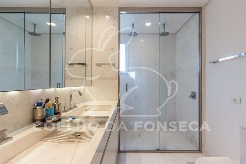 Toda marcenaria do apto fabricante Artigiano - Nas áreas sociais projeto de automação Lutron - Ar condicionado instalado em todos ambientes fabricante Daikin Inverter - Piso da área social mármore travertino , nas suites tacos em madeira Cumaru e banhos Mármore Piguês - Bancada da churrasqueira em Silestone, da cozinha Granito Preto Absoluto - Exaustor industrial na varanda gourmet fabricante Construflama - Paredes living e hall social revestidas em madeira Nogueira Americana -