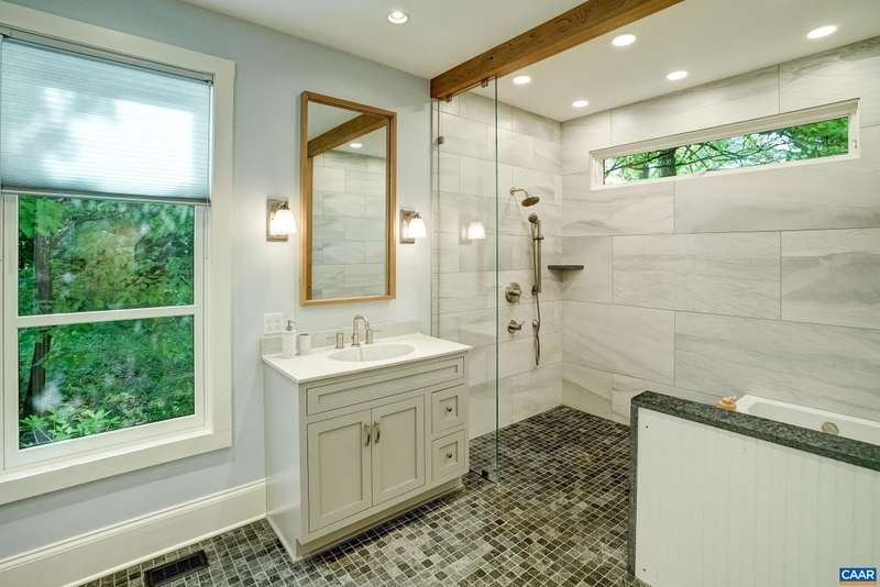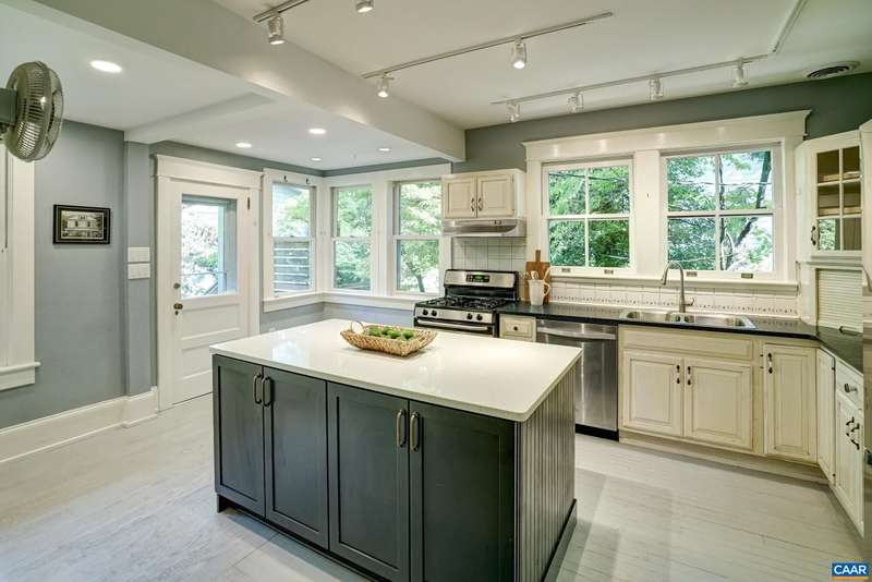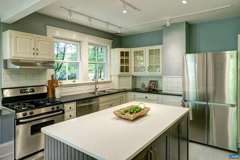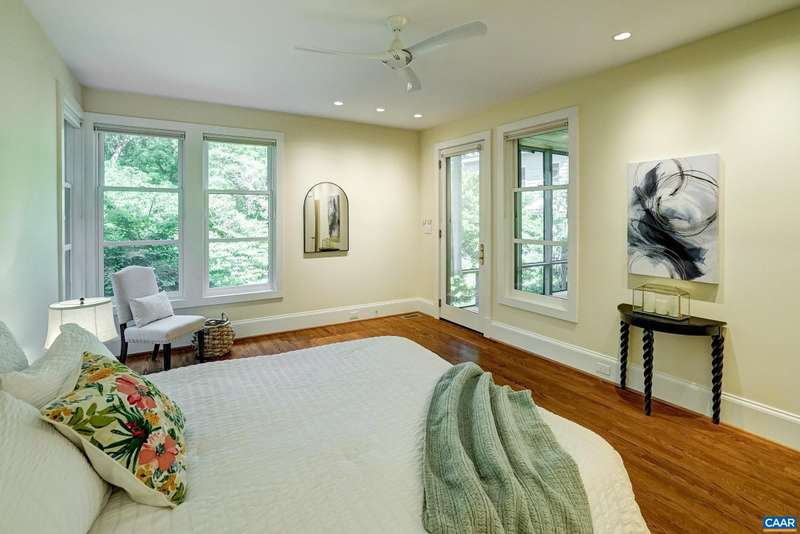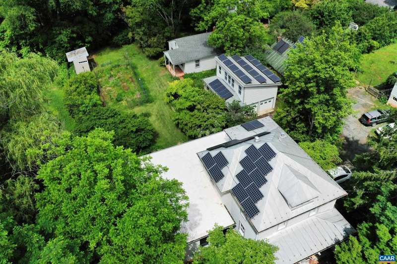 Located on 1+ acre with lush landscaping providing privacy and year-round color, garden space and off street parking! Beautiful downtown home with stunning addition (2020), detached, income generating cottage, and detached 2-car garage with studio/office space in the charming Frys Spring neighborhood of Charlottesville. Solar panels provide 100% of electricity depending on the season. This unique custom home features original hardwood floors throughout the main house, with a large living room that opens to the formal dining room. The newly added kitchen features quartz countertops, white cabinets, high-end Kitchenaid appliances and an eat-in breakfast nook. Main level living with the expansive light-filled primary suite that features a luxurious spa-like bathroom, walk in closet and screened porch access. Upstairs three generously sized bedrooms share a full hall bathroom, and a fourth bedroom could be converted from a built-in closet back to a fifth bedroom if desired. The detached 2-car garage features a ground floor office/workout space, half bathroom and loft area, and the income-generating 2 bedroom cottage features a kitchenette, full bathroom and living room. Off street parking in driveway for 4 cars!