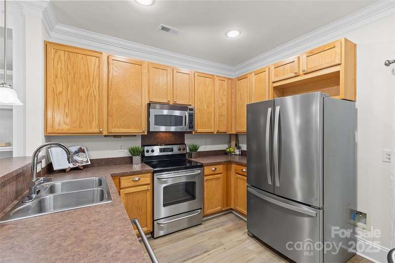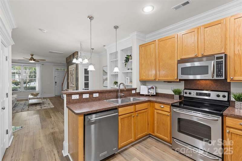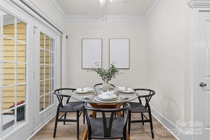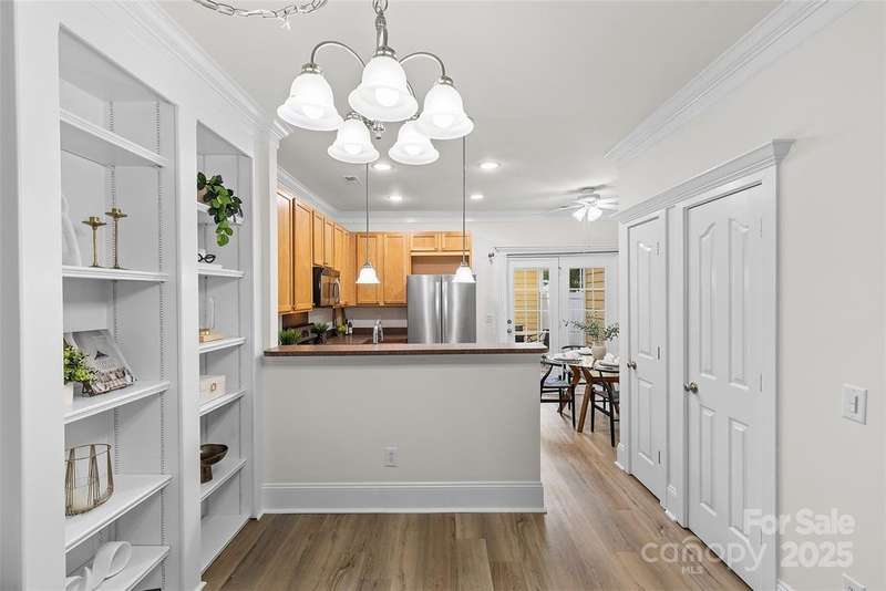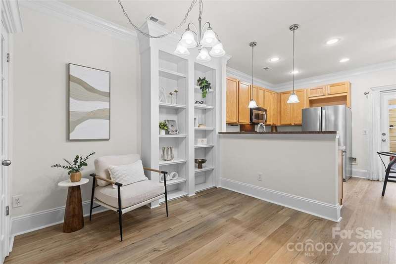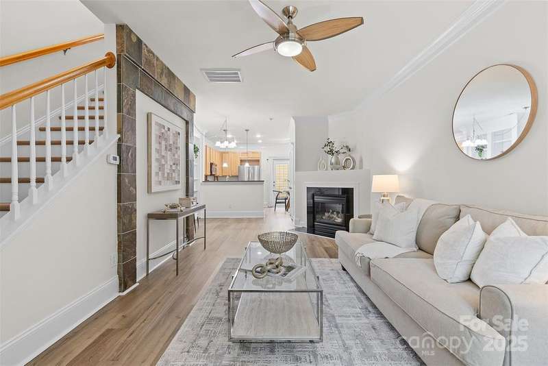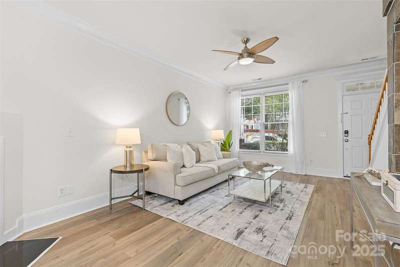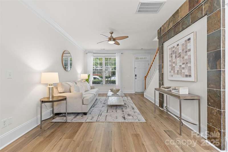 Nestled in the heart of Baxter Village, this sweet townhome offers the perfect blend of charm and convenience. This home puts Baxter's incredible amenities at your fingertips-whether you want to take a dip in one of the two community pools, explore the shops & restaurants, pick up a book at the Library, or visit the many Green Spaces...it's all just a quick walk away. Inside, you'll find a recently painted interior and LVP flooring throughout (tile in Baths). This home's main level has 10' Ceilings, Crown Molding, Living Room w/Fireplace, Dining/Reading area with built-ins, Powder Room, and an Eat-In Kitchen. Step outside to the Private, Fenced Courtyard and detached 1-Car Garage. Upstairs you'll find 2 generous Bedrooms with their own Baths. This home is ready for you to make it your own!