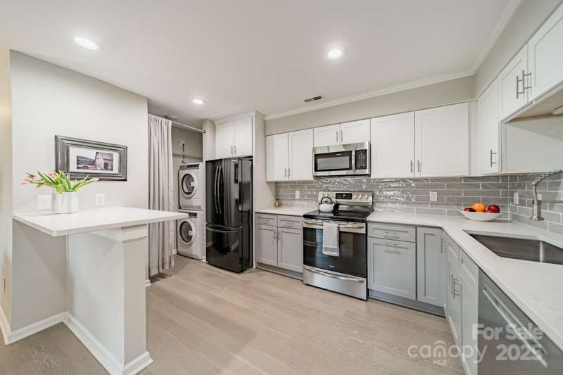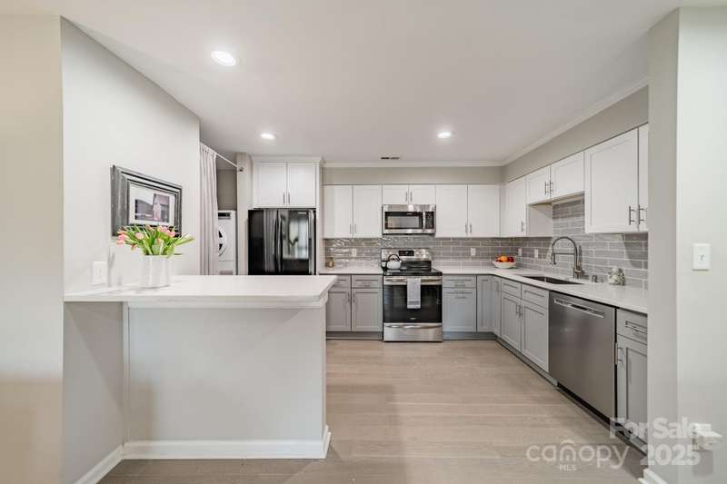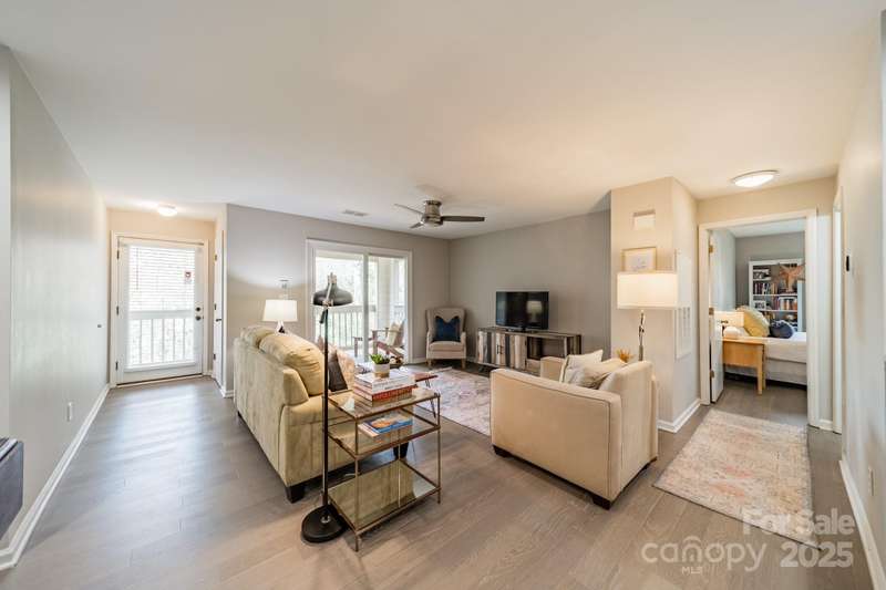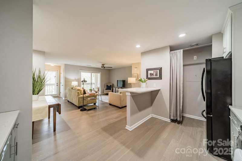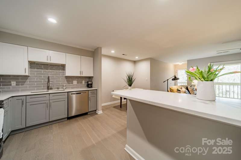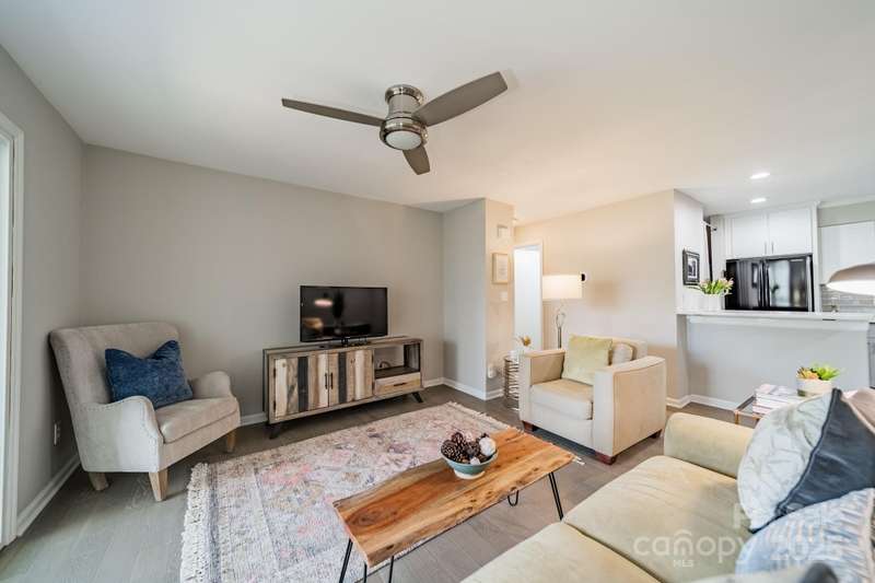 ***BACK ON THE MARKET DUE TO BUYERS PERSONAL CHANGE OF PLANS.Welcome to this beautiful, completely renovated condominium nestled between Cotswold and Oakhurst neighborhoods. Walk into the open floor plan which boasts new LVP plank flooring, and is adjacent to the large, very modern kitchen which includes counter seating. Unique design features include: soft close cabinetry, quartz countertops, commercial grade faucet, stainless appliances, and a gorgeous subway tiled backsplash. Additional upgrades include: tile in the bathroom, sliding doors, ceiling fans, paddle switches with dimmers and a new HVAC unit (2019) and BRAND NEW hot water heater (2025). Very private and quiet back porch with wooded view.Community features are nearby which include a spacious swimming pool, clubhouse and tennis courts. Prime location for Cotswold shopping, and restaurants or a quick commute to uptown.Washer/Dryer and refrigerator convey. Move in ready!