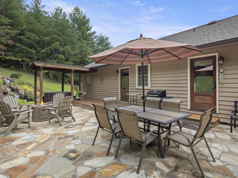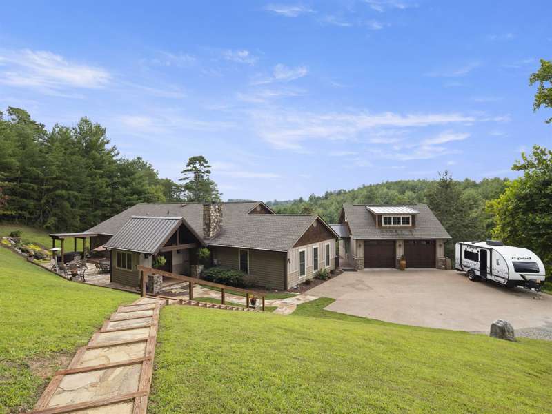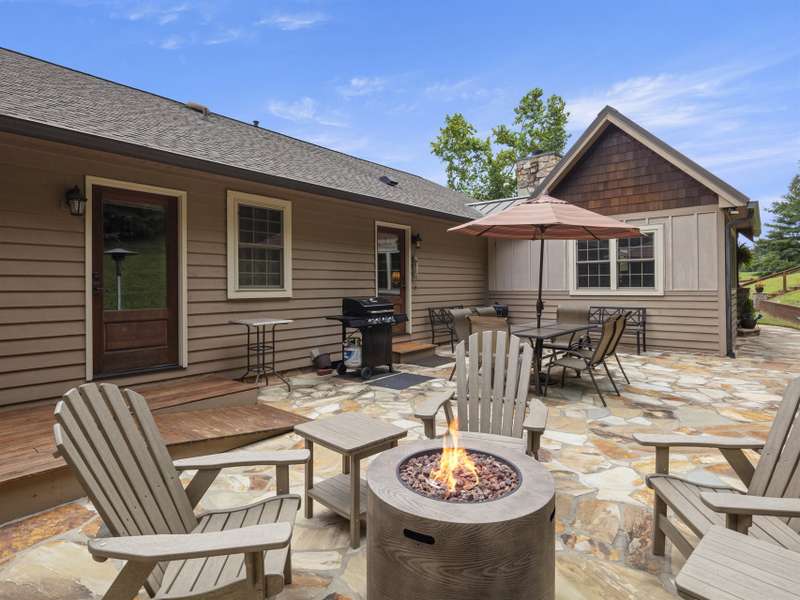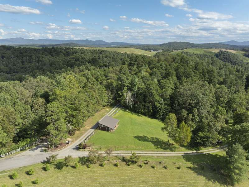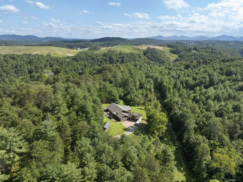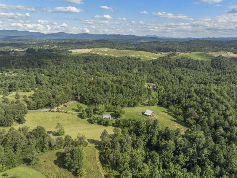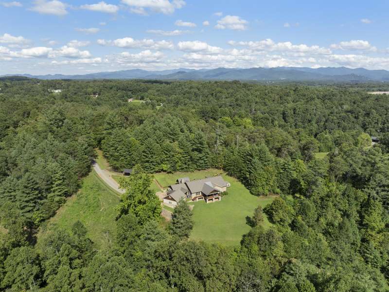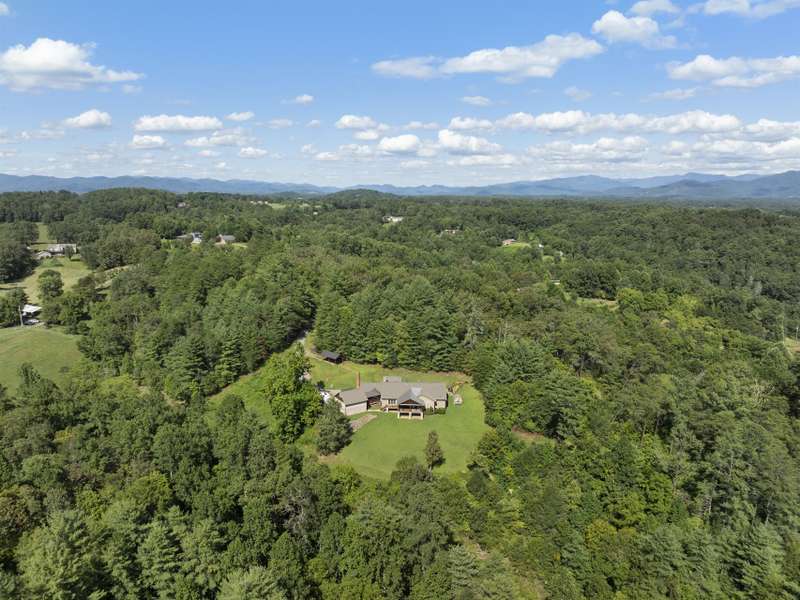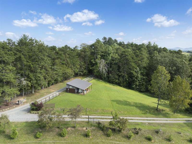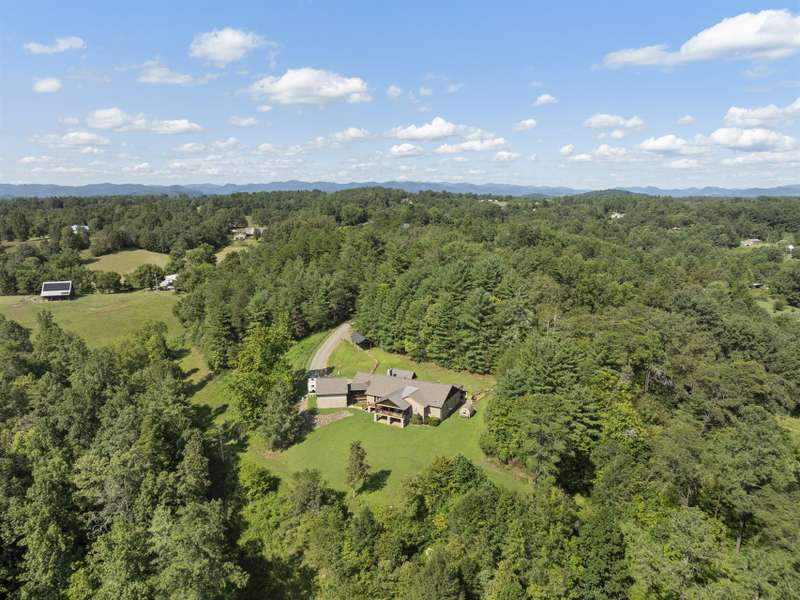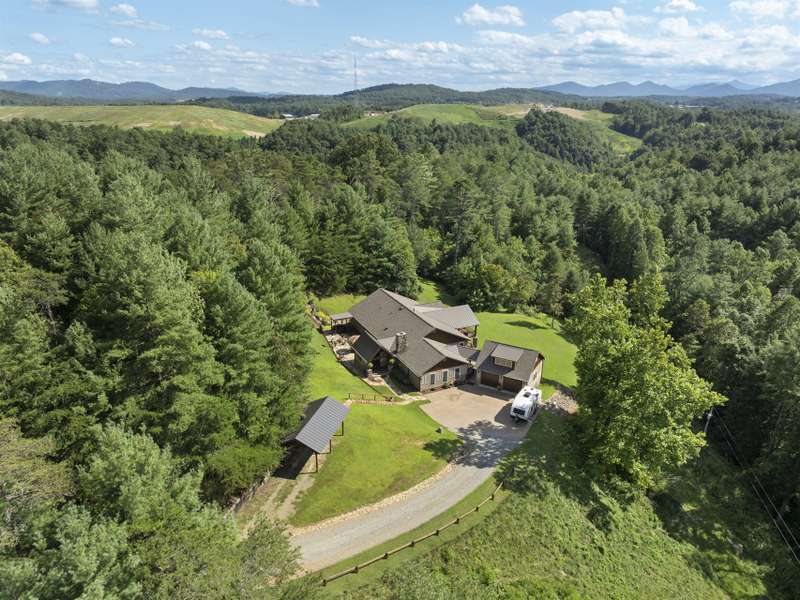 Perfectly positioned on 7.85 acres, this re-designed single level ranch is a true retreat. Enjoy private mountain views, a fully outfitted two-car garage, and a charming farmhouse that sets the stage for idyllic living. The main house showcases extensive upgrades, including artisan-crafted light fixtures, solid wood exposed beams, and a luxury kitchen with quartz countertops and floor-to-ceiling solid wood cabinets by Forest Millwork. Just off the chef's kitchen, an expansive covered deck invites peaceful mornings with a cup of coffee or memorable evenings overlooking the gently sloping lawn and mountain backdrop. The primary suite features a fully renovated bath, while a generous office and guest bedroom complete the main living space. A separate lavish suite with private entrance and bar area?ideal for a future kitchenette?offers versatile accommodations for in-laws or guests. Designed with comfort and accessibility in mind, the home includes extra-wide door frames, a zero-clearance shower entry, and select automatic door openers. Outdoor living shines with a serene custom water feature, hot tub, and inviting flagstone patio. Across the breezeway, the two-car garage features custom doors and a workshop space. The barn accommodates up to three horse stalls and includes partial fencing, ideal for equestrian enthusiasts. Located just 15 minutes from Weaverville and 25 minutes to downtown Asheville, this estate blends privacy, convenience, and mountain charm?perfect for those seeking a quiet retreat with nearby dining, shopping, and more.
