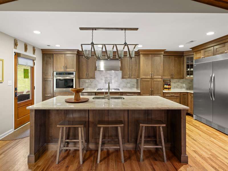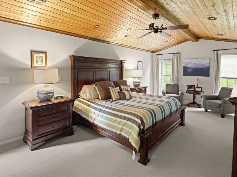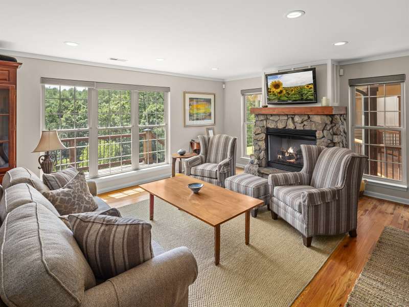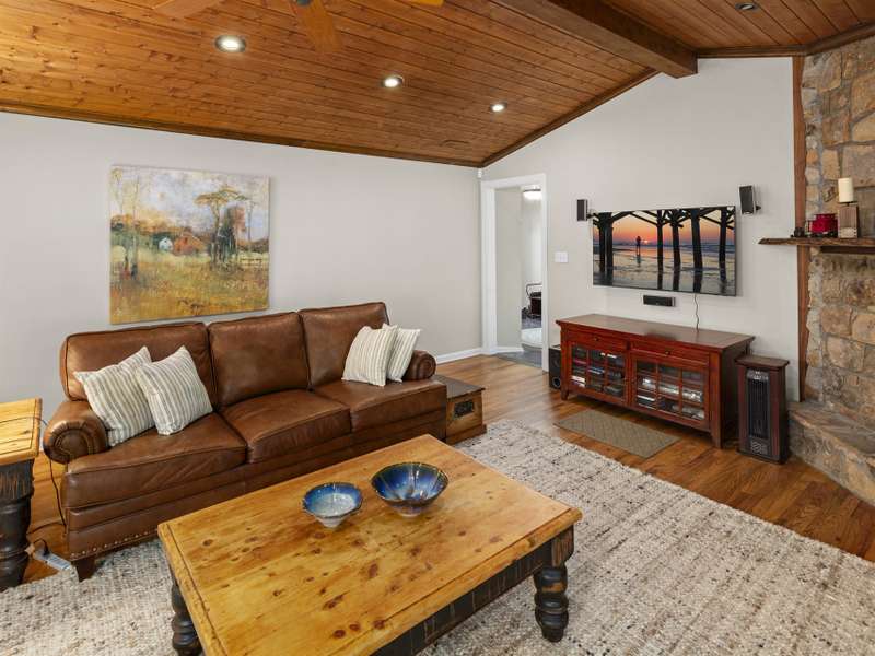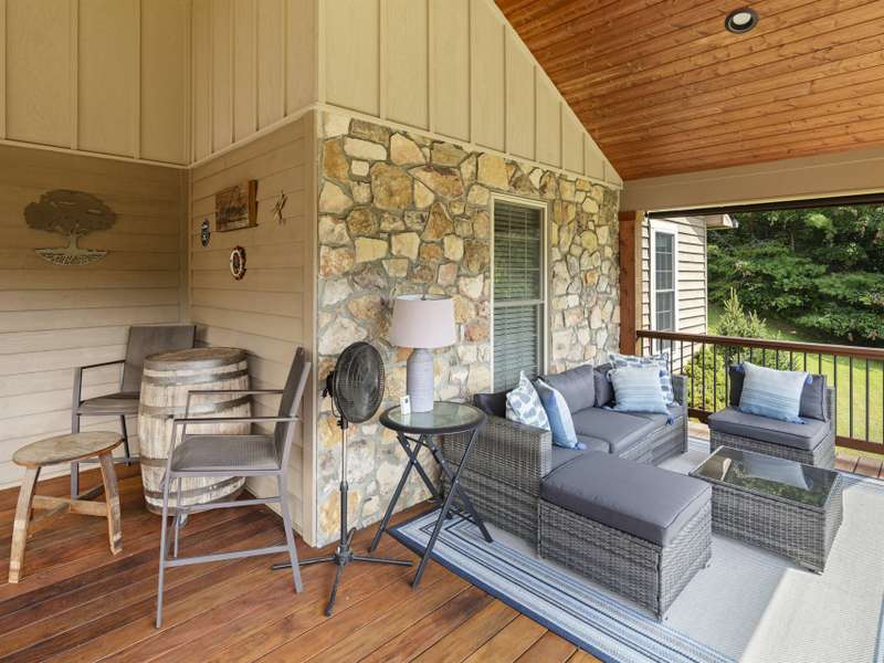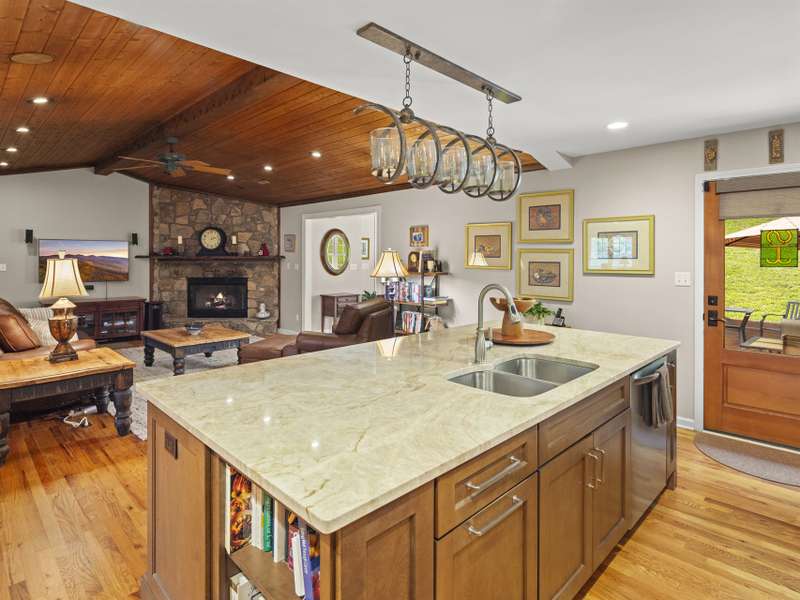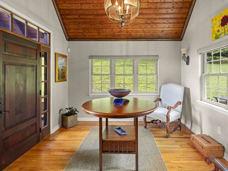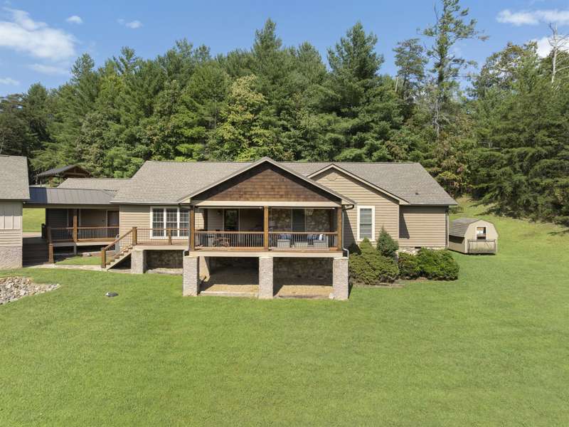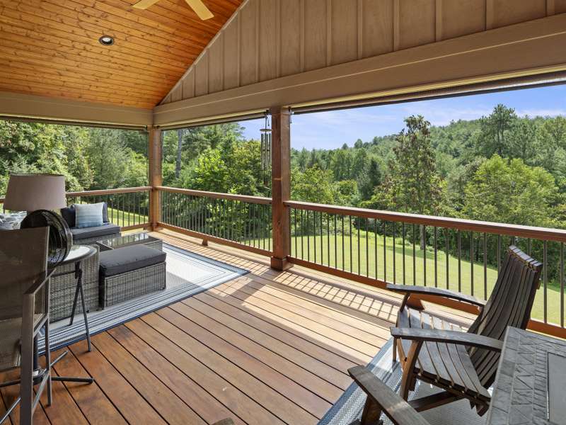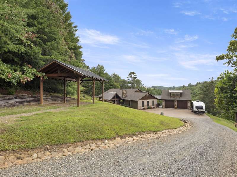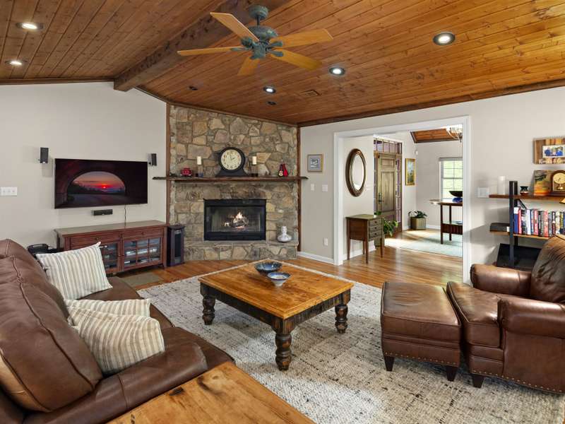 Perfectly positioned on 7.85 acres, this re-designed single level ranch is a true retreat. Enjoy private mountain views, a fully outfitted two-car garage, and a charming farmhouse that sets the stage for idyllic living. The main house showcases extensive upgrades, including artisan-crafted light fixtures, solid wood exposed beams, and a luxury kitchen with quartz countertops and floor-to-ceiling solid wood cabinets by Forest Millwork. Just off the chef's kitchen, an expansive covered deck invites peaceful mornings with a cup of coffee or memorable evenings overlooking the gently sloping lawn and mountain backdrop. The primary suite features a fully renovated bath, while a generous office and guest bedroom complete the main living space. A separate lavish suite with private entrance and bar area?ideal for a future kitchenette?offers versatile accommodations for in-laws or guests. Designed with comfort and accessibility in mind, the home includes extra-wide door frames, a zero-clearance shower entry, and select automatic door openers. Outdoor living shines with a serene custom water feature, hot tub, and inviting flagstone patio. Across the breezeway, the two-car garage features custom doors and a workshop space. The barn accommodates up to three horse stalls and includes partial fencing, ideal for equestrian enthusiasts. Located just 15 minutes from Weaverville and 25 minutes to downtown Asheville, this estate blends privacy, convenience, and mountain charm?perfect for those seeking a quiet retreat with nearby dining, shopping, and more.