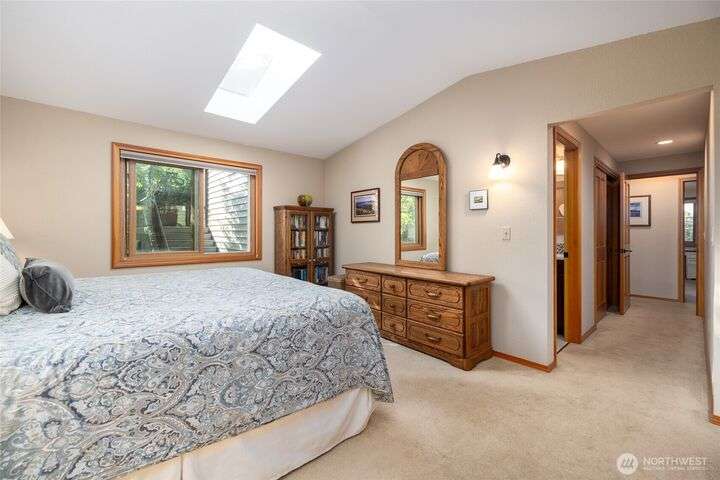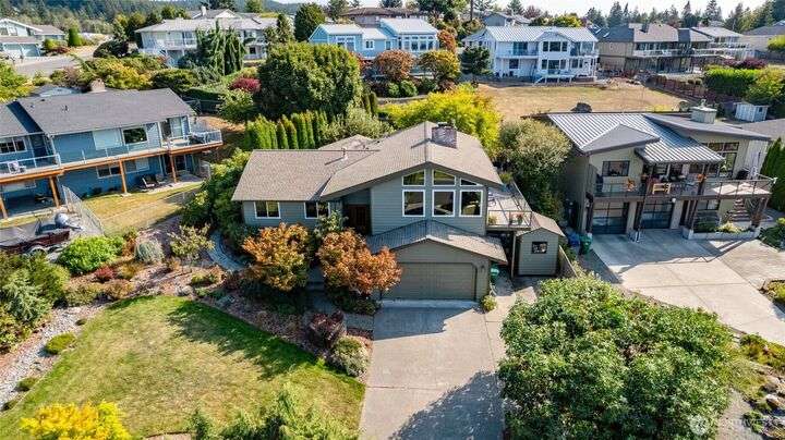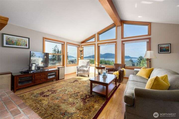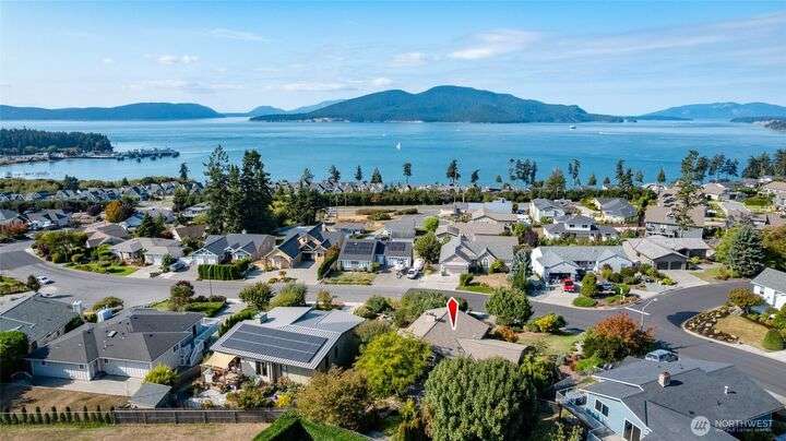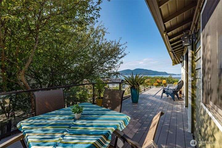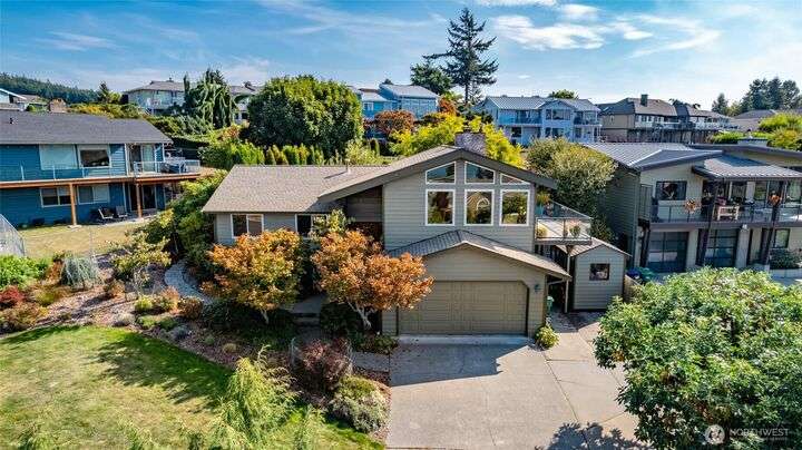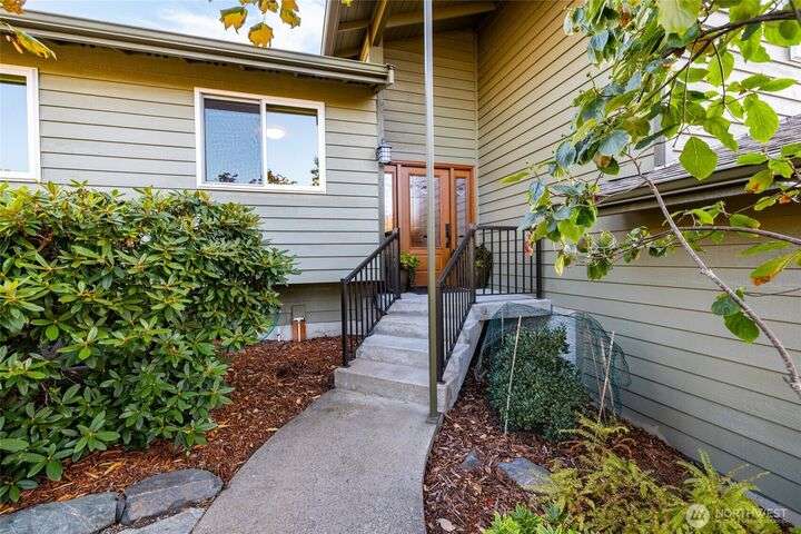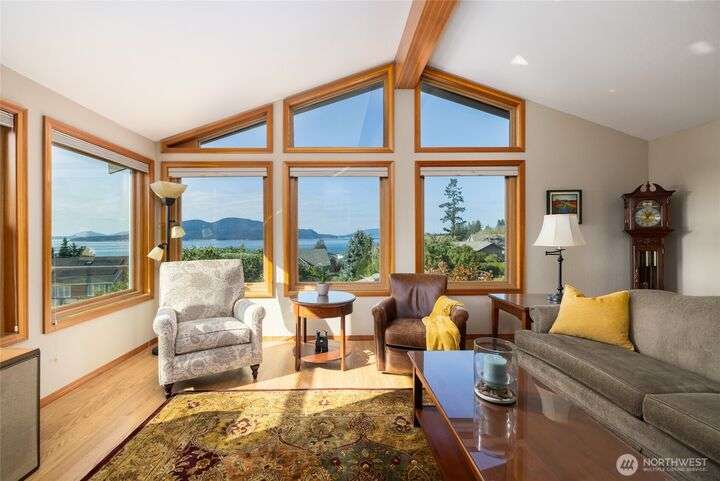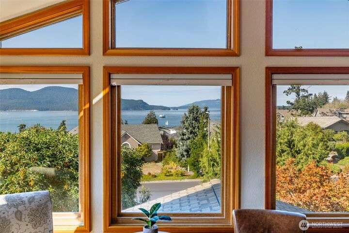 Spectacular water & island views set the stage for this inviting 4BR home, where the ultimate coastal lifestyle awaits. Watch ferries, boats & even whales from your living room! Vaulted ceilings & walls of windows frame the views, while a refreshed kitchen with granite, stainless appliances & quality cabinetry shines. Updated baths, cozy family room & thoughtful details throughout. Step outside to a spacious view deck, private patio vignette & lush landscaping. Just a short stroll to the beach, park & waterfront trails. Fresh exterior paint, EV charging, RV parking & HOA amenities including pickleball & sports courts complete this perfect Pacific Northwest retreat.