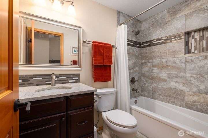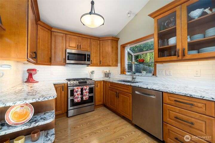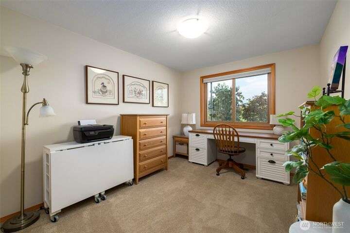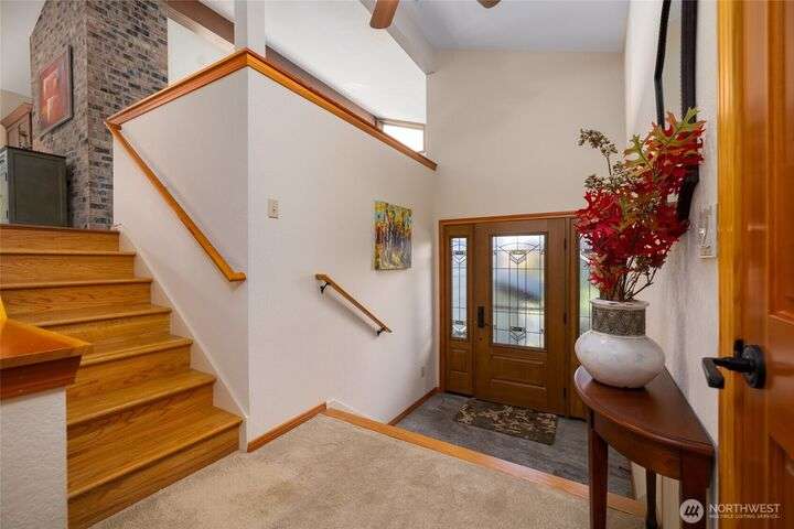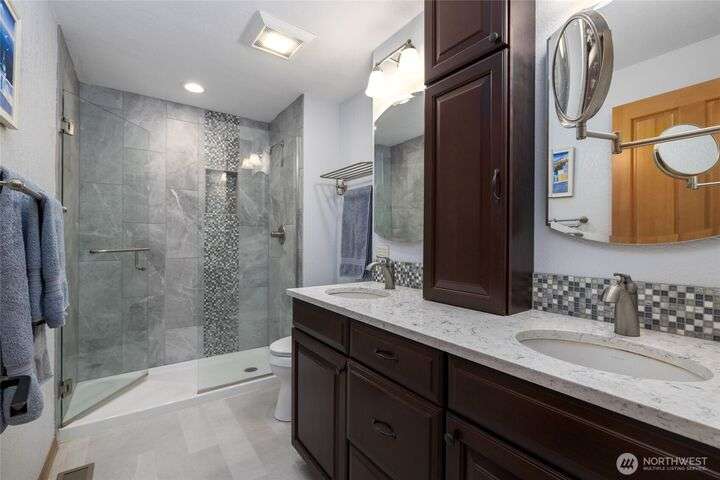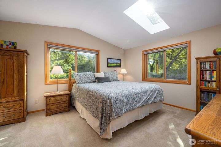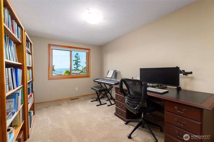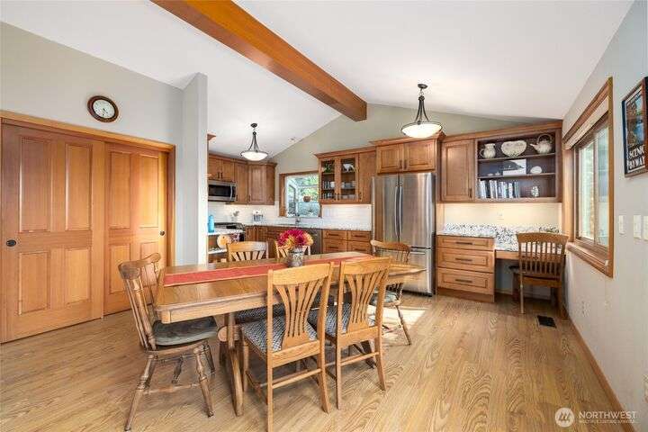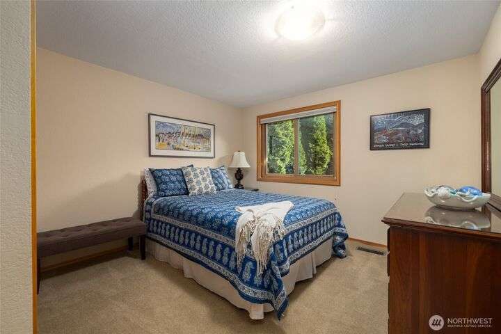 Spectacular water & island views set the stage for this inviting 4BR home, where the ultimate coastal lifestyle awaits. Watch ferries, boats & even whales from your living room! Vaulted ceilings & walls of windows frame the views, while a refreshed kitchen with granite, stainless appliances & quality cabinetry shines. Updated baths, cozy family room & thoughtful details throughout. Step outside to a spacious view deck, private patio vignette & lush landscaping. Just a short stroll to the beach, park & waterfront trails. Fresh exterior paint, EV charging, RV parking & HOA amenities including pickleball & sports courts complete this perfect Pacific Northwest retreat.