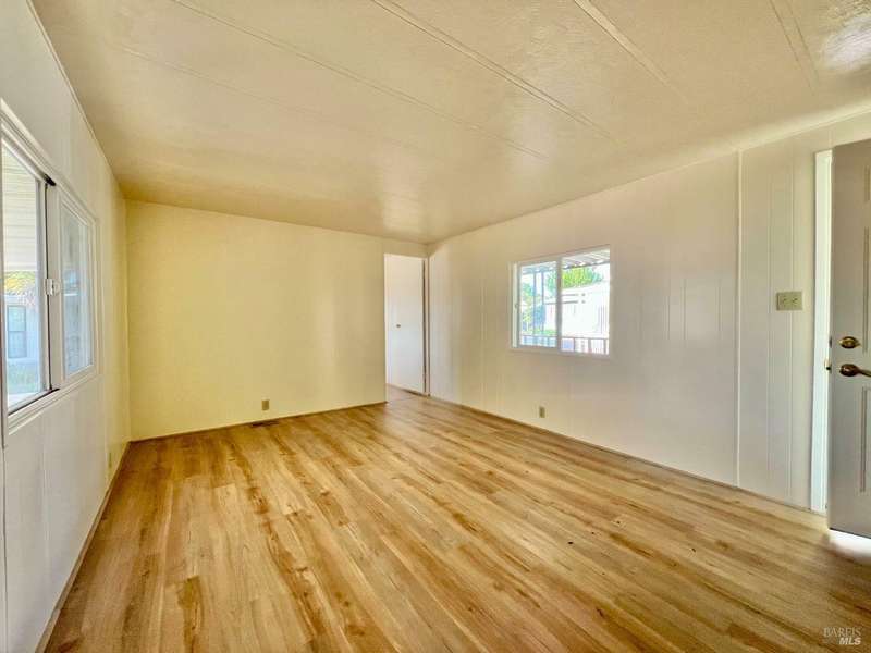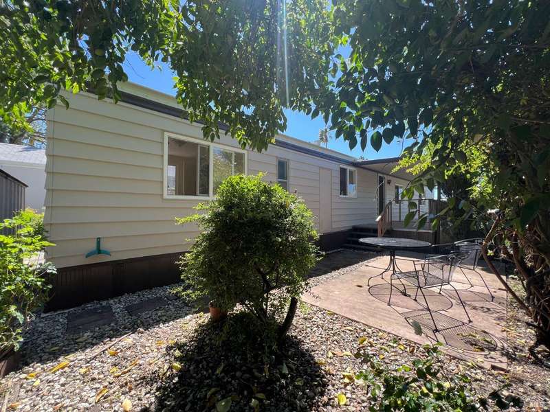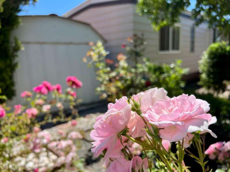 Located in the highly sought-after 7 Flags of Sonoma senior park, this turnkey 2-bedroom, 2-bath singlewide home offers 792 sq ft of comfortable living space. Enjoy a well-designed layout with bedrooms and bathrooms positioned on opposite ends for added privacy. Step onto the spacious freshly rebuilt front porch, perfect for relaxing or entertaining. Additional highlights include: Attached carport, Dual-paned windows, Brand-new flooring throughout, New appliances, including refrigerator, dishwasher, and washer/dryer, Bright and airy interior, Large storage shed, and large back yard. There is a beautiful rose garden in the back yard and a gate leading to the park's walking path. This home is move-in ready. Don't miss the opportunity to live in one of Sonoma's most desirable 55+ communities with access to park amenities and a vibrant neighborhood atmosphere.