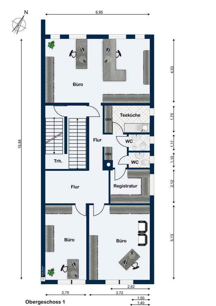 Are you looking for an upscale, approx. 172 m² maisonette apartment in a direct prime downtown location in Schwäbisch Gmünd and at the same time would you like to become the owner of a townhouse with approx. 260 m² of store, warehouse and office space for your own use or for rent? We are presenting this residential and commercial building, built in 1894, which was extensively renovated and modernized in 1995. The beautiful, reconstructed facade facing the pedestrian zone is a listed building and the interior has been tastefully furnished. The entire first floor with its large, high shop windows and representative entrance area is equipped with burglar-proof glazing of resistance class EH3, which corresponds to the highest class against ejection or break-through and will guarantee the store tenants a great sense of security. The bright store has an open sales area of approx. 69 m² on the first floor and offers an inviting ambience due to its high ceiling. The social rooms and storage areas of the store are located in the basement on approx. 86 m². There is also the possibility to connect a kitchen. The 1st floor currently consists of an open office with a reception area and two workstations, a waiting area in the hallway in front of two additional offices, a tea kitchen of the bulthaup brand, a separate ladies' and men's rooms' WC, as well as a server room and a registry. You could also convert this approx. 87 m² floor into a completely self-contained residential unit with little effort. Via a separate staircase you now reach the upscale maisonette apartment on the 2nd floor. It captivates on this level with approx. 91 m² by a bright living and dining area as well as a high-quality, open fitted kitchen (without electrical appliances) of the brand bulthaup, which is already included in the purchase price! Directly next to it is a pantry for storage of supplies. Through the hallway you pass a reading corner to the guest room or office, the utility room and the toilet. On the second level of the maisonette, two large rooms, a dressing room and a storage room are available to you in the attic on approx. 81 m². The daylight bathroom with two sinks, walk-in shower and a bathtub, directly adjoins the toilet, which is also equipped with a urinal and a bidet. In the hallway you can reach the converted attic via a pull-out staircase in the skylight, which extends over the entire house and offers additional storage space. Behind the house is still a garden, which is currently overgrown and could be reactivated to enjoy the special feature of enjoying a glass of wine in the evening in the middle of downtown Schwäbisch Gmünd. Directly in front of the house facing the pedestrian zone there are two jibs for advertising signs approved by the city council as well as a flagpole, which gives the commercial tenants both in the store and on the 1st floor the best opportunity for effective outdoor advertising. With this extraordinary residential and commercial building, which was completely renovated and modernized in 1995, in a direct prime location in the center of Schwäbisch Gmünd, you have the opportunity to acquire a capital investment with a total living and usable area of approx. 432 m² at a price per square meter of only 3,458 euros. The previous owner also owns four underground parking spaces not far from the property, of which you can optionally purchase one or more - an absolute rarity in the middle of the city center! * Please note that we can only process inquiries with complete contact information (first name, last name, current address, telephone number and e-mail address)! Thank you very much! *