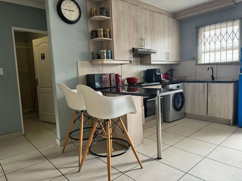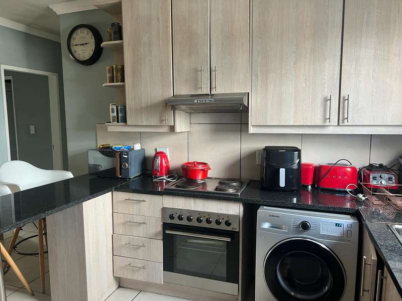 This neat first floor unit features 2 bedrooms complete with built-in cupboards and 2 bathrooms – main bedroom with en-suite (shower/toilet) and 2nd bath/toilet). There is an open plan design lounge flowing from the kitchen with ample built in cupboards. Enjoy fresh air on the spacious balcony, ideal for relaxation. This unit comes with 1 parking space and plenty visitors parking. Well secured with remote control gate access. Perfectly situated near main transport routes, renowned schools, shopping centres, and various amenities. This is the perfect unit for the couple or investor....Contact me to set up a viewing appointment!