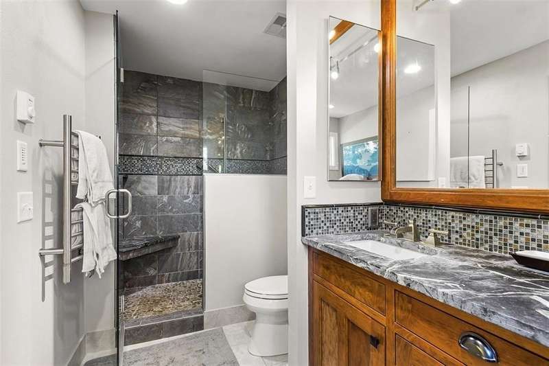 This must see remodeled home on a corner lot in the prestigious Christie Heights neighborhood is steps from the bus stop for skiing, town and the electric bike station. It has amazing light and a fantastic setting. The new deck and flower beds with mature aspens trees and views of the ski area, Red Mountain and Baldy encompass the mountain feel this house offers. You open the front door to a cozy living room with a gas stove that leads to the library/TV room with vaulted ceilings, floor to ceiling windows, book shelves and a wood burning stove to sit by while you take in the view as the snow falls outside. Enjoy the cedar sided spa area and den after a long day enjoying all the mountain activities that are right out side the door. It has a steam room, sauna, shower and is stubbed for a hot tub. The home was remodeled in 2008. The design work was done by Suzanne Allen-Guerra and the construction was completed by Ivan Stanley. The spacious primary suite was updated in 2015 with a stand alone tub, new shower, cabinets fixtures and soap stone counter tops. The secondary bedrooms are welcoming for all your guest with a bunk room, two bedrooms and a bathroom. The exterior of the home was painted in 2024. It is walking distance to town yet close to the Nordic trails for skiing in the winter and hiking in the summer.