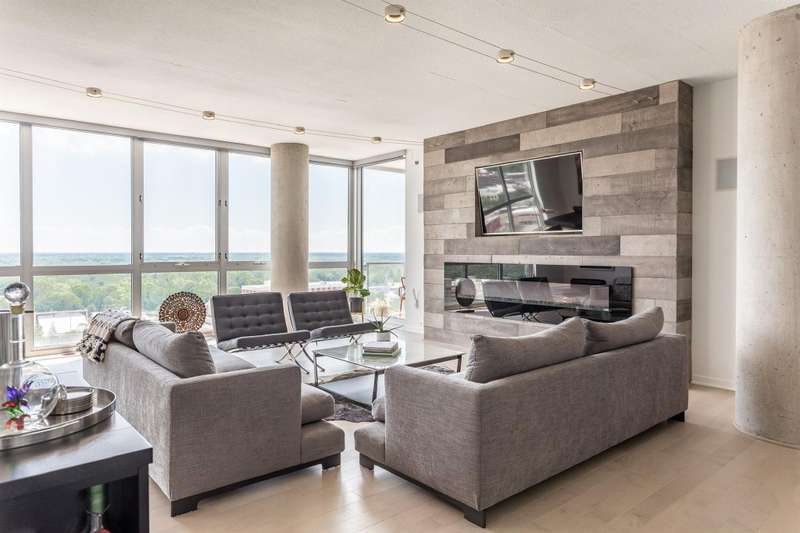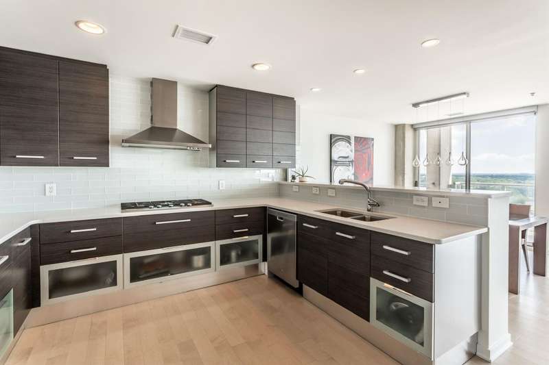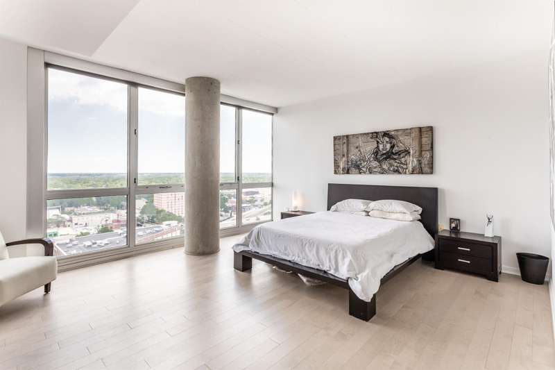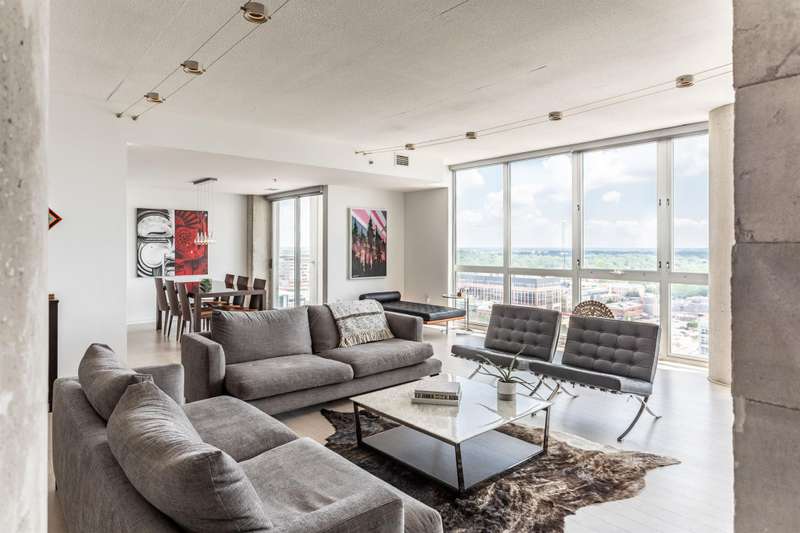 Experience the epitome of luxury at The Fifth! This updated, Penthouse embodies sophistication with its expansive open layout and private balconies, providing an unparalleled vantage point for breathtaking sunrises and stunning panoramic views of the metro area including the iconic Detroit Skyline. The walls of windows infuse the space with natural light, beautifully highlighting the elegant hardwood floors and lofty ceilings throughout. Designed for the culinary enthusiast, the chef's kitchen is a masterpiece, featuring custom cabinetry, quartz countertops, premium stainless steel appliances, and a convenient bar seating area. The spacious primary suite includes a generous walk-in closet and an opulent bathroom, complete with a jetted tub, steam shower, and a double sink designer floating vanity. The second bedroom suite offers a private bath, while the third bedroom provides access to the second balcony, creating a serene retreat. Embrace the pinnacle of convenience with the Crestron home automation system, managing your blinds, lighting, temperature, and music with ease. Secure, heated garage parking for two vehicles is included, and residents benefit from doorman, on-site fitness center, and an array of shops and restaurants just steps away. Live the lifestyle you deserve at The Fifth.
