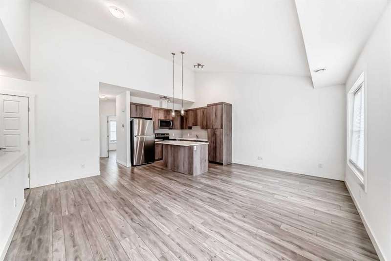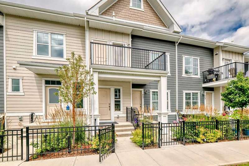 Here’s a good one for you... A bright, single-level townhome in The Retreat at Riverstone — 2 bedrooms, 1 bathroom, and your own attached garage. Inside, vaulted ceilings and big windows make the space feel open and airy, and the kitchen’s set up for both cooking and hosting with quartz counters, stainless steel appliances, a sleek glass cooktop, and a big island that’s perfect for casual meals or catching up with friends. The living and dining areas flow right out to your east-facing balcony, where you can soak up the morning sun over the courtyard. It’s got all the extras — gas line for the BBQ, a water tap for your plants, and rough-in for AC if you want to keep things extra cool in summer. The primary bedroom comes with a large walk-in closet, and the second bedroom works great for guests, an office, or hobbies. The full bathroom has a soaker tub, and the laundry’s tucked neatly inside. Fresh paint throughout plus durable vinyl plank and ceramic tile flooring mean it’s move-in ready. Downstairs, the single attached garage is fully finished and ready for whatever you need — parking, storage, or a workshop space. Living here also means you get all the perks of the Cranston Residents Association — gym, pickleball, tennis, basketball, skating in winter, and more. And when you’re ready to get outside, you’ve got the Bow River pathways, parks, and playgrounds right there. Seton’s shopping, dining, and the South Health Campus are only a few minutes away, and it’s an easy hop onto Deerfoot or Stoney. Pet-friendly, reasonable condo fees, and a location that nails that balance between nature and convenience — this one’s a keeper.