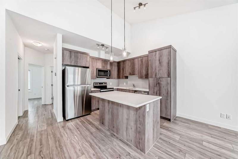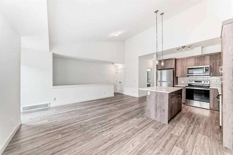 Here’s a good one for you... A bright, single-level townhome in The Retreat at Riverstone — 2 bedrooms, 1 bathroom, and your own attached garage. Inside, vaulted ceilings and big windows make the space feel open and airy, and the kitchen’s set up for both cooking and hosting with quartz counters, stainless steel appliances, a sleek glass cooktop, and a big island that’s perfect for casual meals or catching up with friends. The living and dining areas flow right out to your east-facing balcony, where you can soak up the morning sun over the courtyard. It’s got all the extras — gas line for the BBQ, a water tap for your plants, and rough-in for AC if you want to keep things extra cool in summer. The primary bedroom comes with a large walk-in closet, and the second bedroom works great for guests, an office, or hobbies. The full bathroom has a soaker tub, and the laundry’s tucked neatly inside. Fresh paint throughout plus durable vinyl plank and ceramic tile flooring mean it’s move-in ready. Downstairs, the single attached garage is fully finished and ready for whatever you need — parking, storage, or a workshop space. Living here also means you get all the perks of the Cranston Residents Association — gym, pickleball, tennis, basketball, skating in winter, and more. And when you’re ready to get outside, you’ve got the Bow River pathways, parks, and playgrounds right there. Seton’s shopping, dining, and the South Health Campus are only a few minutes away, and it’s an easy hop onto Deerfoot or Stoney. Pet-friendly, reasonable condo fees, and a location that nails that balance between nature and convenience — this one’s a keeper.