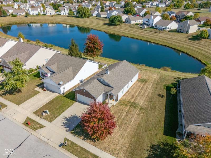 Embrace growth and expansion in Whitestown with this ideally situated home in Walker Farms. This expansive neighborhood boasts many amenities--pool, playgrounds, basketball court, scenic walking trails, bike paths, a park, & more--and is perfectly positioned to enjoy all the development in the area. This pond-front lot offers a peaceful retreat, yet keeps you connected to all the action. Inside, the open-concept layout effortlessly connects the living room, kitchen, and dining area. Abundant light fills the spaces, making it light and airy. The galley-style kitchen is rounded out by a dining area that leads to the back deck. Enjoy outdoor dining by the water with plenty of room to entertain guests or fill it with family. Don't miss this home with the park, library, and interstate (a quick drive to Indy) all within easy reach.