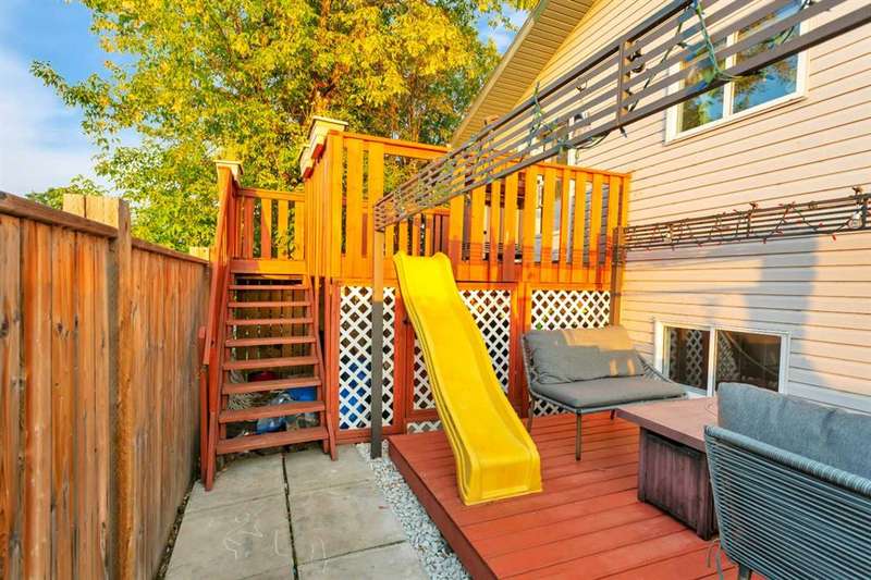 This 5-bedroom, 2-bathroom family home is full of thoughtful upgrades and move-in-ready features — the perfect space for your growing household! The main level offers an inviting open concept layout, ideal for both entertaining and daily living. A spacious living room flows seamlessly into the dining area and updated kitchen, complete with granite countertops, newer appliances (2022), and a newly ducted range hood. Freshly painted walls, new blinds, and all-new flooring (no carpet!) give the space a clean, modern feel. Three generously sized bedrooms and a fully renovated 4-piece bathroom (2023) round out the upper floor. Downstairs, the lower level impresses with two additional bedrooms and a large family room anchored by a cozy fireplace — WETT-inspected and cleaned annually for peace of mind. The original furnace is in excellent working condition, and the hot water tank (2015) and fully updated electrical system reflect the care that’s gone into maintaining this home. Step outside to a fully fenced and landscaped backyard with a west-facing deck — perfect for enjoying sunny evenings. The sturdy 6x6 post fencing adds both privacy and durability. Located in a highly convenient neighborhood, this home is just a short walk from schools, parks, shopping, dining, and more. With great bones, modern updates, and space to grow, this home is ready to welcome its next family!