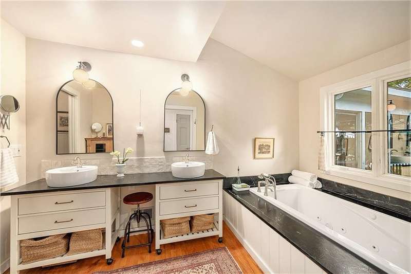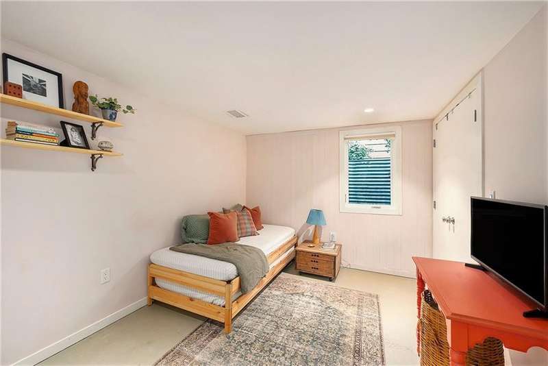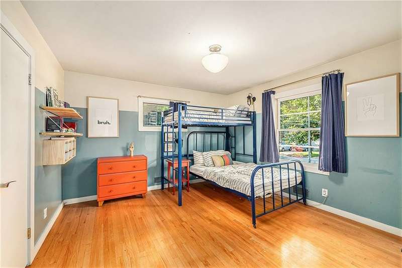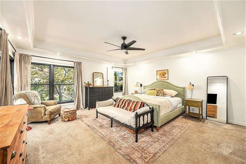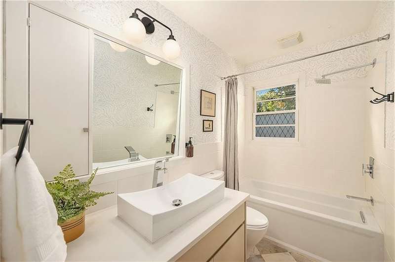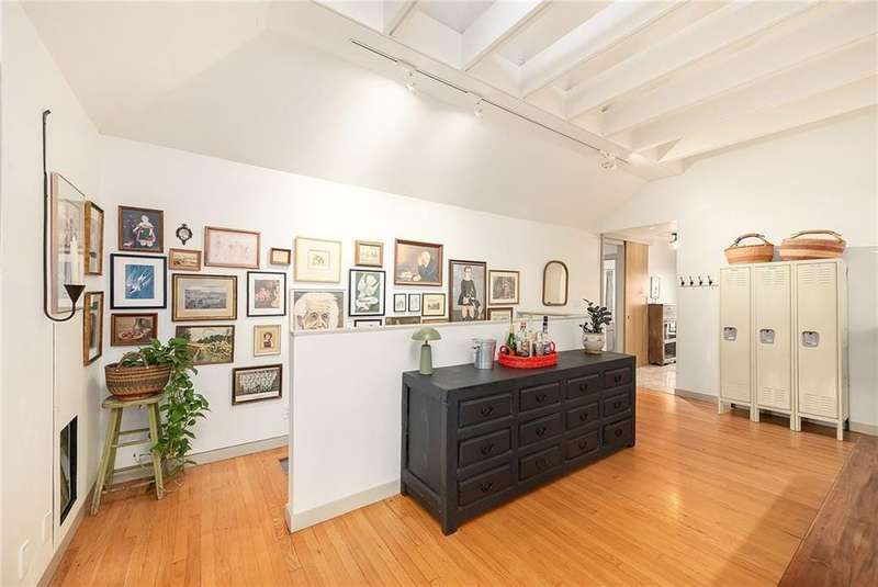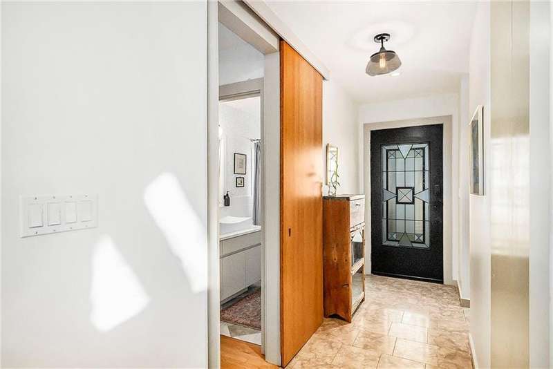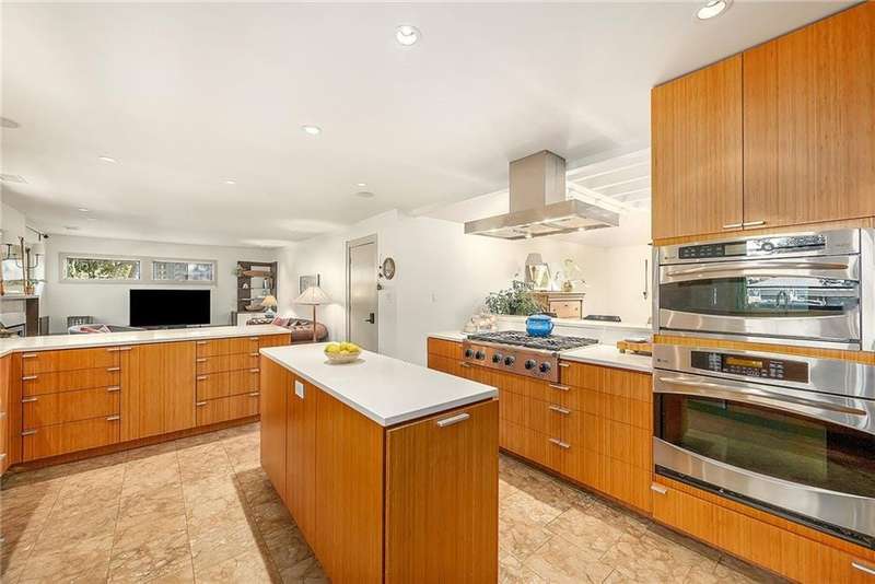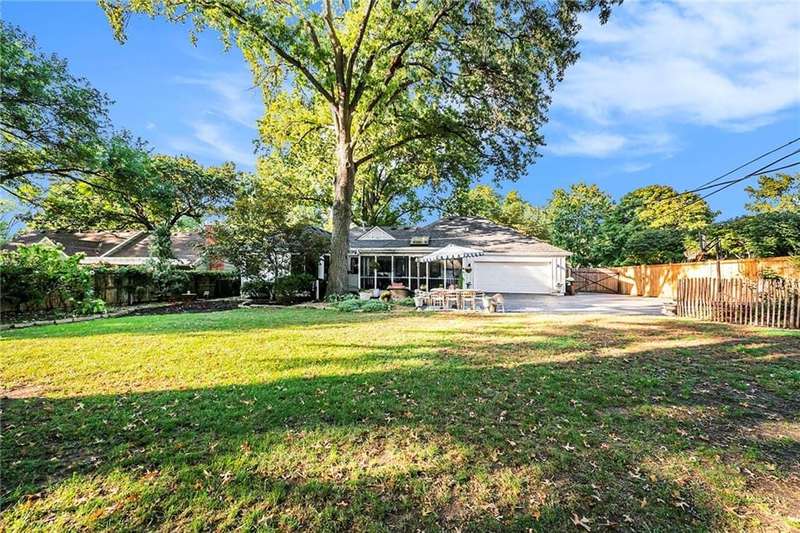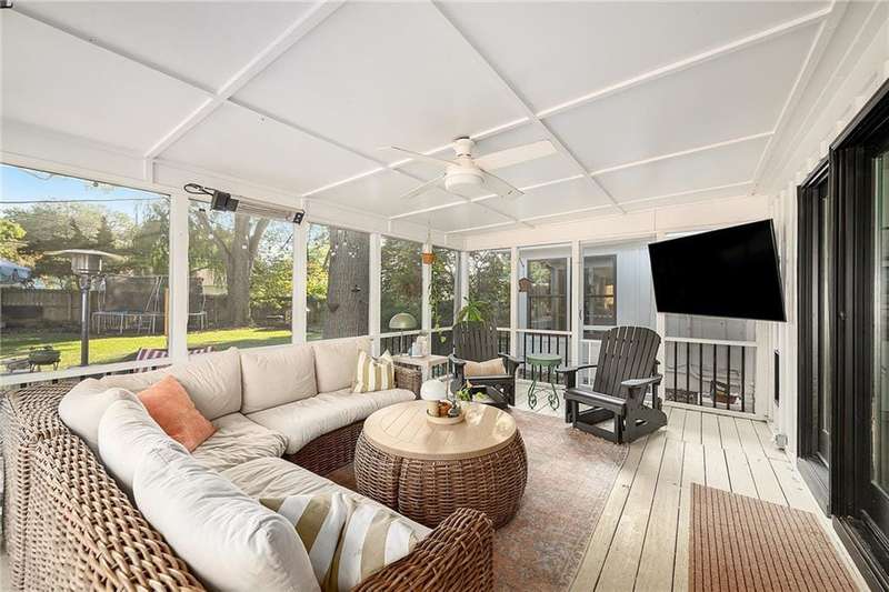 This spacious 5-bedroom, 4-bath modern contemporary, designed by architect Bill Poole, combines striking style with livable comfort in the very heart of Prairie Village. The versatile layout offers multiple living spaces on both the main level and in the professionally finished lower level. The open floor plan showcases vaulted ceilings, hardwood floors, dramatic statement lighting, and a soaring art wall that fills the dining space with natural light. Cozy living space with a fireplace seamlessly works into the functional floorplan. A gourmet kitchen with custom bamboo cabinets and high-end appliances is perfectly suited for entertaining. The expansive 17x20 primary suite offers a spa-like remodeled bath with a double sink vanity, walk-in shower, and separate jetted tub, while a second main-level mini-suite provides flexibility and a second ensuite bath on the main level. Don't miss the custom closet details!Relax on the spacious screened-in porch overlooking the special backyard, it is truly one of the showstoppers on this beautifully unique home. The finished lower level adds even more living space with a versatile bonus room, full bath, and two additional bedrooms. Fresh, airy, and artfully designed, this is a rare modern gem. Great Prairie Village location near restaurants, parks, great schools and shopping. Move in and enjoy!