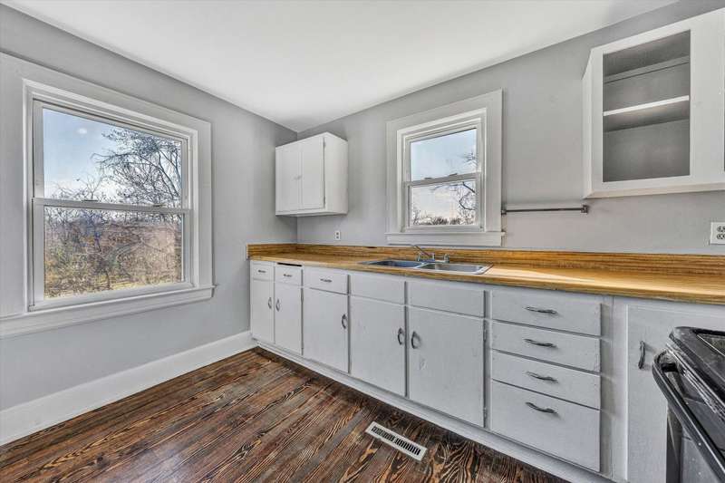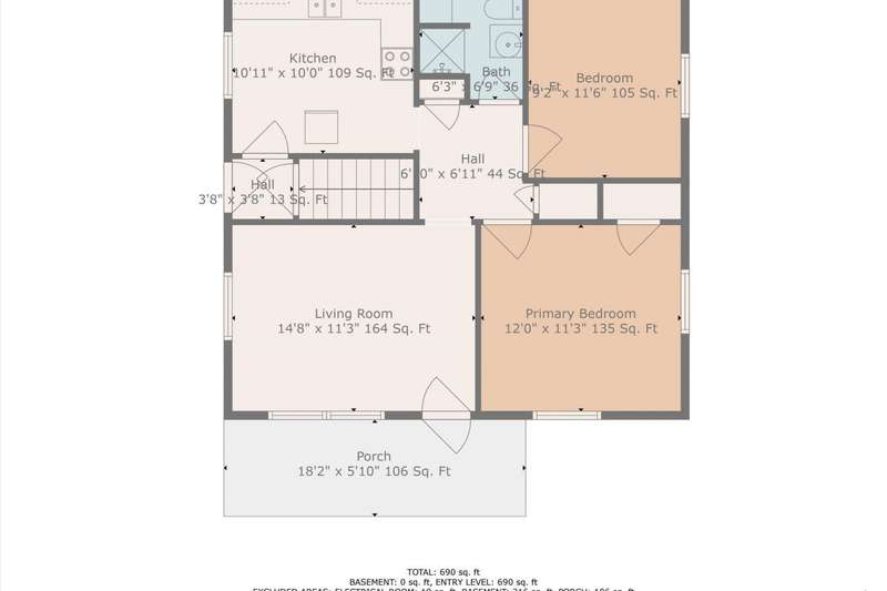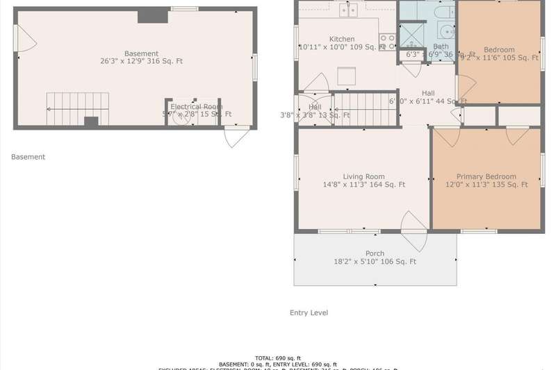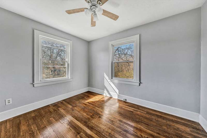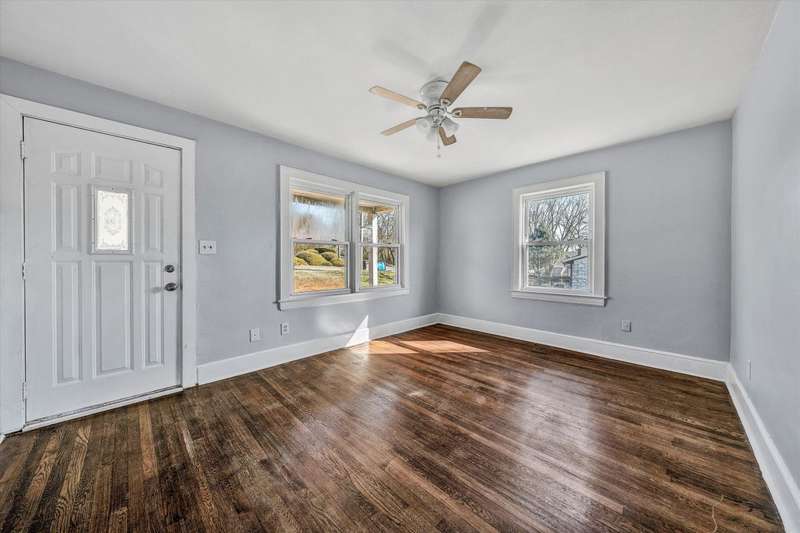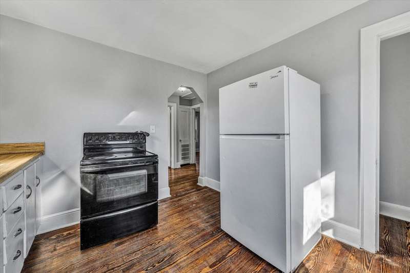 Covered porch, Deck for entertaining, Storage Shed, spacious living room with ceiling fan, Eat in kitchen with Range and Refrigerator, 2 bedrooms, full bath, partial basement. Off Street Parking. Gas Forced Air, Vinyl Plank Flooring