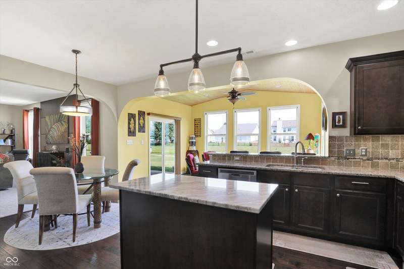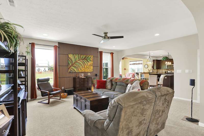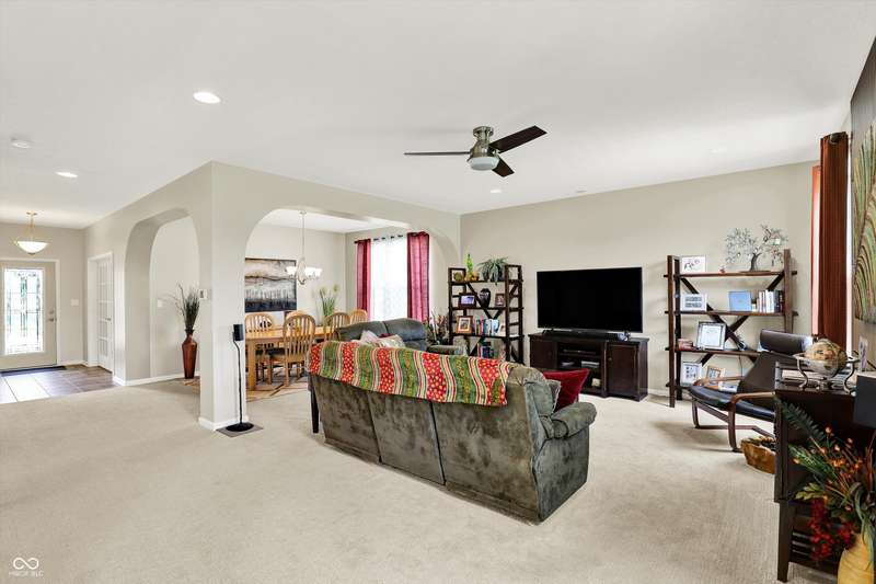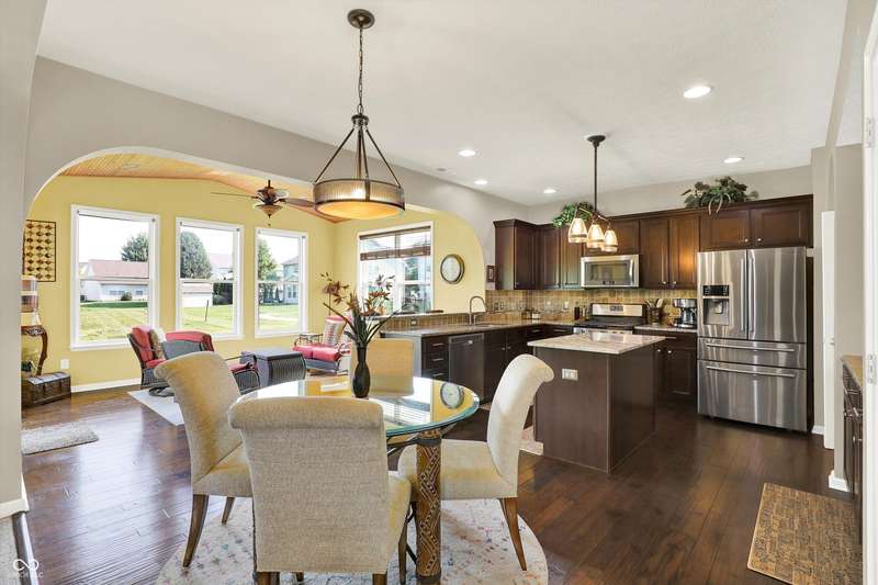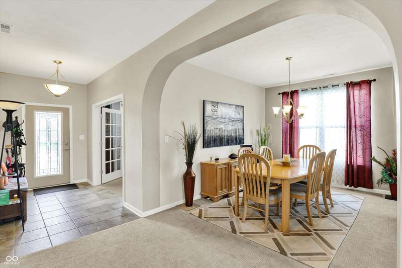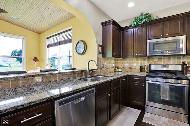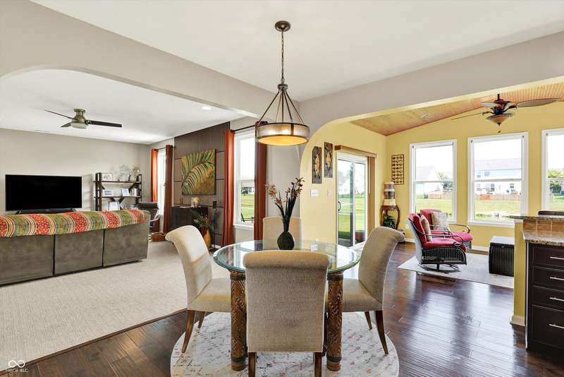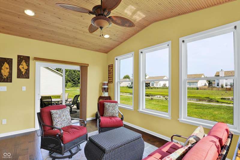 From the moment you enter, this thoughtfully updated home invites you in with its open, flowing floorplan and beautiful arched details that add timeless character inside and out. Every space feels connected and intentional, designed for both comfort and style. The spacious great room effortlessly transitions into the dining area and kitchen, creating a warm and welcoming hub for daily living and entertaining. Granite countertops, updated fixtures, and modern conveniences blend seamlessly with the home's classic charm. Just beyond, the sunroom is a true gem-featuring a custom beadboard ceiling and large windows that frame tranquil views of the pond and surrounding trees. It's the perfect spot to enjoy peaceful mornings, cozy evenings, or casual gatherings, all while soaking in the beauty of the outdoors. Down the hall, you'll find three large bedrooms, including a primary suite with a custom closet system that keeps everything in its place. The additional bedrooms offer versatility for guests, work-from-home space, or hobbies-whatever fits your lifestyle. The home is full of smart, recent upgrades: new roof, HVAC, carpet, water softener, humidifier, garbage disposal, and even a sun tunnel that fills the hall bath with soft natural light. Step outside to an extended back patio, ideal for entertaining or simply unwinding in your private backyard escape. Energy-efficient construction and great insulation help keep heating and cooling costs low, while extra storage in the garage adds everyday practicality. All of this is tucked away in a peaceful setting, just minutes from shopping, dining, and everyday conveniences. This home isn't just beautiful-it's built for the way you want to live.