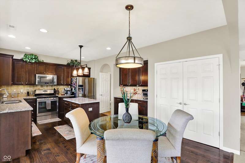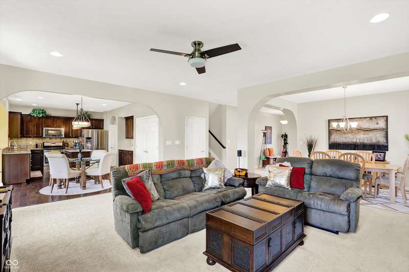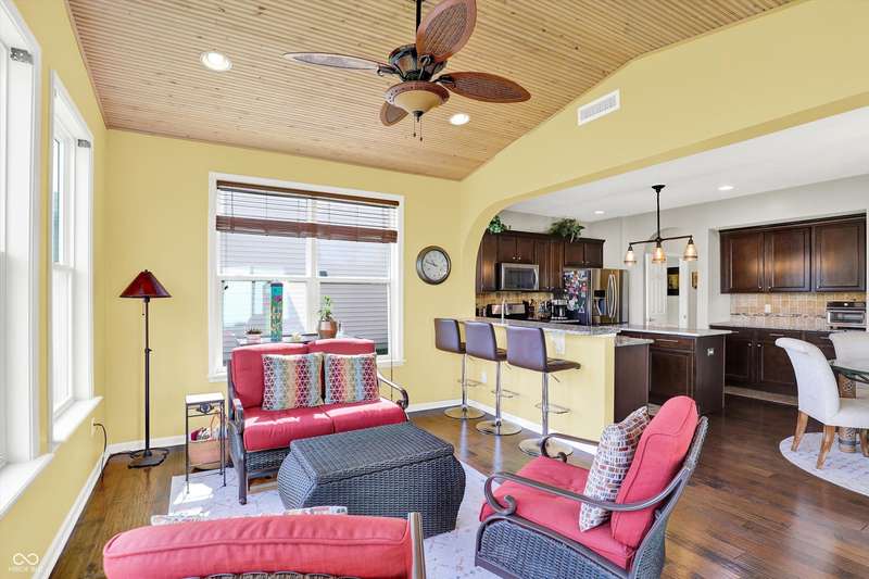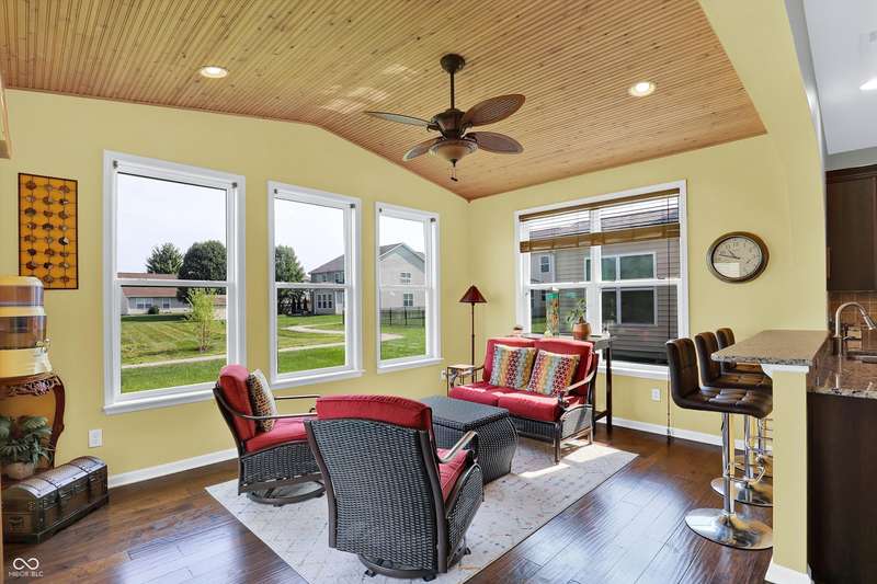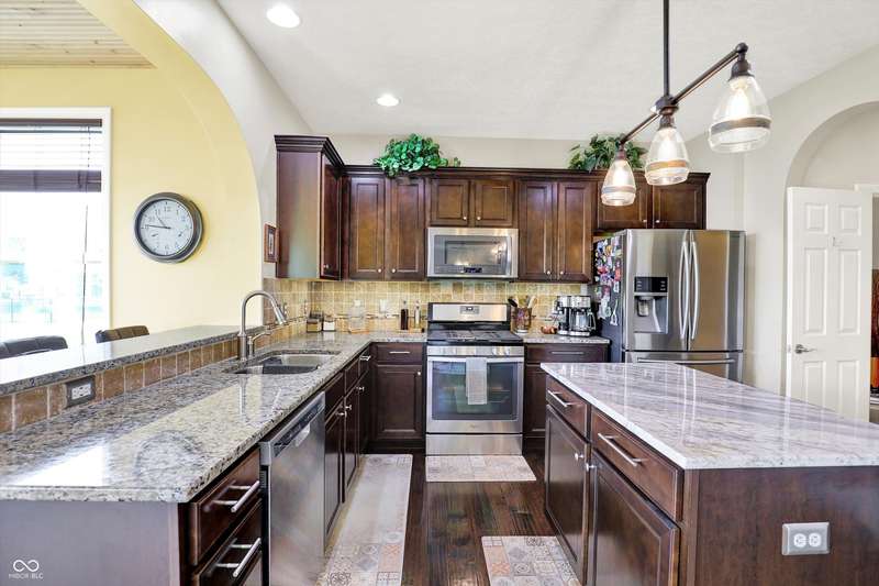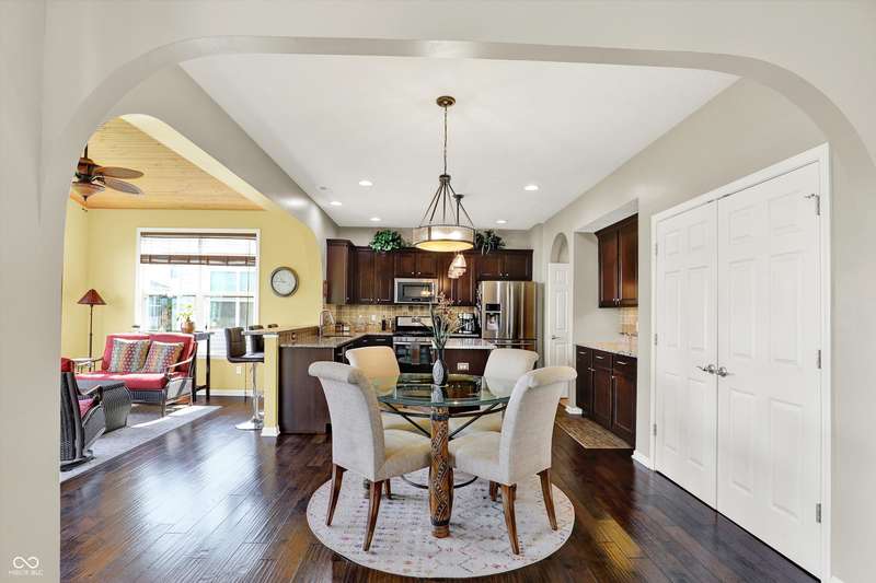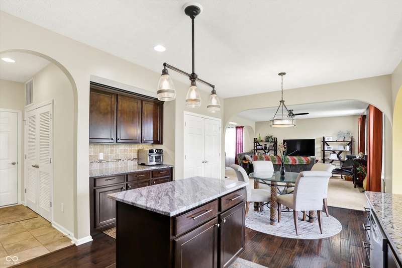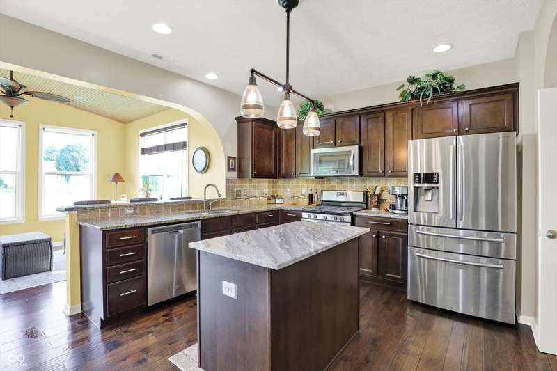 From the moment you enter, this thoughtfully updated home invites you in with its open, flowing floorplan and beautiful arched details that add timeless character inside and out. Every space feels connected and intentional, designed for both comfort and style. The spacious great room effortlessly transitions into the dining area and kitchen, creating a warm and welcoming hub for daily living and entertaining. Granite countertops, updated fixtures, and modern conveniences blend seamlessly with the home's classic charm. Just beyond, the sunroom is a true gem-featuring a custom beadboard ceiling and large windows that frame tranquil views of the pond and surrounding trees. It's the perfect spot to enjoy peaceful mornings, cozy evenings, or casual gatherings, all while soaking in the beauty of the outdoors. Down the hall, you'll find three large bedrooms, including a primary suite with a custom closet system that keeps everything in its place. The additional bedrooms offer versatility for guests, work-from-home space, or hobbies-whatever fits your lifestyle. The home is full of smart, recent upgrades: new roof, HVAC, carpet, water softener, humidifier, garbage disposal, and even a sun tunnel that fills the hall bath with soft natural light. Step outside to an extended back patio, ideal for entertaining or simply unwinding in your private backyard escape. Energy-efficient construction and great insulation help keep heating and cooling costs low, while extra storage in the garage adds everyday practicality. All of this is tucked away in a peaceful setting, just minutes from shopping, dining, and everyday conveniences. This home isn't just beautiful-it's built for the way you want to live.