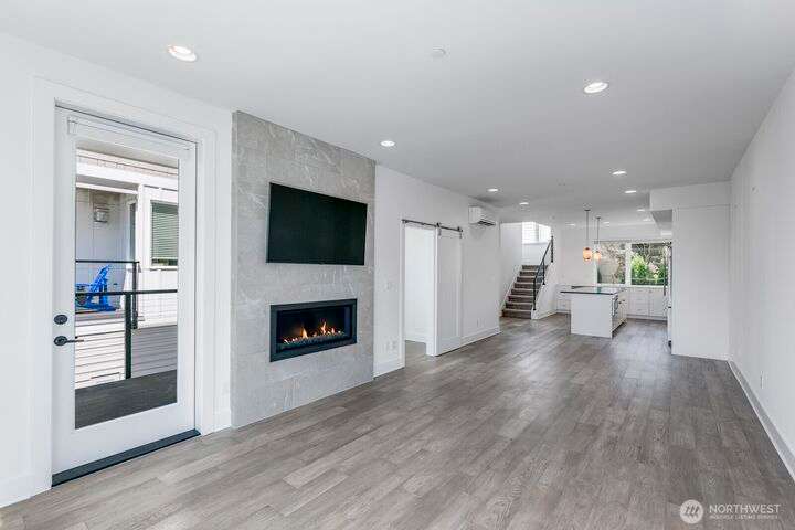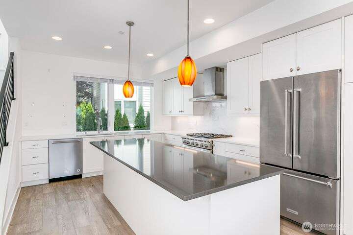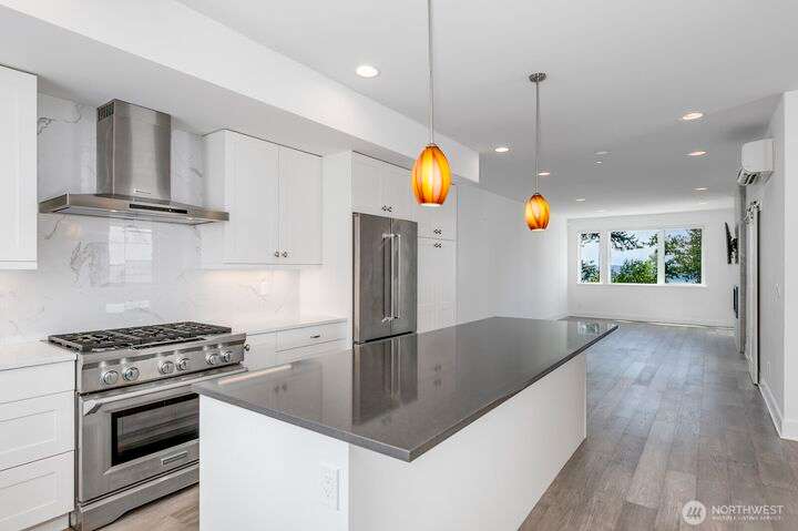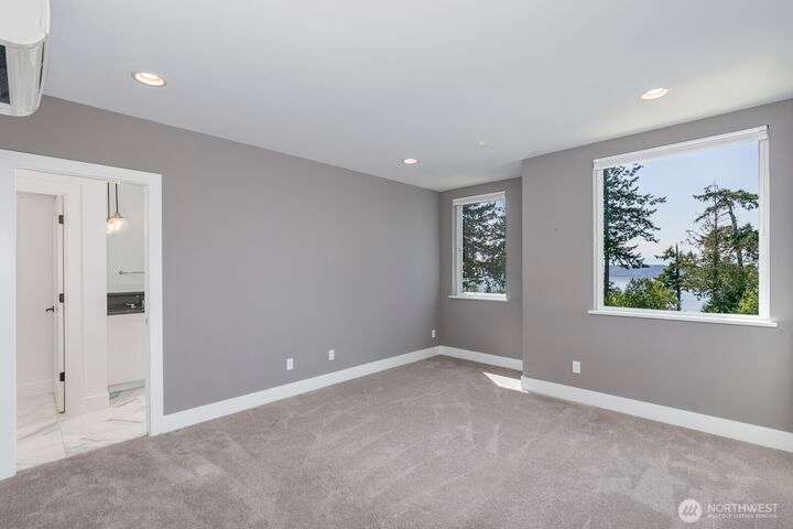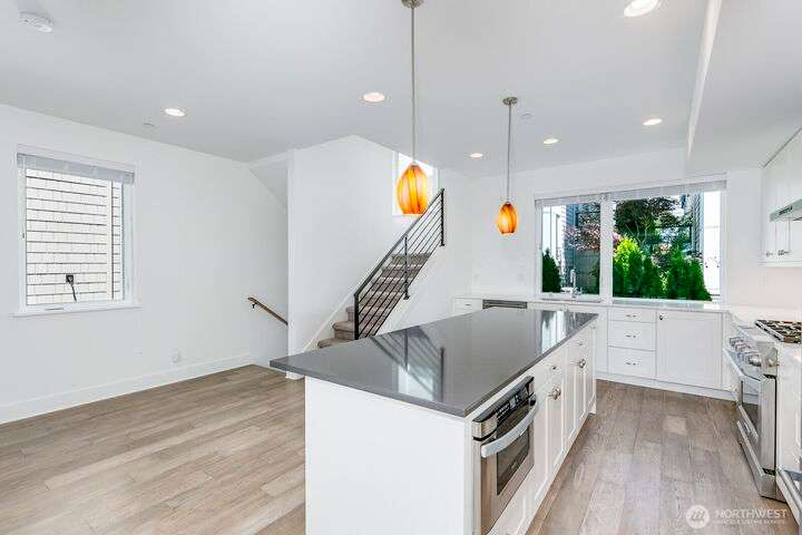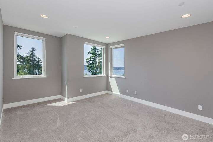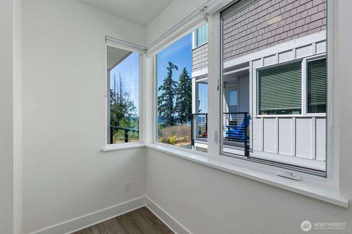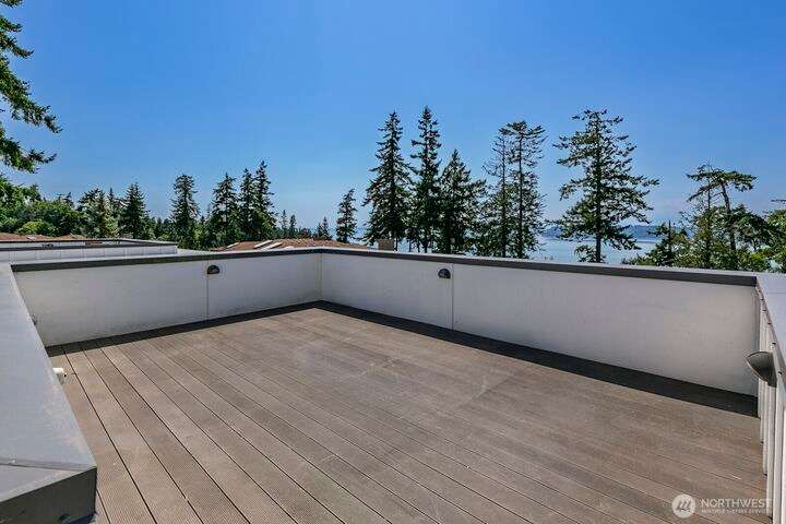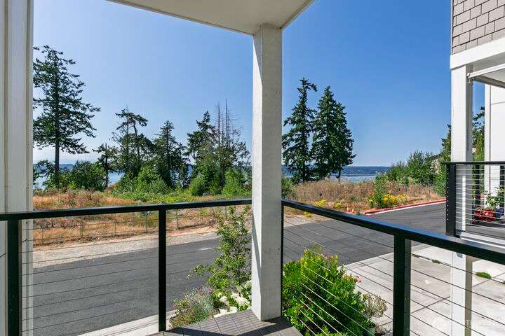 Modern townhome with sound & mountain views, located on a dead end street. Guest bedroom & full bath on the first floor, main level is open with living & dining areas office, view deck and large kitchen featuring a huge island, gas cooking, SS appliances - perfect for everyday or entertaining. Upper level has the 2nd bedroom, full bath, utilty room and the primary suite w/ walk in closet & walk in shower. The roof top deck has awesome views and is plumbed w/ water & gas. Enjoy gorgeous sunsets from this special space. The rent cap is 4 of the 14 units & only 2 of them are currently rented, rentals are a minimum of 180 days. Easy access to freeways, shopping and medical.