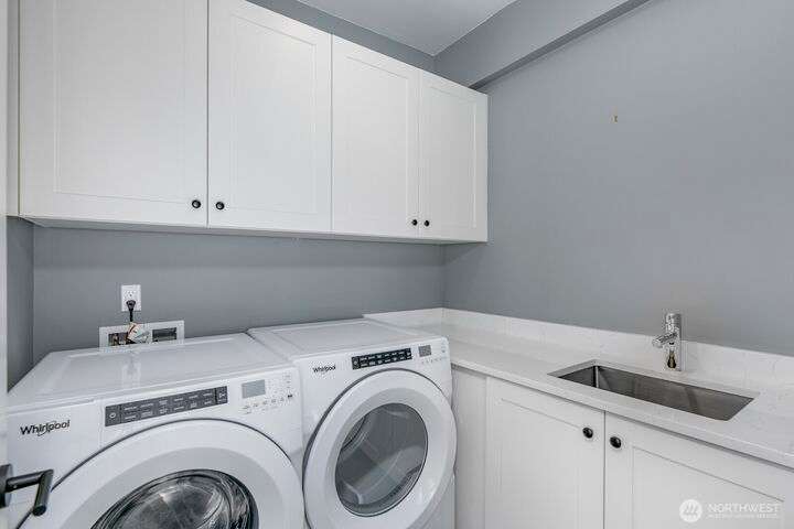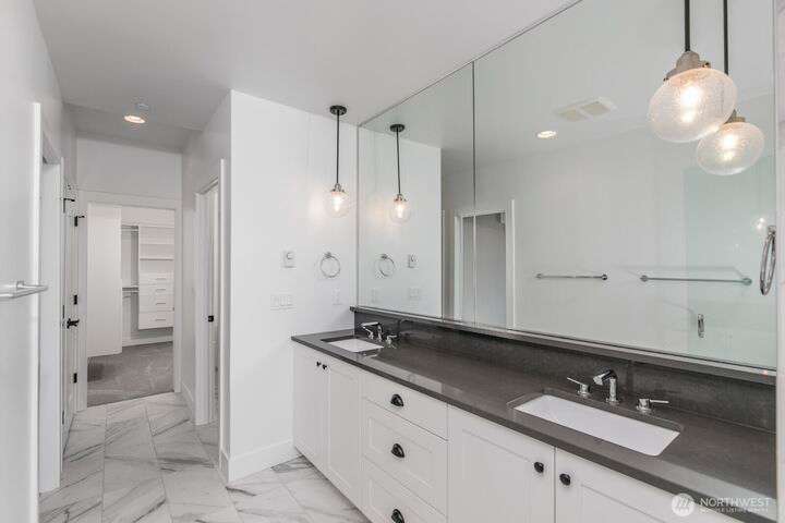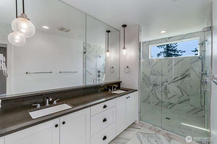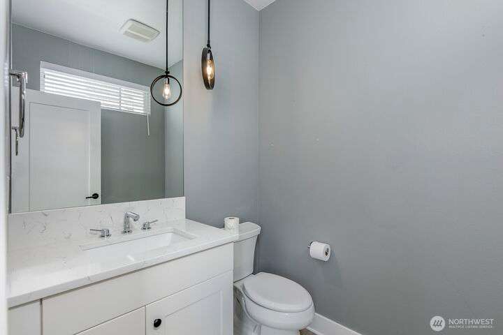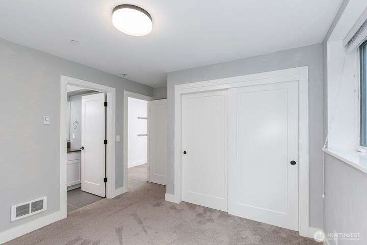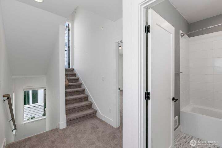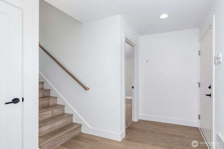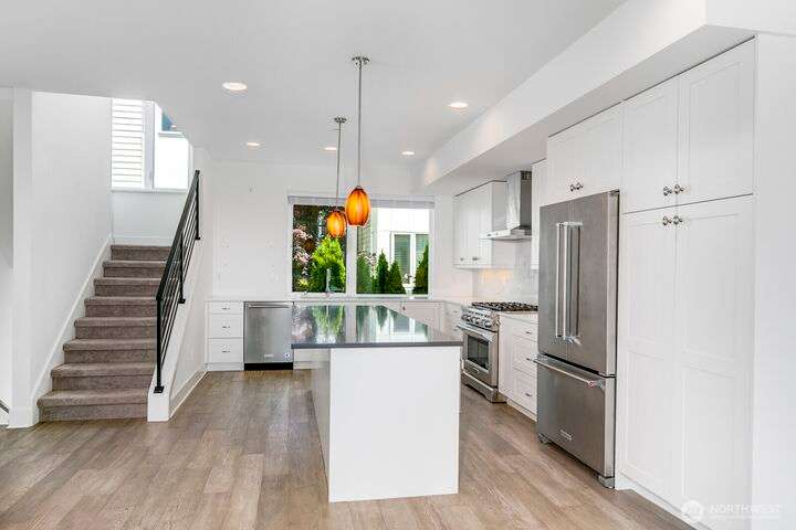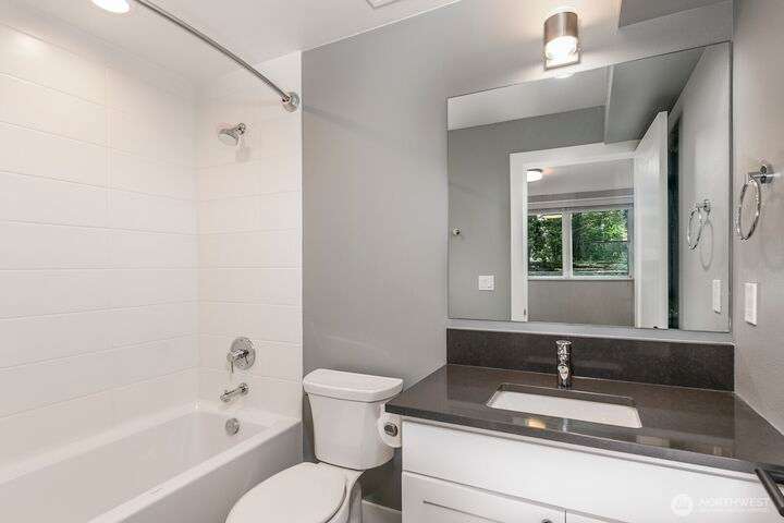 Modern townhome with sound & mountain views, located on a dead end street. Guest bedroom & full bath on the first floor, main level is open with living & dining areas office, view deck and large kitchen featuring a huge island, gas cooking, SS appliances - perfect for everyday or entertaining. Upper level has the 2nd bedroom, full bath, utilty room and the primary suite w/ walk in closet & walk in shower. The roof top deck has awesome views and is plumbed w/ water & gas. Enjoy gorgeous sunsets from this special space. The rent cap is 4 of the 14 units & only 2 of them are currently rented, rentals are a minimum of 180 days. Easy access to freeways, shopping and medical.