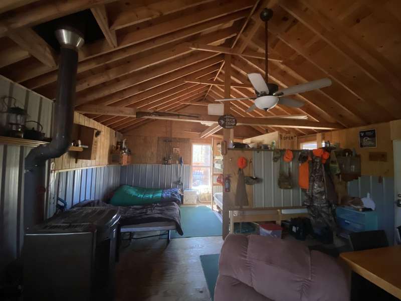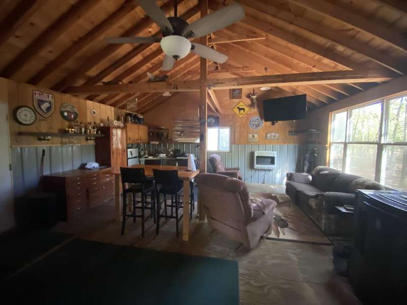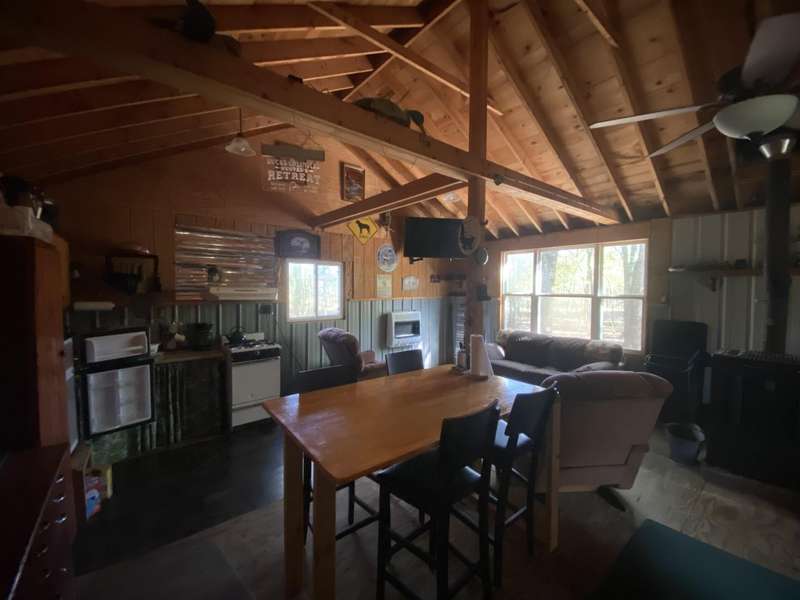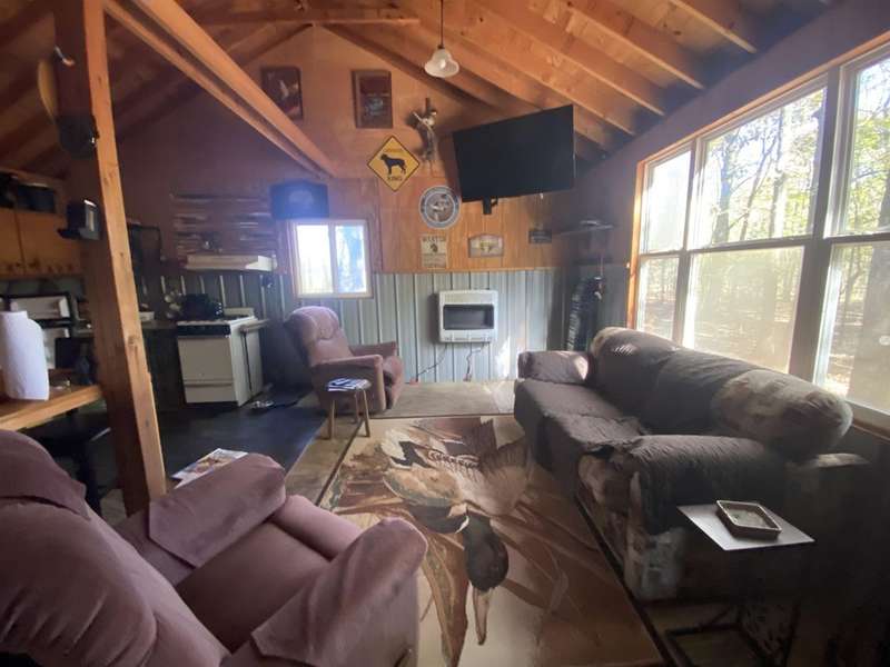 66.95 acres of hunting land with a cabin. Easement front and back. The property offers 3 deer blinds and one ladder stand. There is also a duck blind on one of the two ponds. One of the ponds is spring fed all year long and stocked with bass, crappie and bluegill. The cabin on the property has four built-in bunk beds, coal stove and a full bath. The current owner brings generator when hunting, water storage tank for water and tankless water heater. The cabin is wired so you can watch movies and have lighting from generator hookups.