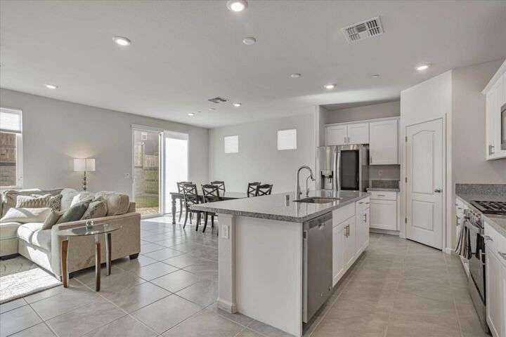 Just 2 years new, this meticulously maintained single story home is ideal for generational living. The primary suite located on one wing of the home and an additional 2 bedrooms and 1 full bath located in the other wing, creates a lot of privacy. Enjoy the open, spacious floor plan- great for family gatherings . Spacious Living area flows to kitchen with oversized island, white cabinetries, gas stove and a large pantry. Tile flooring flows through the main living areas with carpet in every bedroom gives a cozy feel. Separate laundry room with additional storage, finished 2 car garage, and solar. Great location for easy access to groceries, restaurants, coffee, or a quick getaway to Monterey & Carmel. Come see this home, you will be impressed.