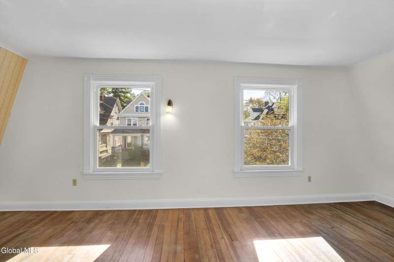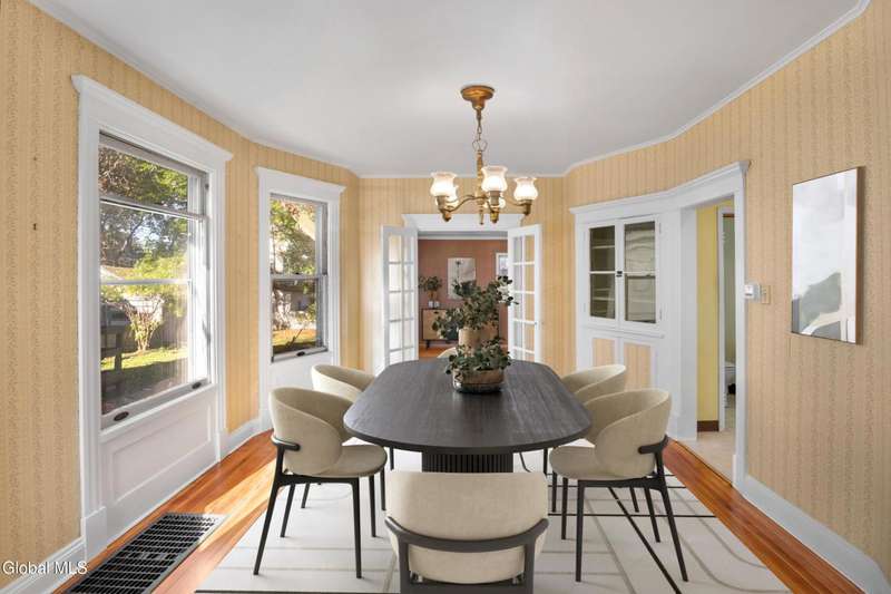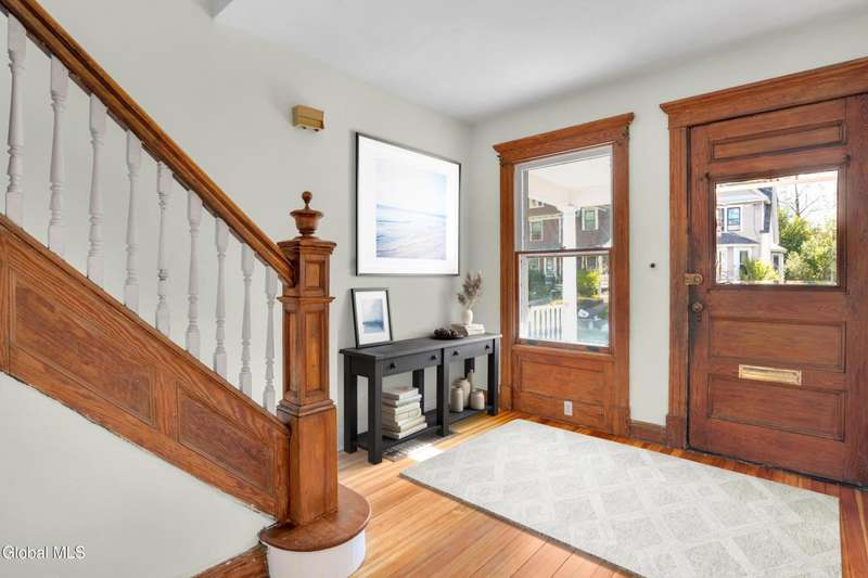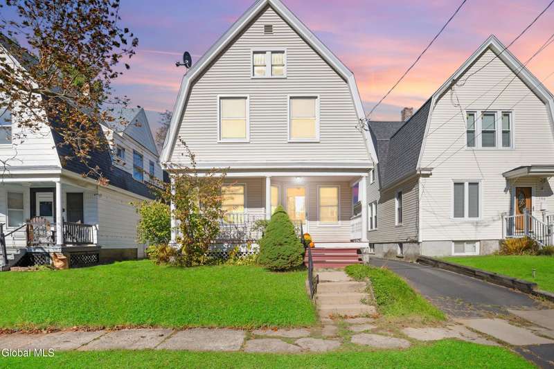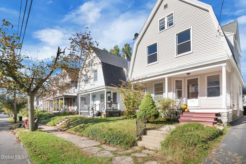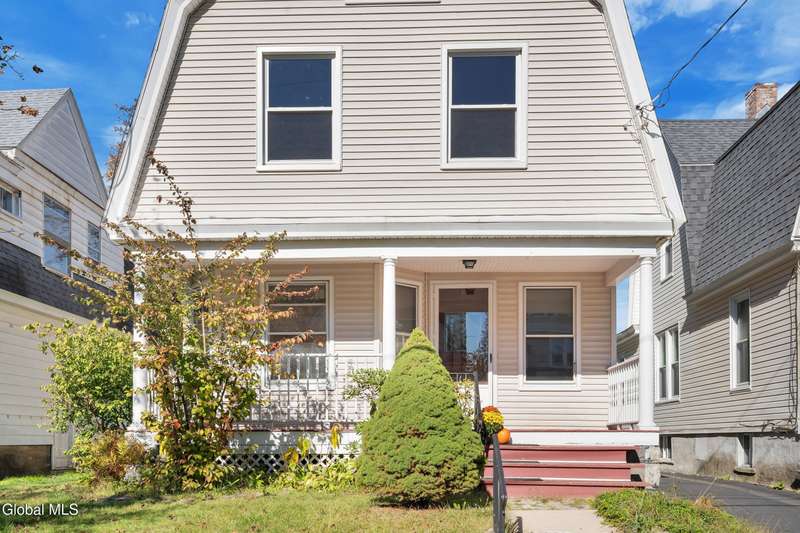 Seller is offering a $5,000 credit at closing toward home improvements. Charming, Large Colonial with Flexible Space in Schenectady. Welcome to this inviting 4-bedroom, 1.5-bath Colonial offering 1,837 sq ft of versatile living space. The front foyer welcomes you into a sunny living room with charming pocket doors that open to the formal dining room. Beyond the dining area sits a large bonus room-ideal for a fifth bedroom, family room, home office, or whatever your lifestyle needs. Freshly refinished hardwood floors flow throughout the first level which includes a convenient half bath. New paint throughout the house! Head upstairs to find four roomy bedrooms and a full bathroom. The full walk-up attic and large basement offer plenty of storage plus room to expand. Step outside to the welcoming front sitting porch or BBQ on the back deck (durable Trex decking) overlooking the backyard. The property includes a one-car garage (as-is), and recent updates include the back roof over the study (2014), a brand-new garage roof (2025) new back deck (2021) and a new high-efficiency furnace (2017). A large, comfortable, well-maintained Colonial home with smart layout and practical updates. Schedule your showing today!
