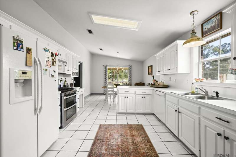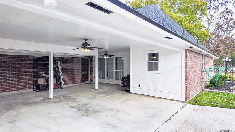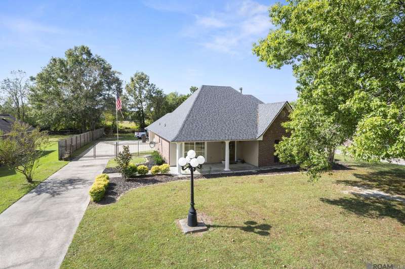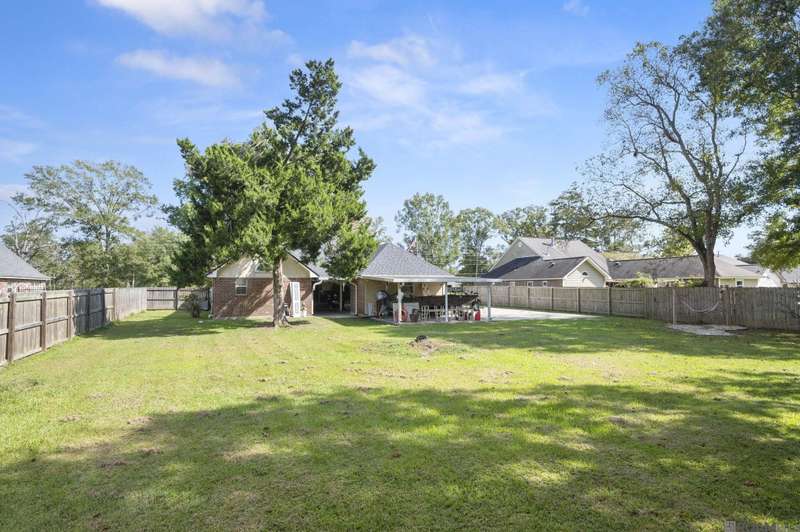 Looking for a home that checks every box? This one delivers! Tucked off Dunn Road on nearly half an acre, this turn-key property combines quiet privacy, modern upgrades, and true Southern charm — all without the worry of flooding or flood insurance. EXTERIOR & LOT: New roof (2023)! Wrought-iron privacy gate with remote access. Two-car carport plus extended concrete parking pad. Fully fenced 0.46-acre lot — perfect for pets, kids, or entertaining. Extended covered patio with additional concrete slab and landscaped yard featuring mature shade trees. INTERIOR HIGHLIGHTS: Entire home freshly painted in modern neutral tones. All-new flooring throughout (no carpet). Spacious living room with crown molding, large windows, and a cozy gas fireplace. Open-concept kitchen and breakfast area with gas range, large breakfast bar, ample cabinet storage, and refrigerator to remain at Act of Sale. Separate laundry room with extra storage. PRIMARY SUITE: Oversized bedroom easily fits a California King. Two walk-in closets. Dual vanities, jetted soaking tub, and separate walk-in shower. High ceilings with ceiling fan for added comfort. BONUS FEATURES: Did NOT flood and does NOT require flood insurance. Energy-efficient gas fireplace and stove. Convenient location just minutes from Lockhart Rd, Range Ave, and I-12 — offering easy access to schools, shopping, and restaurants. This Denham Springs gem offers the perfect balance of space, comfort, and peace of mind. Schedule your private showing today — homes this well cared for don’t last long!