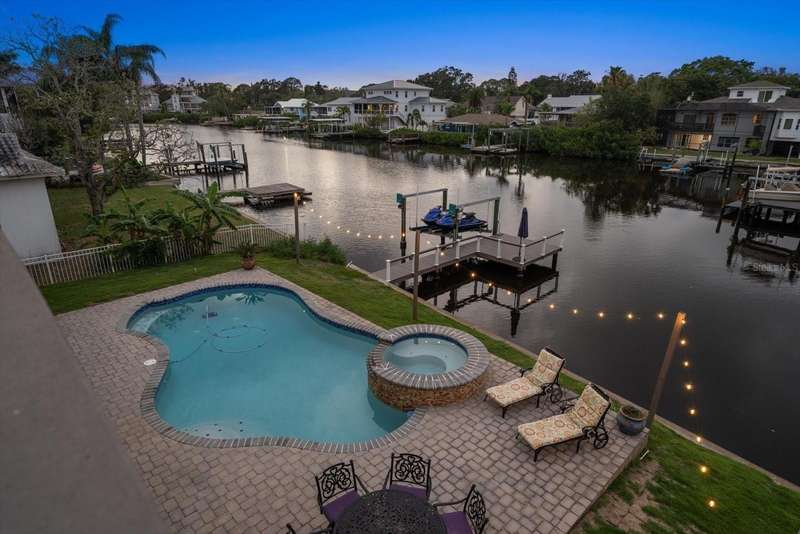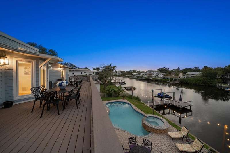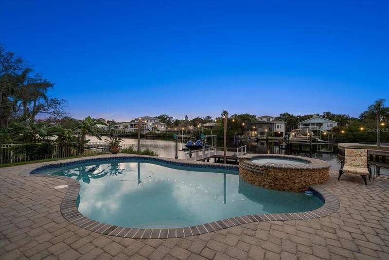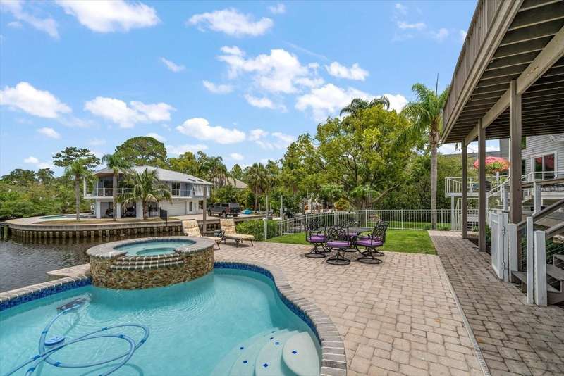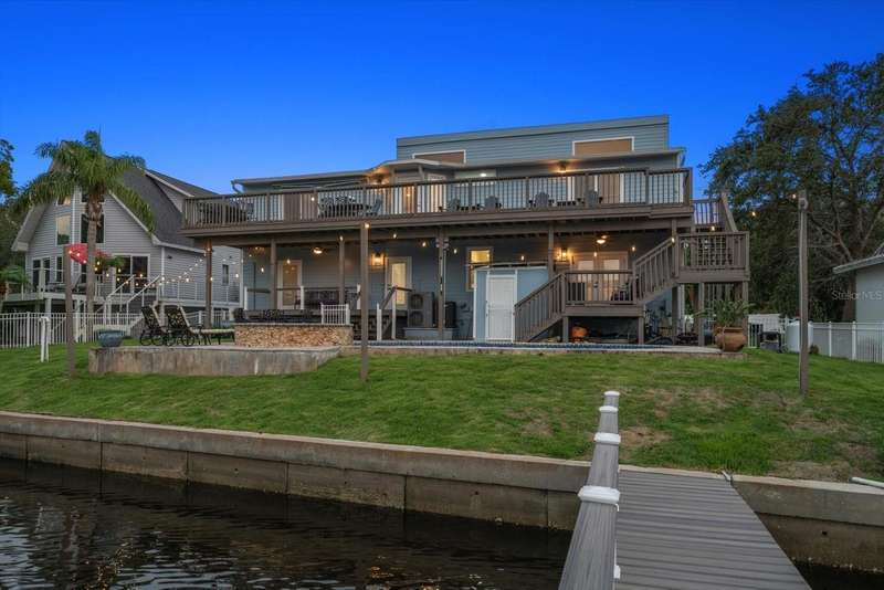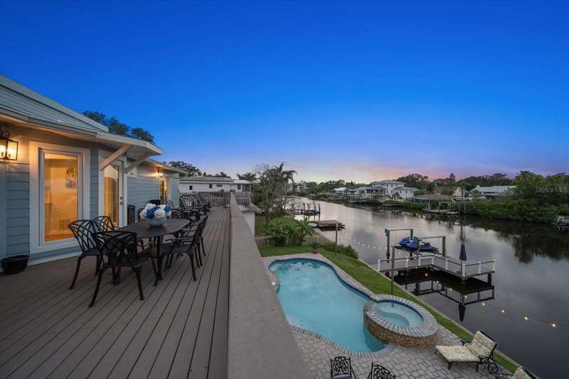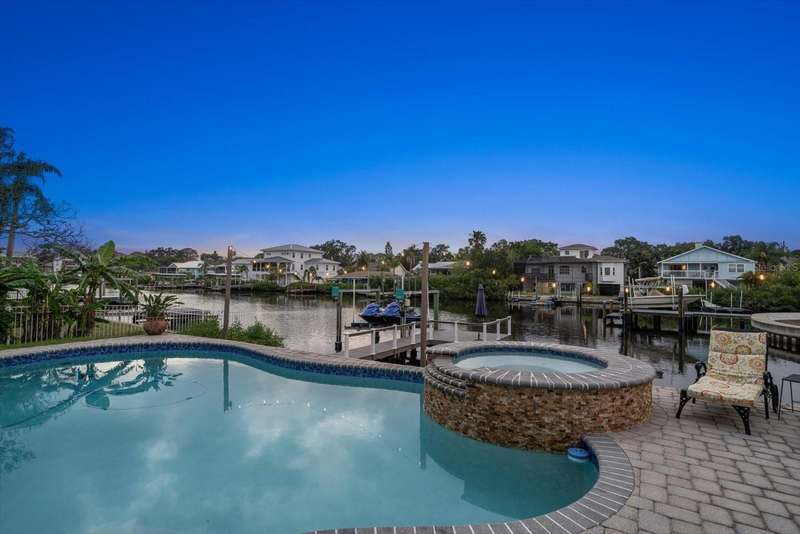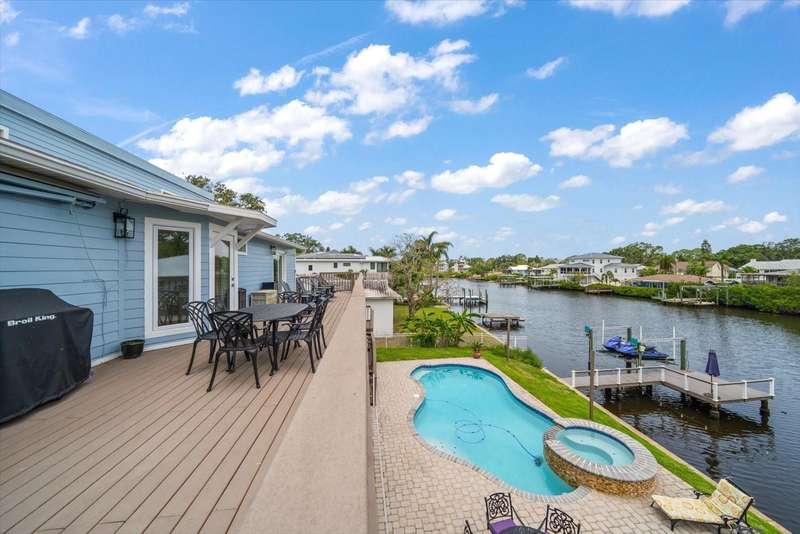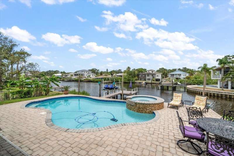 Under contract-accepting backup offers. HUGE PRICE IMPROVEMENT! Seller wants this sold! You will not find a gorgeous, updated, waterfront home in Ozona for a better price! WELCOME TO 316 HILLPOINT DRIVE! Discover the perfect blend of modern luxury and relaxed coastal living in this beautifully renovated waterfront home in the heart of Ozona—one of Palm Harbor’s most desirable communities. Nestled on a quiet street with serene water views, 316 Hillpoint Drive delivers a rare turnkey opportunity where no detail has been overlooked. The best part? THIS HOME DID NOT FLOOD DURING HURRICANES HELENE AND MILTON! Step inside to find a thoughtfully updated interior where timeless finishes meet contemporary comfort. The main level features all-new marble inspired toned tile flooring, fresh paint throughout, 5¼-inch baseboards, new window and door casings, and stylish black hardware accents. An interior stair door was added to create flexible privacy—ideal for multigenerational living or rental potential. The upstairs living space showcases refinished hardwood floors in a light coastal finish, new light fixtures including an updated chandelier, and a fresh neutral palette that enhances the natural light. Two modernized kitchens—one on each level—boast freshly painted white cabinetry, crown molding, oversized black pulls, waterfall-edge counters in the main kitchen, and an additional downstairs refrigerator for effortless entertaining. Beyond aesthetics, this home has undergone extensive mechanical and system upgrades designed for comfort and peace of mind. Highlights include two new HVAC systems, new water heaters, a sealed crawlspace with vapor barrier, and updated electrical subpanels for both the pool and dock. A brand-new well and upgraded irrigation system ensure lush landscaping year-round. Step outside to your private backyard oasis, where a resurfaced pool sparkles with a glass tile waterline, stone spa, propane heater, and new pump. Enjoy warm breezes under the covered lanai with new ceiling fans, LED recessed lighting, and an unmatched sense of tranquility. Invite friends for cocktails by the fire-lit spa, spend weekends paddleboarding out back, or unwind in one of the home's soaking tubs after a day of boating. With distinct upstairs and downstairs living quarters, this home offers comfort, privacy, and versatility for family, guests, or long-term hosting. This isn't just a house -- it's the waterfront lifestyle you've dreamed of. Elevated. Effortless. Yours. Whether you're seeking a full-time residence, vacation home, or an income-generating property, this stunning home offers a rare combination of luxury, flexibility, and enduring value in one of Florida’s most charming coastal enclaves.