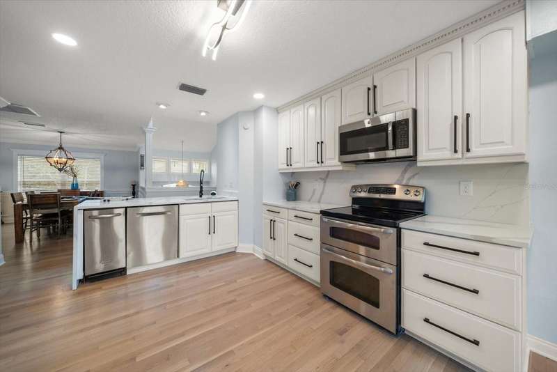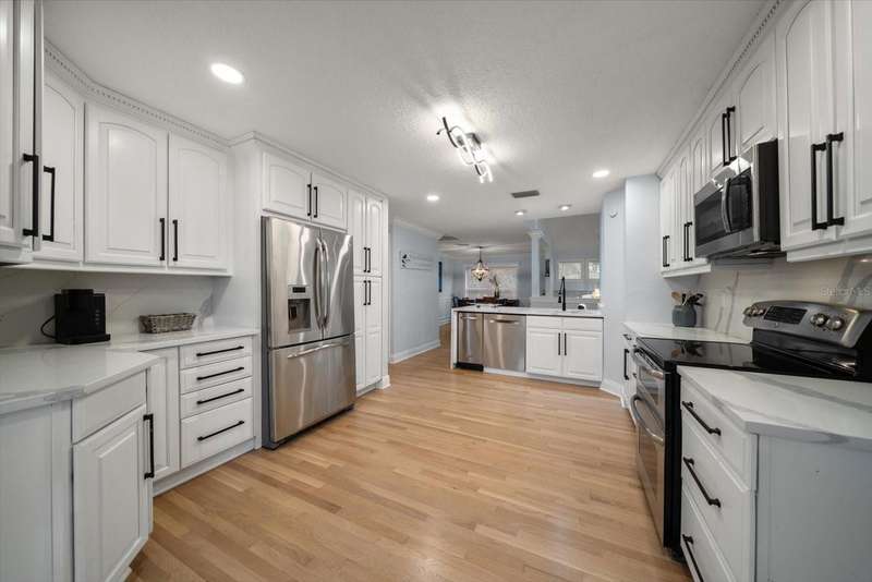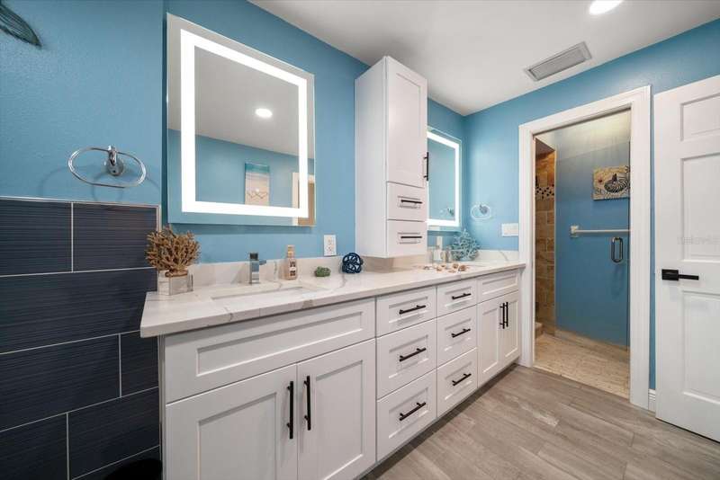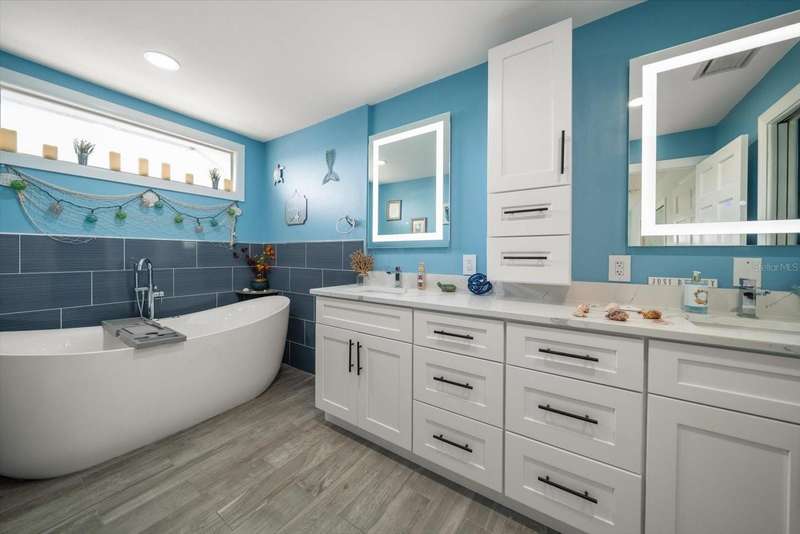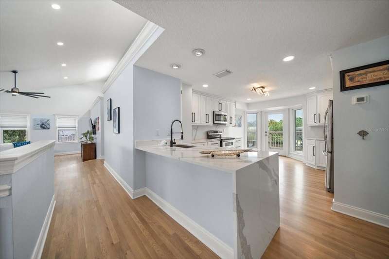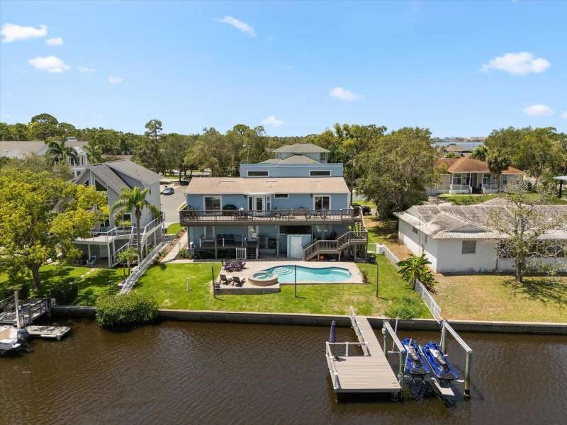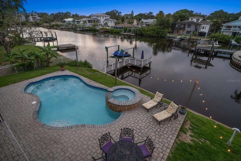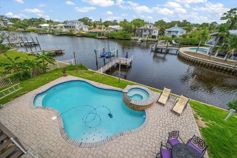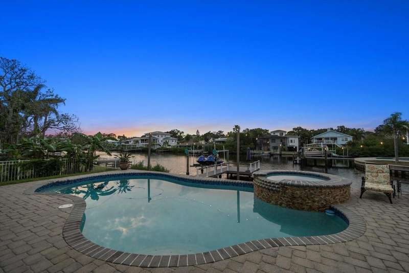 Under contract-accepting backup offers. HUGE PRICE IMPROVEMENT! Seller wants this sold! You will not find a gorgeous, updated, waterfront home in Ozona for a better price! WELCOME TO 316 HILLPOINT DRIVE! Discover the perfect blend of modern luxury and relaxed coastal living in this beautifully renovated waterfront home in the heart of Ozona—one of Palm Harbor’s most desirable communities. Nestled on a quiet street with serene water views, 316 Hillpoint Drive delivers a rare turnkey opportunity where no detail has been overlooked. The best part? THIS HOME DID NOT FLOOD DURING HURRICANES HELENE AND MILTON! Step inside to find a thoughtfully updated interior where timeless finishes meet contemporary comfort. The main level features all-new marble inspired toned tile flooring, fresh paint throughout, 5¼-inch baseboards, new window and door casings, and stylish black hardware accents. An interior stair door was added to create flexible privacy—ideal for multigenerational living or rental potential. The upstairs living space showcases refinished hardwood floors in a light coastal finish, new light fixtures including an updated chandelier, and a fresh neutral palette that enhances the natural light. Two modernized kitchens—one on each level—boast freshly painted white cabinetry, crown molding, oversized black pulls, waterfall-edge counters in the main kitchen, and an additional downstairs refrigerator for effortless entertaining. Beyond aesthetics, this home has undergone extensive mechanical and system upgrades designed for comfort and peace of mind. Highlights include two new HVAC systems, new water heaters, a sealed crawlspace with vapor barrier, and updated electrical subpanels for both the pool and dock. A brand-new well and upgraded irrigation system ensure lush landscaping year-round. Step outside to your private backyard oasis, where a resurfaced pool sparkles with a glass tile waterline, stone spa, propane heater, and new pump. Enjoy warm breezes under the covered lanai with new ceiling fans, LED recessed lighting, and an unmatched sense of tranquility. Invite friends for cocktails by the fire-lit spa, spend weekends paddleboarding out back, or unwind in one of the home's soaking tubs after a day of boating. With distinct upstairs and downstairs living quarters, this home offers comfort, privacy, and versatility for family, guests, or long-term hosting. This isn't just a house -- it's the waterfront lifestyle you've dreamed of. Elevated. Effortless. Yours. Whether you're seeking a full-time residence, vacation home, or an income-generating property, this stunning home offers a rare combination of luxury, flexibility, and enduring value in one of Florida’s most charming coastal enclaves.