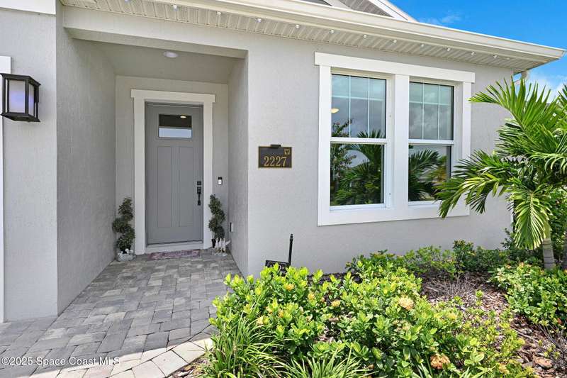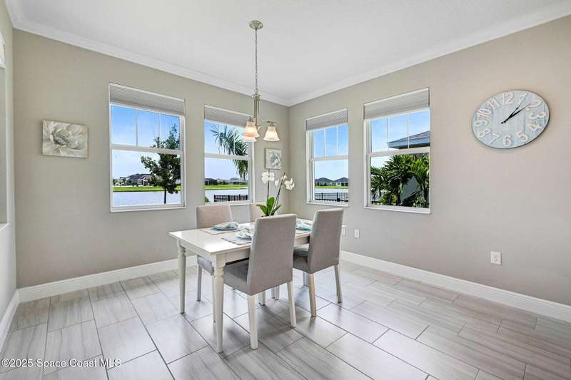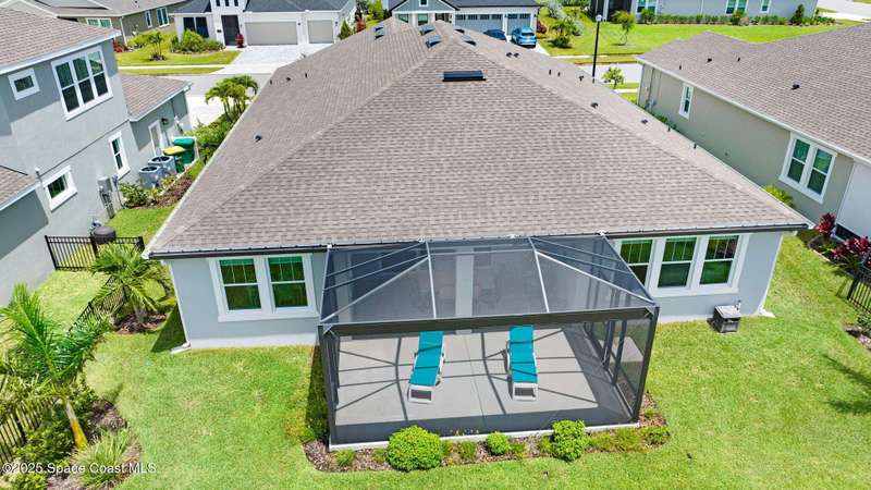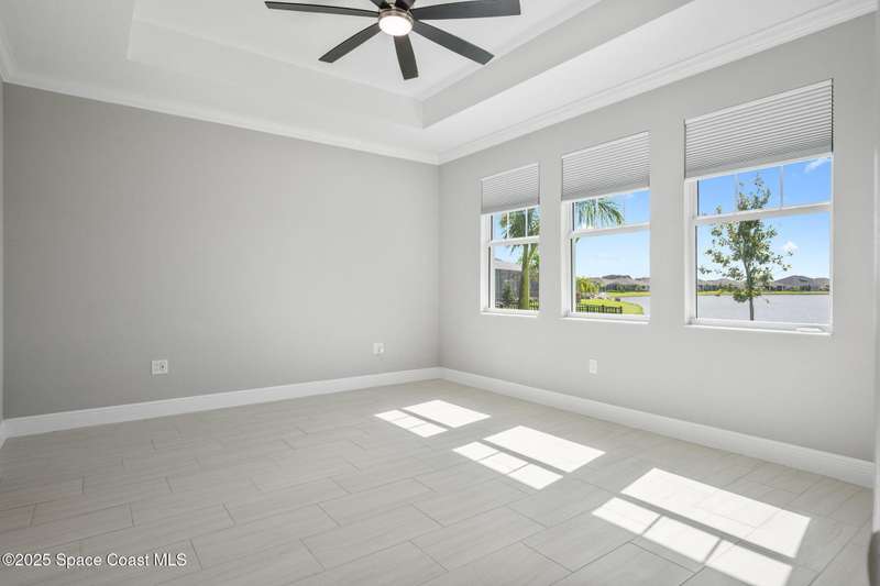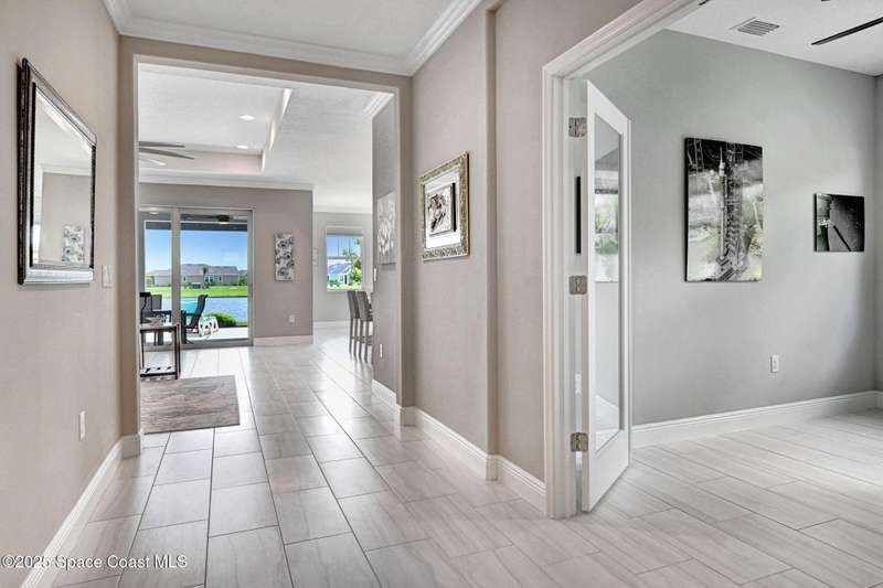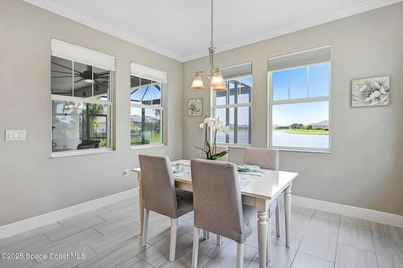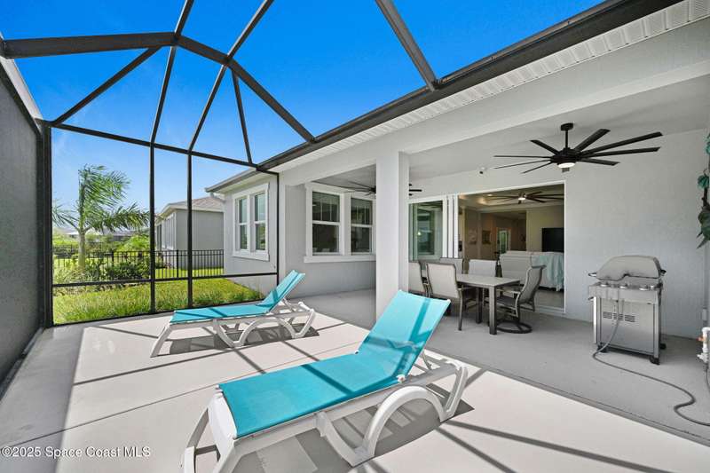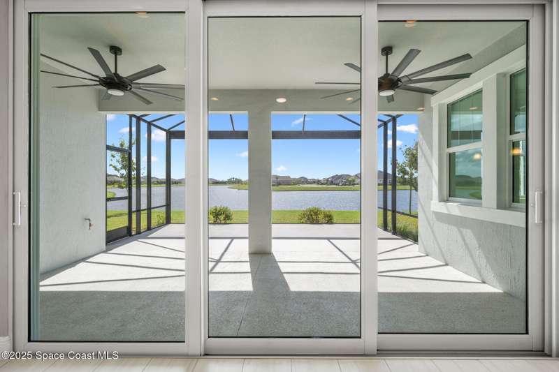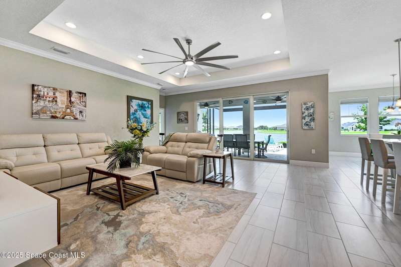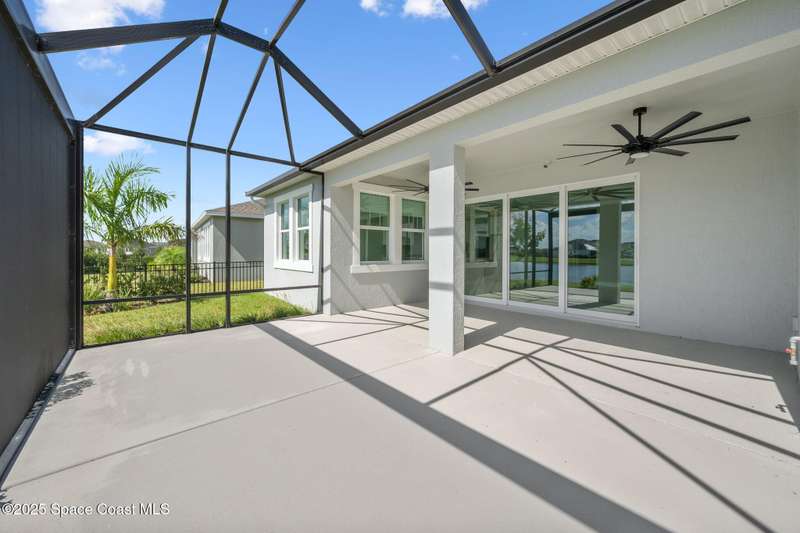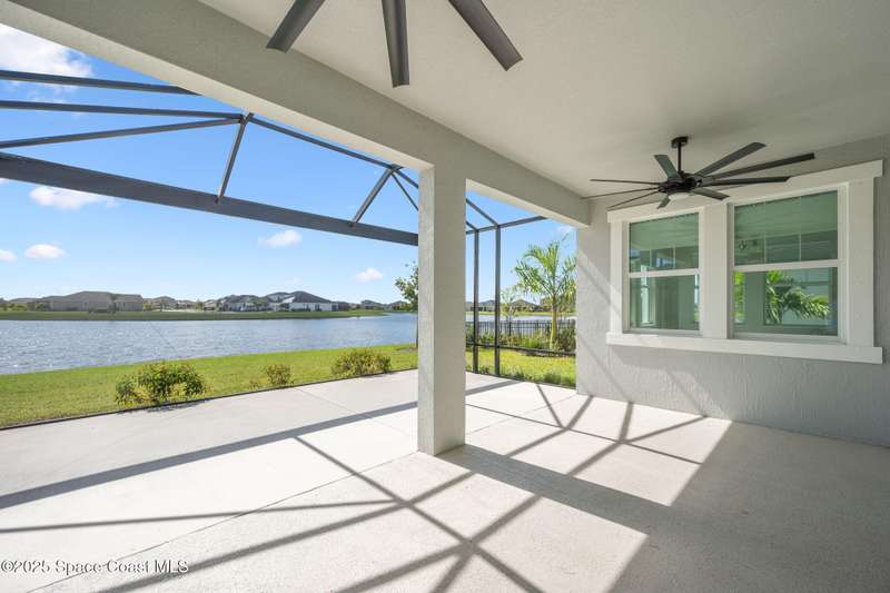 Welcome to this stunning 2023 home, featuring 3 bedrooms + office, 3.5 baths, spacious 3-car garage. Located in Pangea Park community, this modern home offers a peaceful, well-designed split floor plan with million-dollar lakefront view + large backyard to build your own POOL. Each bedroom has WIC, full bath, upgraded fans. The gourmet kitchen is a chef's dream w/Samsung SS appliances, upgraded 42-inch cabinets, quartz countertops, large island perfect for entertaining, huge walk-in pantry. The living room includes tray ceiling with upgraded recessed lighting + 84-inch fan. Enjoy serene lake views from the extended lanai with panoramic screen. Office features glass French doors and 2 windows. The Master suite features a tray ceiling + massive closet. The laundry room is equipped with Samsung Smart washer, dryer, sink. Garage has epoxy flooring, heavy-duty pull-down stairs, utility sink. Tile floors throughout, gutters all around, Termite Bond, 10-year Builder's Structural Warranty. Located in the maintained section of Pangea Park, this property offers a worry-free lifestyle. The HOA covers all lawn maintenance, including mulching, weeding, and sprinkler care.Residents can enjoy fantastic community amenities, including a pavilion, pool, playground, and tennis/pickleball courts.The home's prime location puts you just minutes from the new Publix and Costco, as well as The Avenue shops, dog parks, the Brevard Zoo, and a variety of dining and golfing options. For travel and day trips, it's less than one hour to Orlando and about 30 minutes to Port Canaveral.